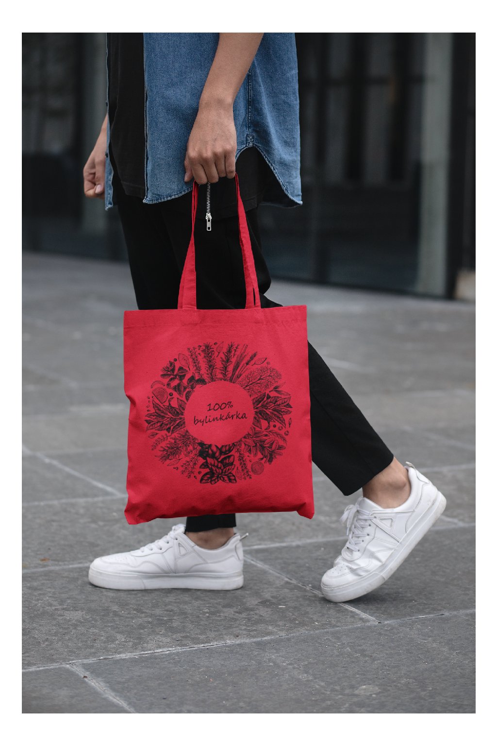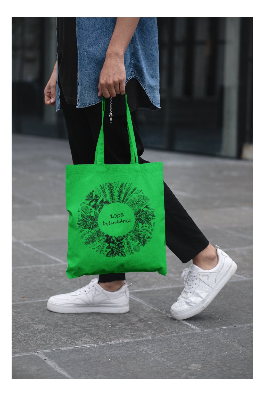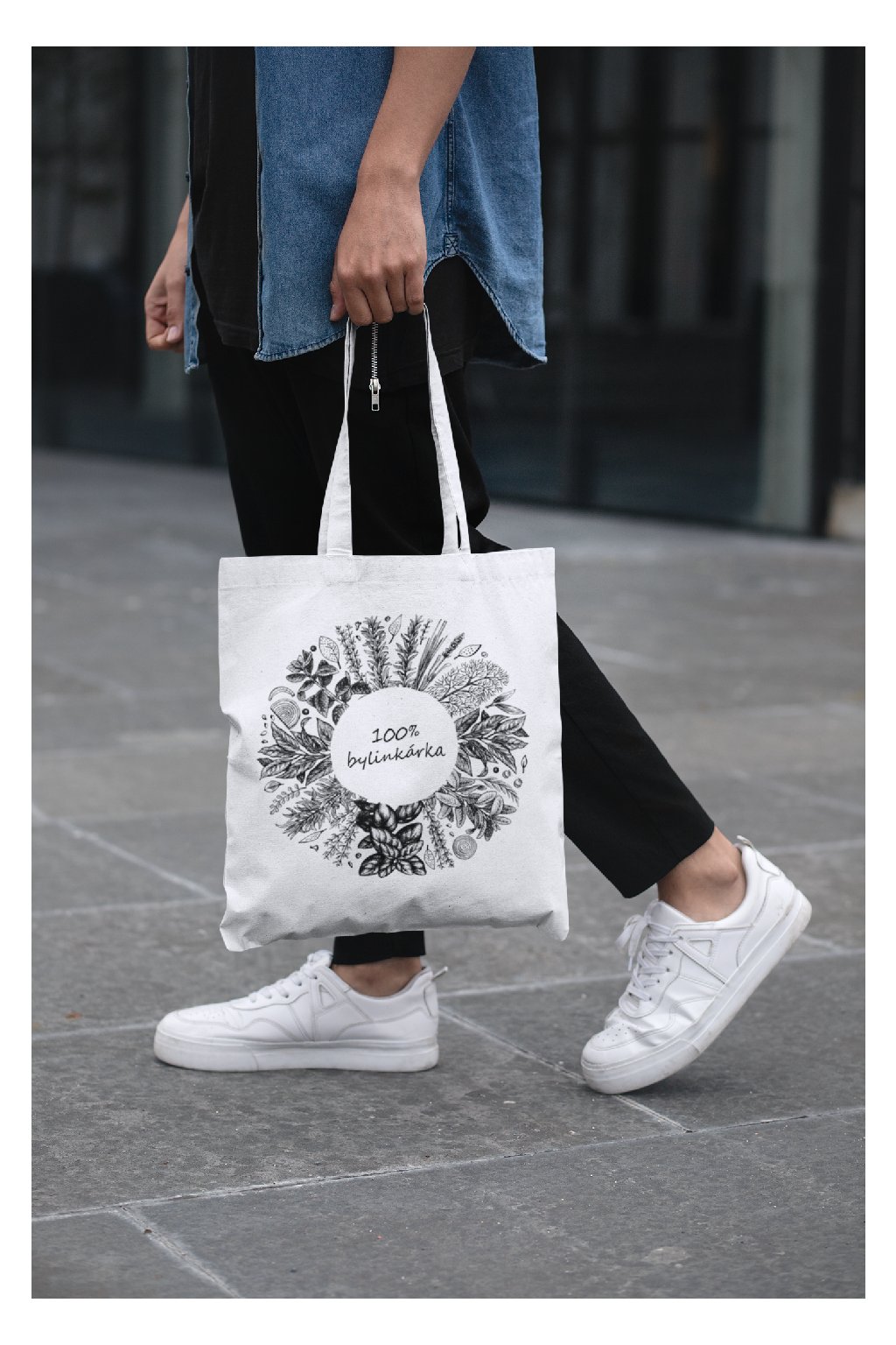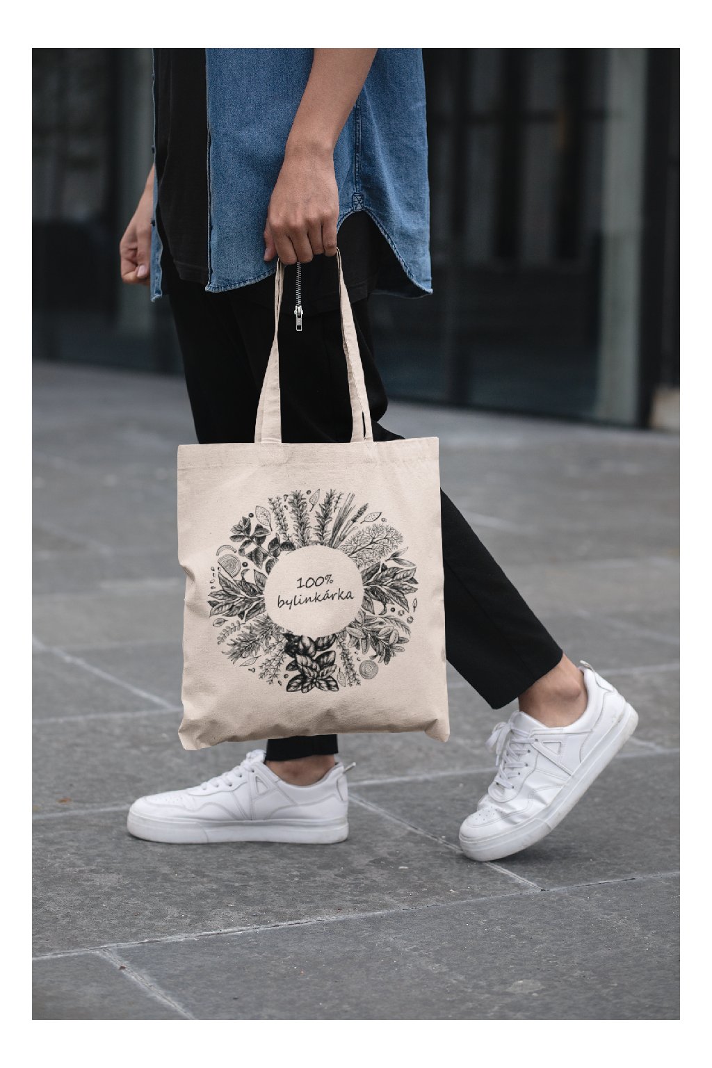 Eco-friendly bavlnená taška vyrobená na Slovensku. Na taške je obrázok byliniek a nápis 100% bylinkárka.