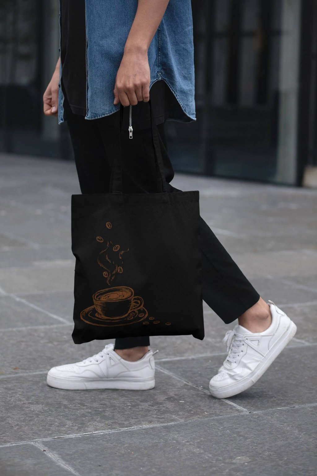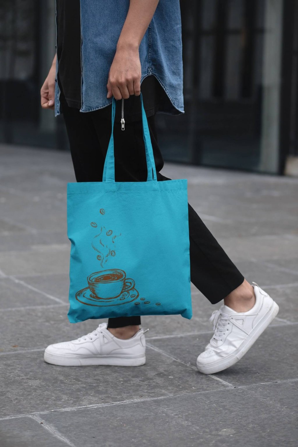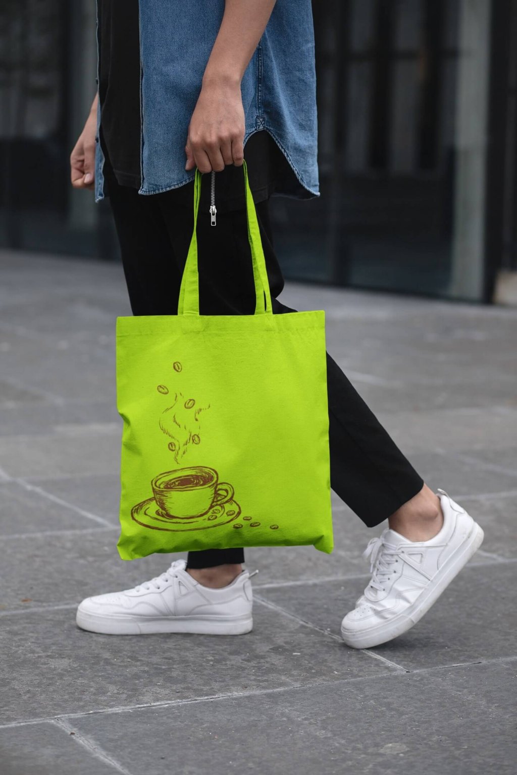 Eco-friendly bavlnená tašku s motívom kávy. Na taške je obrázok šálky kávy, ktorá je ideálna pre kávičkárov.