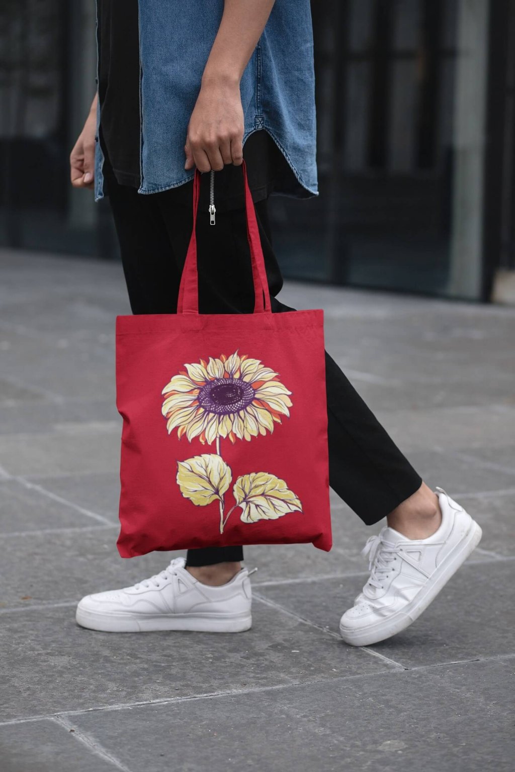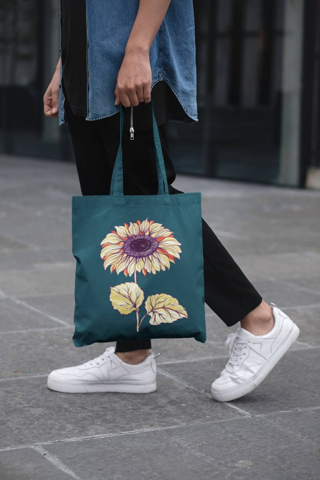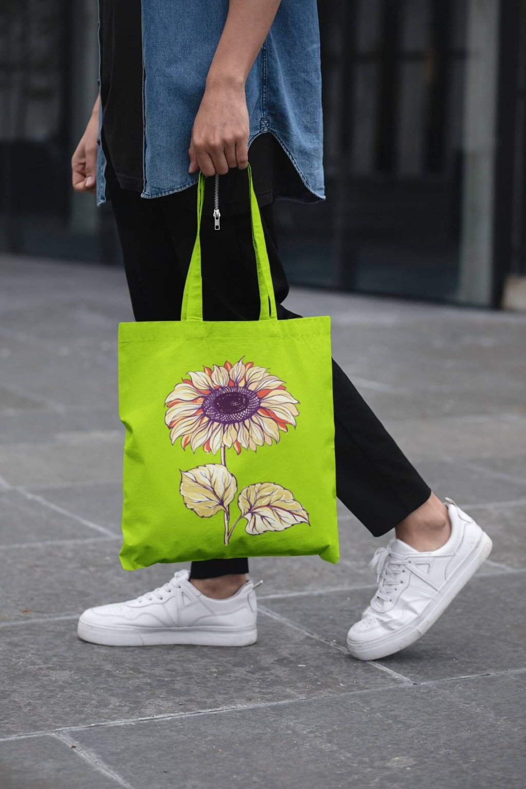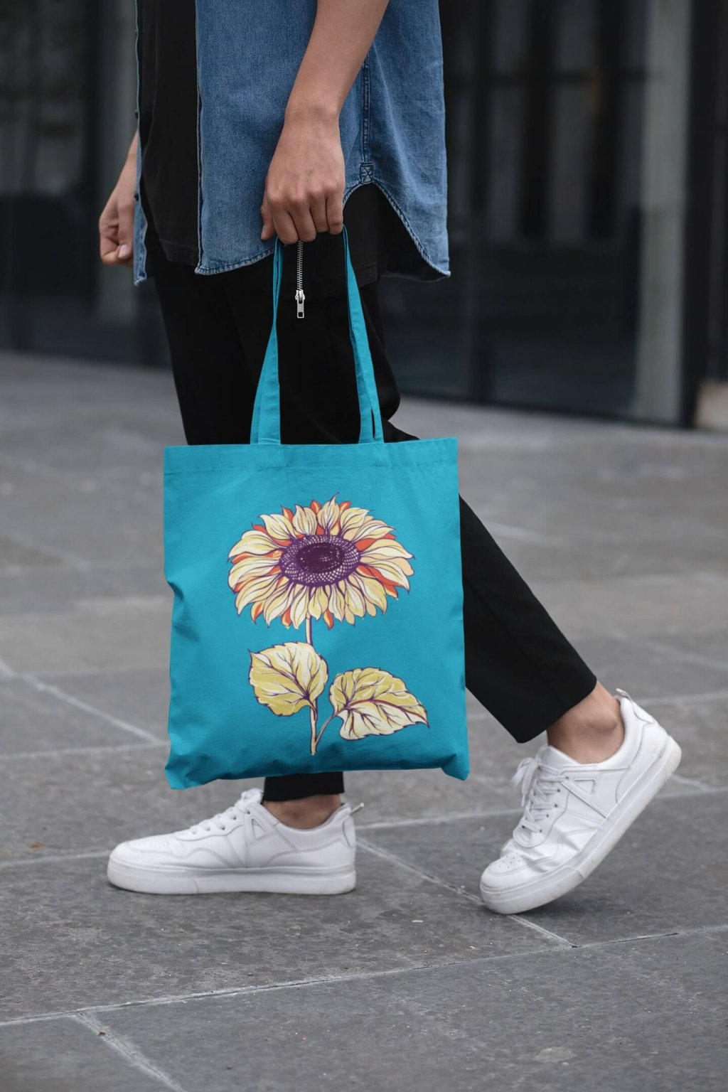 Eco-friendly bavlnená tašku s motívom prírody. Na taške je obrázok slnečnice.