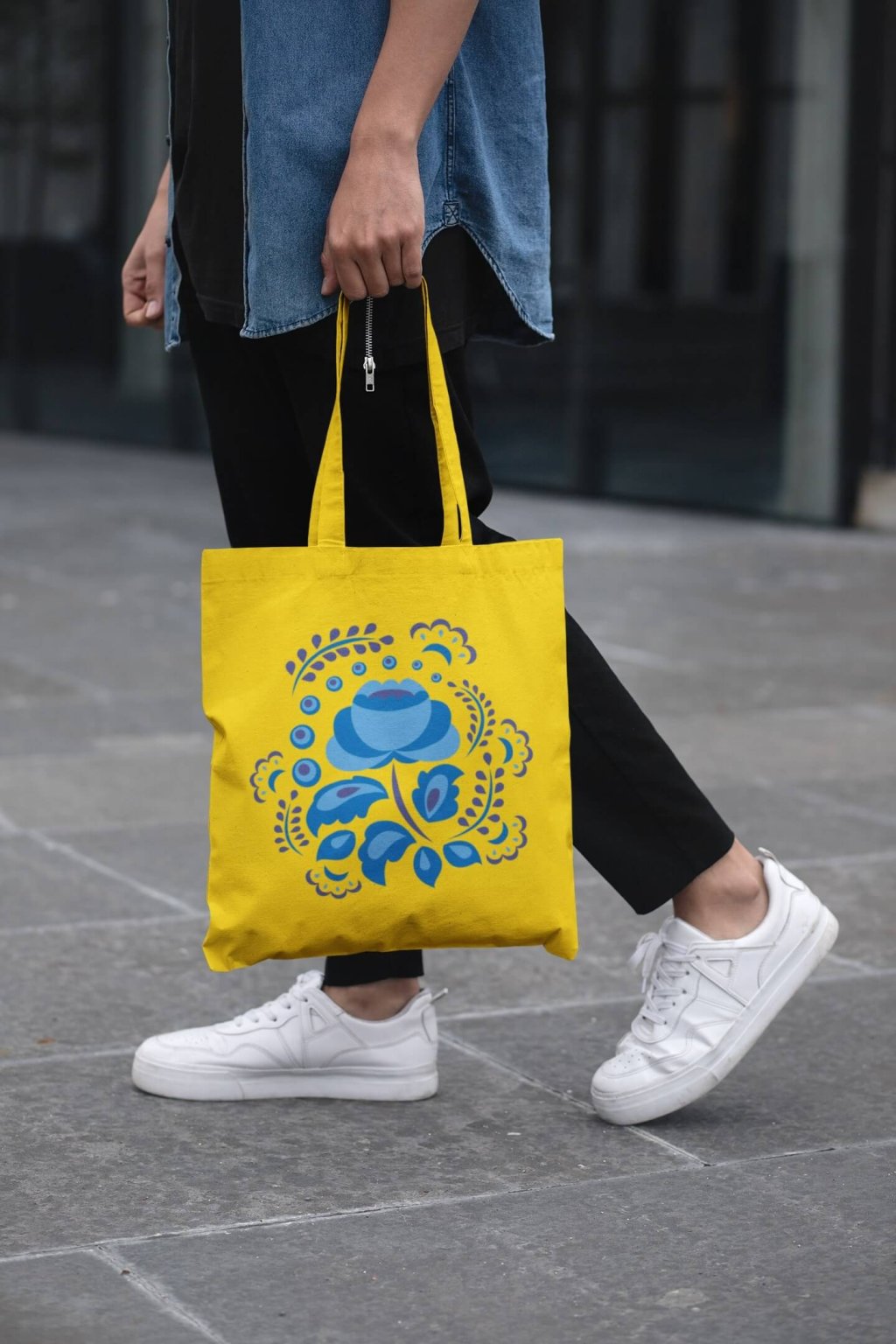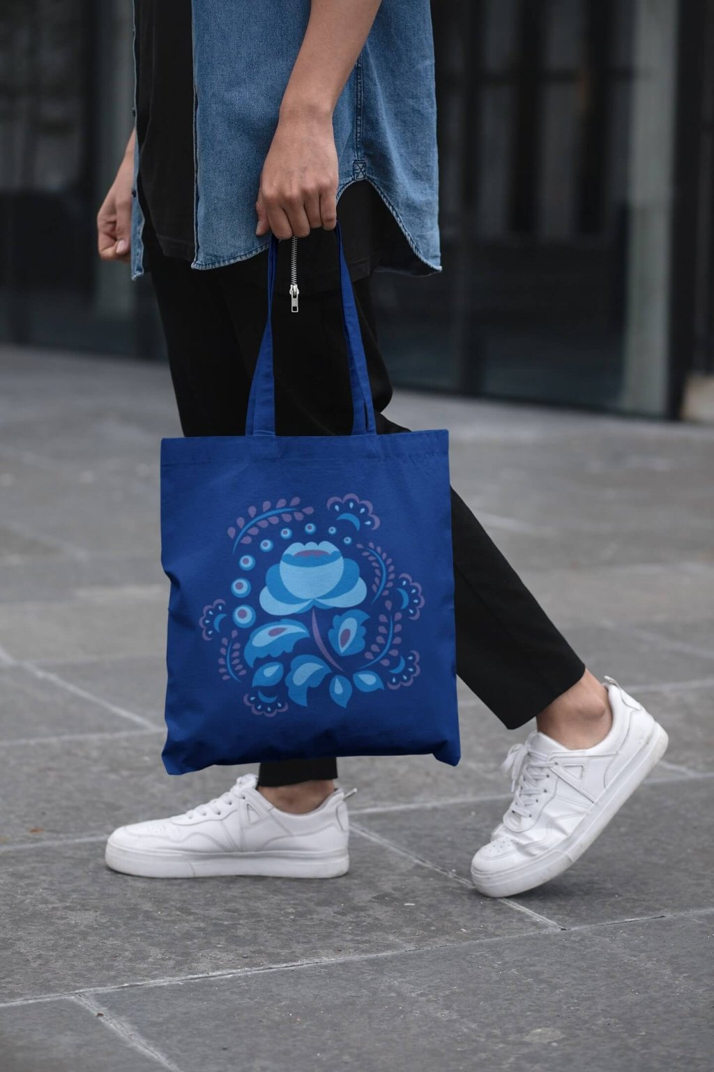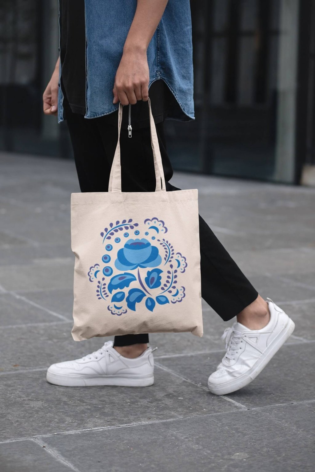 Eco-friendly bavlnená tašku s folklórnym motívom. Na taške je dokonalá ľudová modrotlač.
