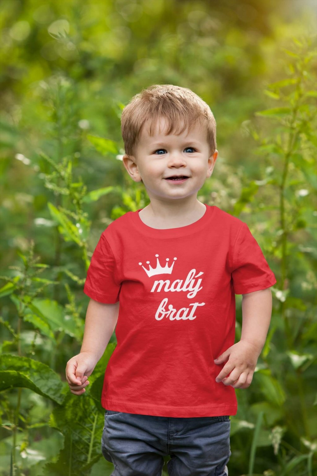 Chlapčenské bavlnené tričko s nápisom "malý brat" a obrázkom korunky. Tričko vhodné pre tých "menších a mladších bratov".