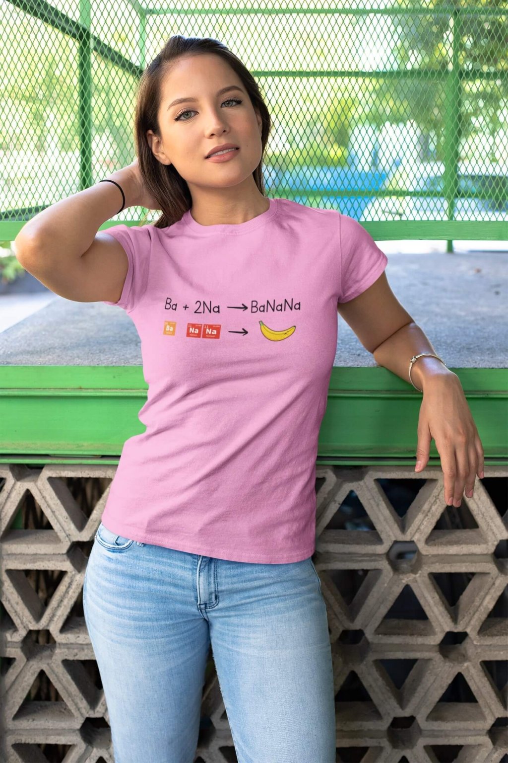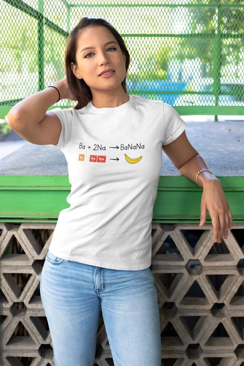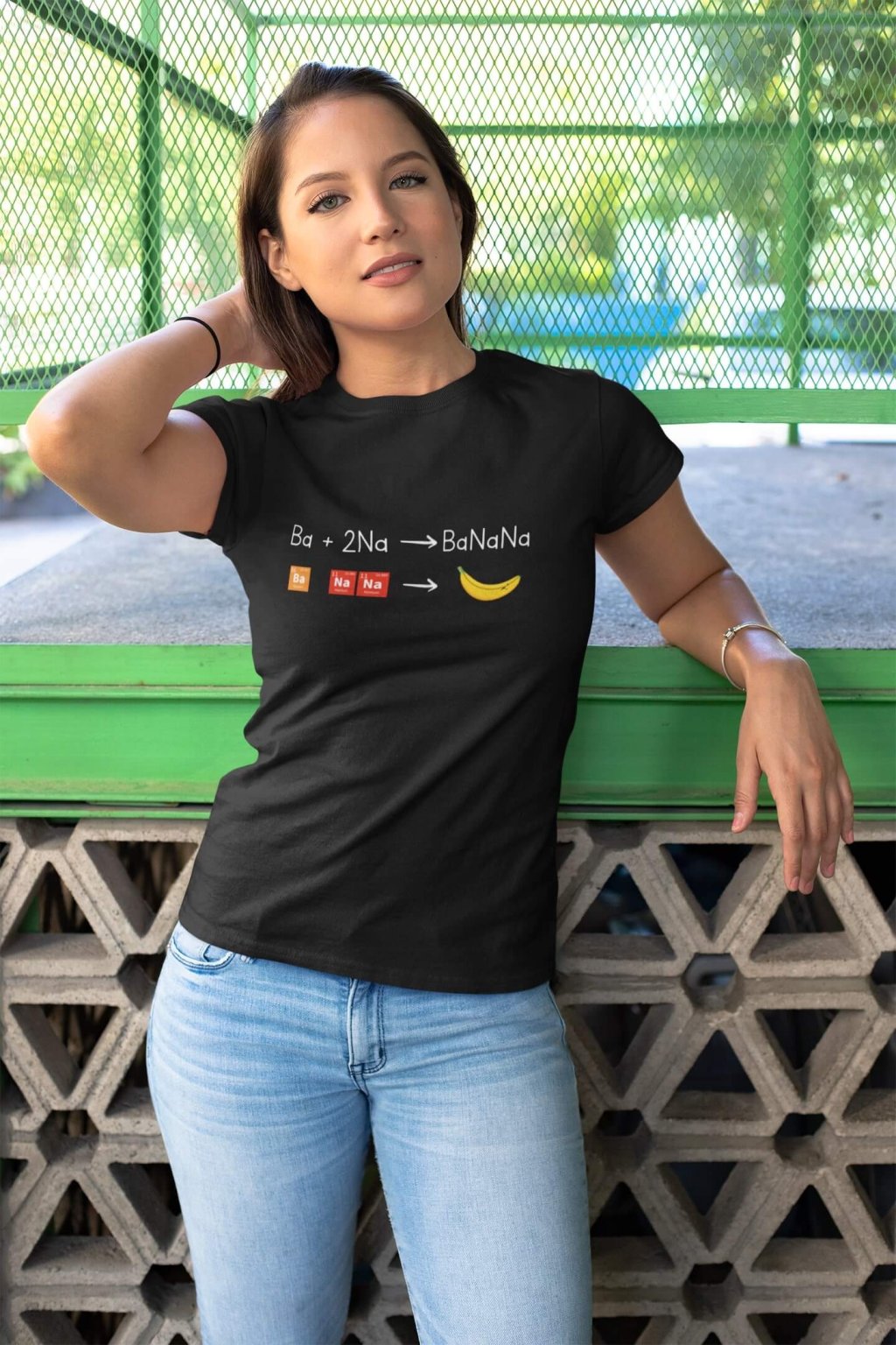 Dámske bavlnené tričko s krátkym rukávom s chemickou rovnicou , z ktorej vznikne Banán.
