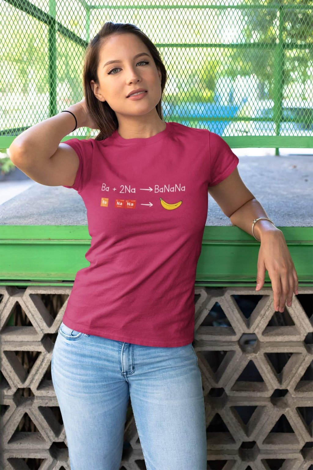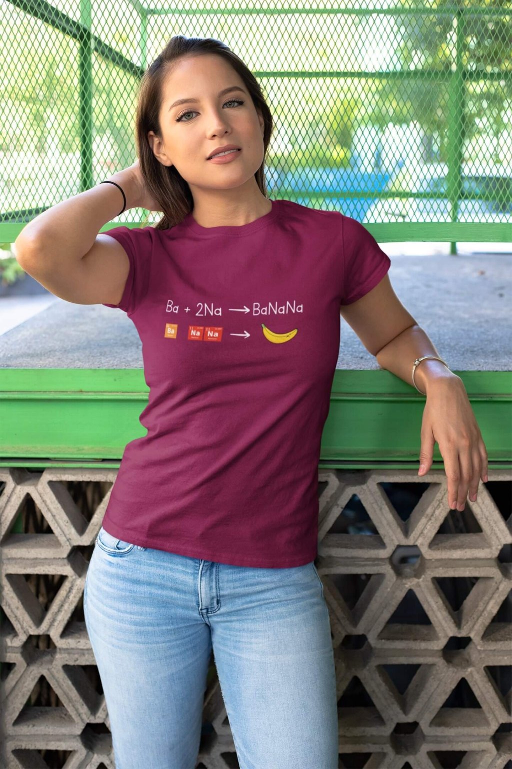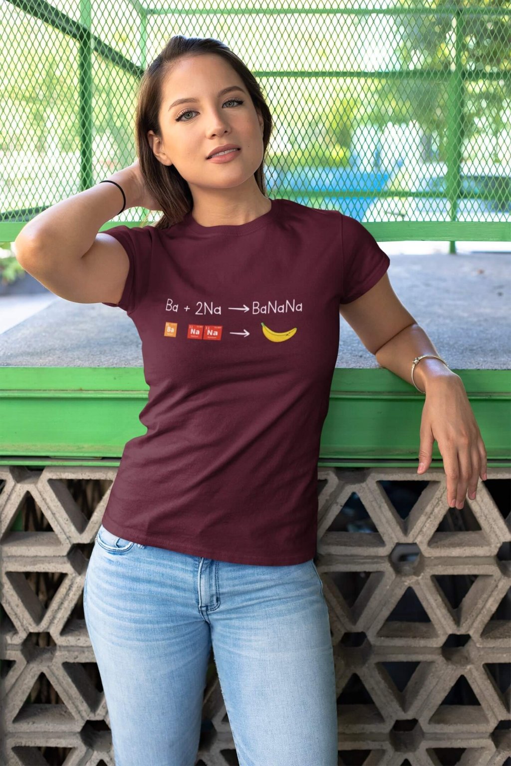 Dámske bavlnené tričko s krátkym rukávom s chemickou rovnicou , z ktorej vznikne Banán.