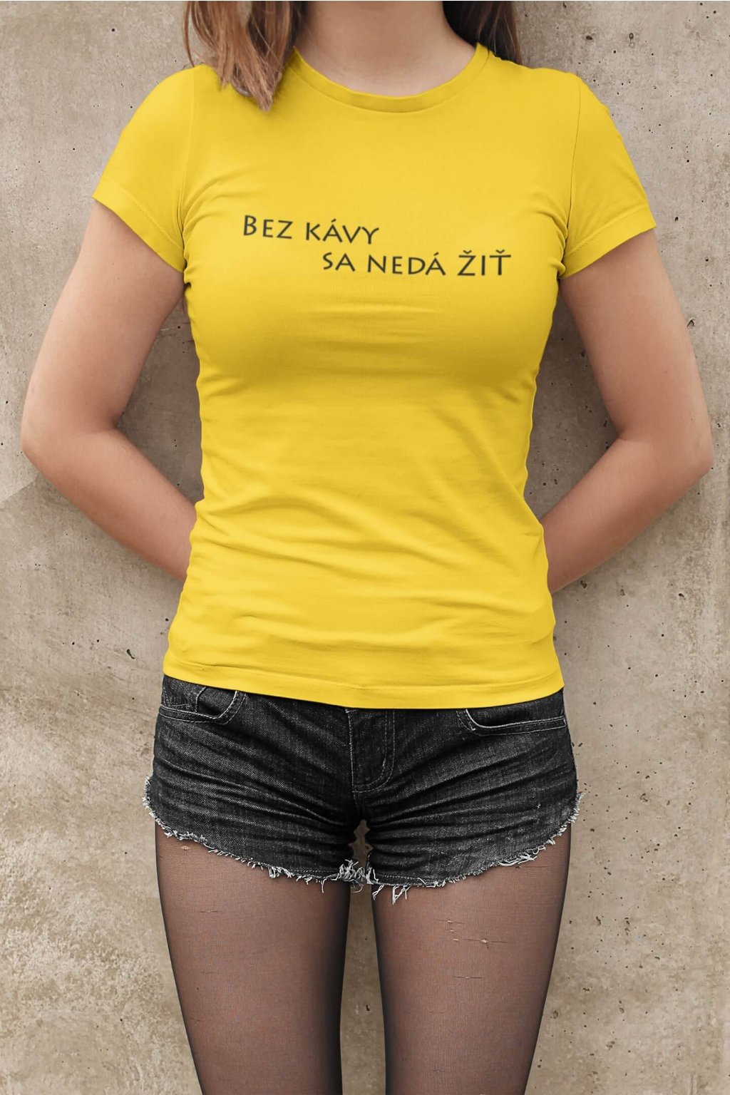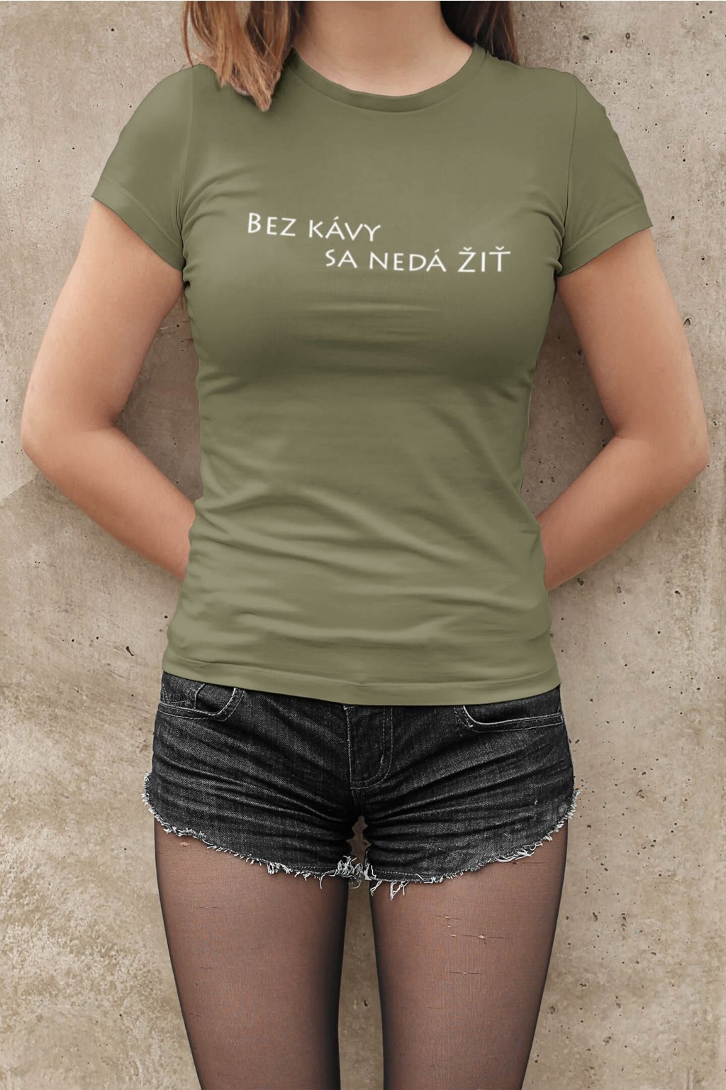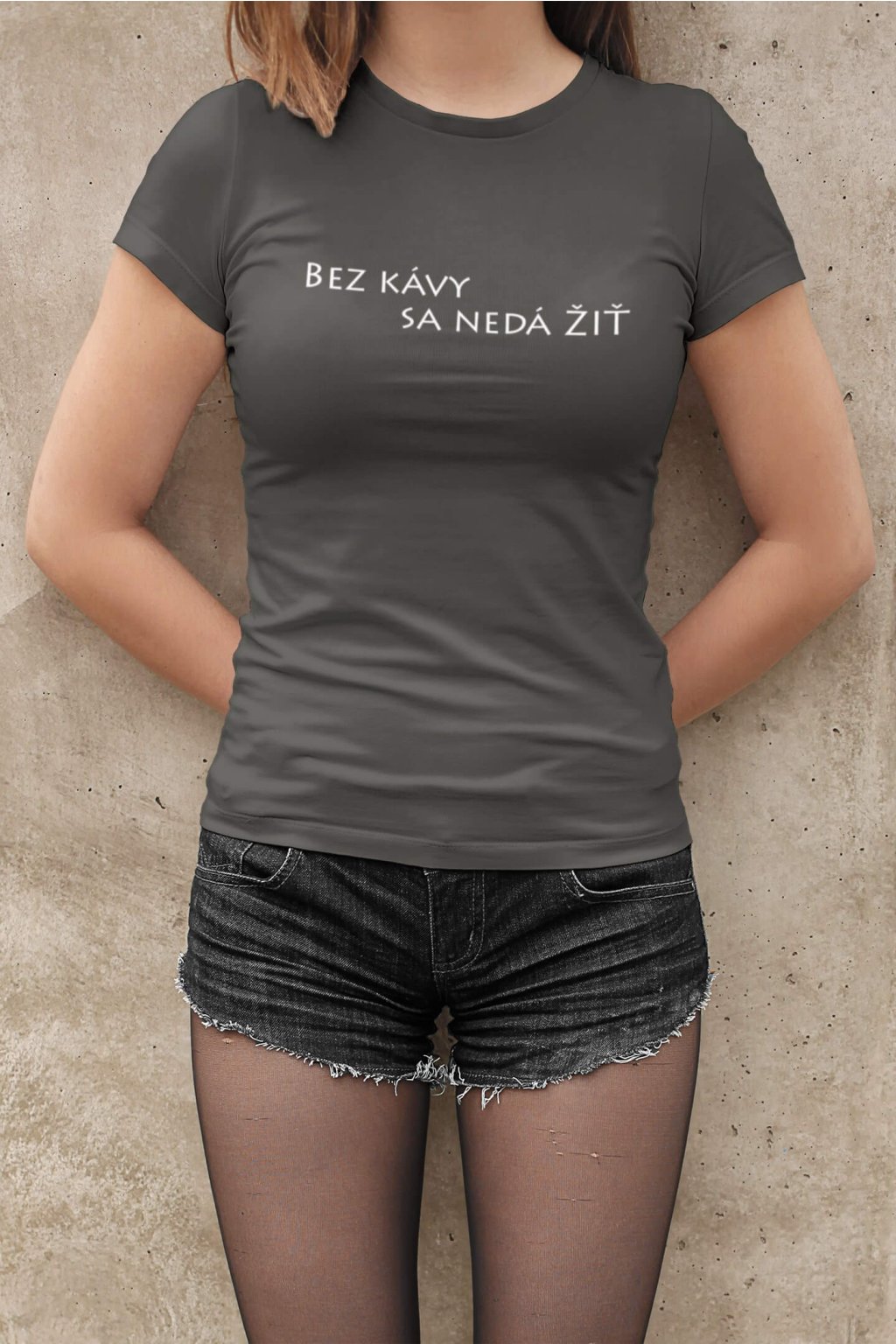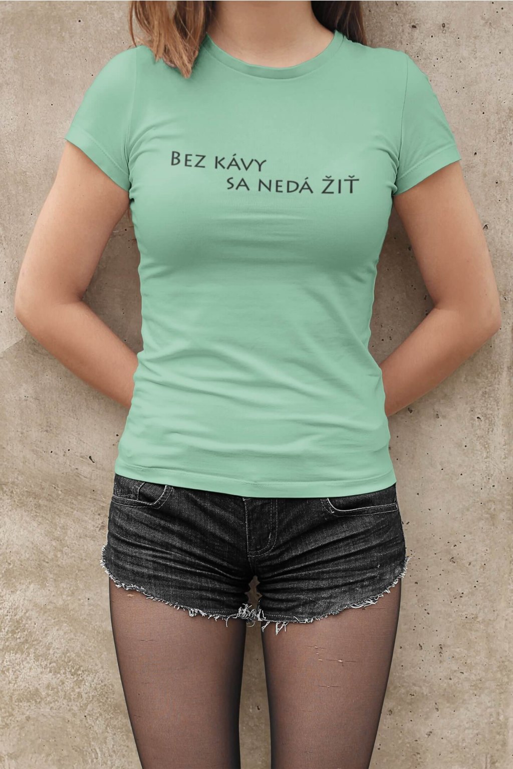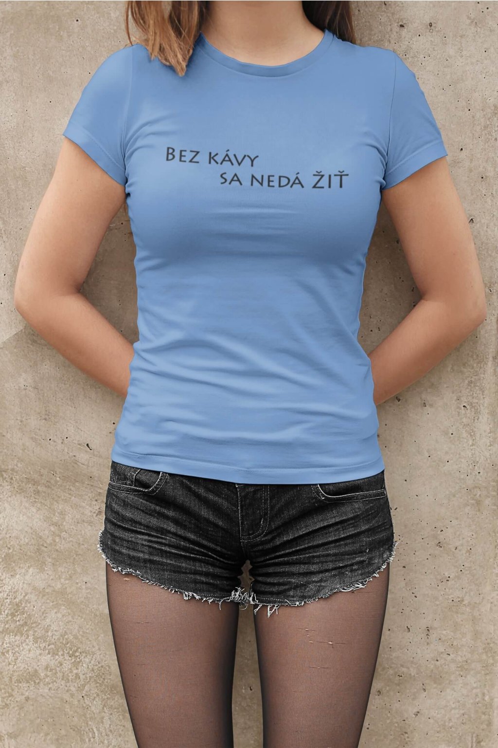 Dámske bavlnené tričko s krátkym rukávom a nápisom určeným pre milovníkov kávy. Na tričku je nápis: ,,Bez kávy sa nedá žiť". Tričko je vhodné pre každú milovníčku kávy.