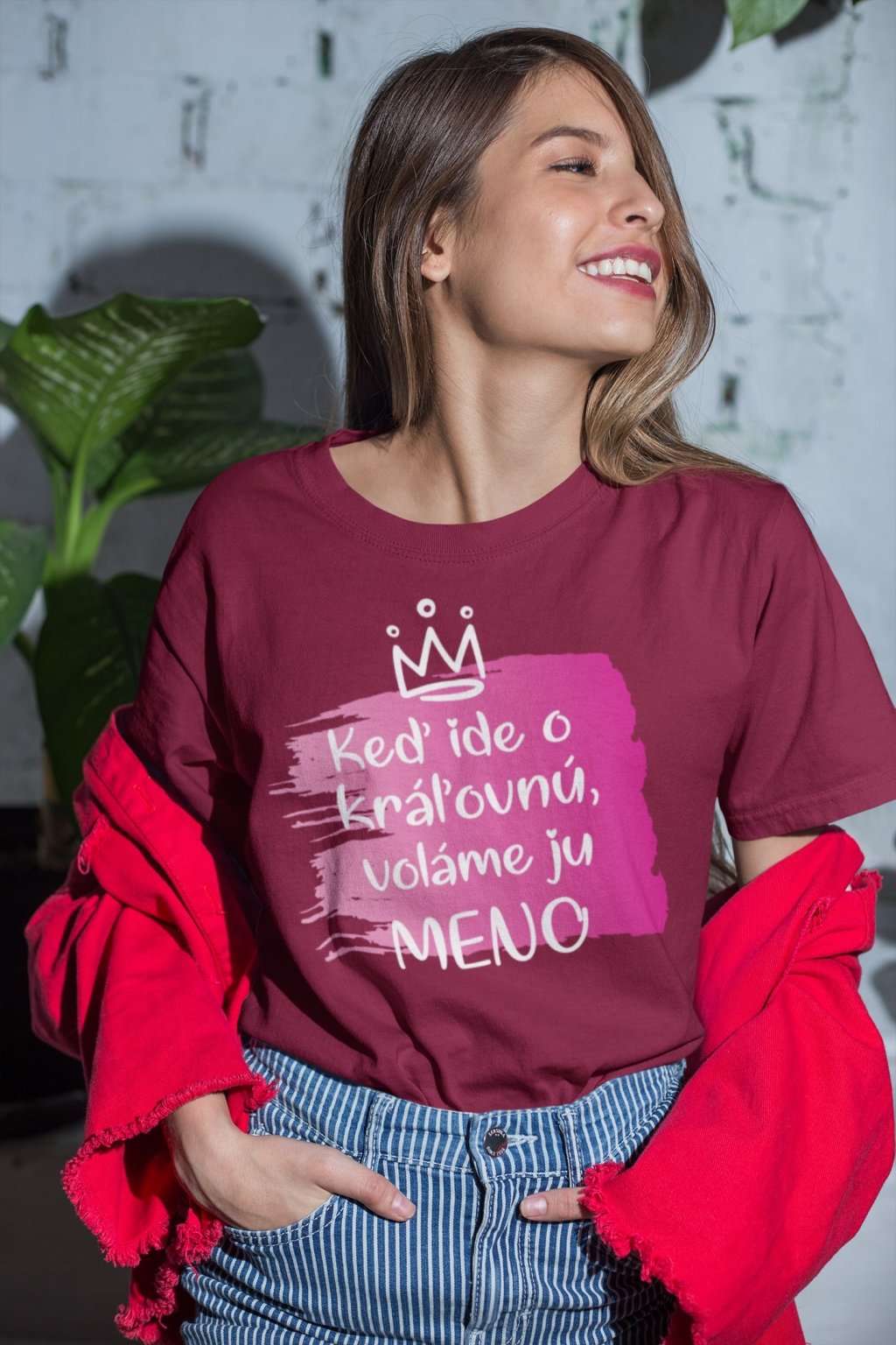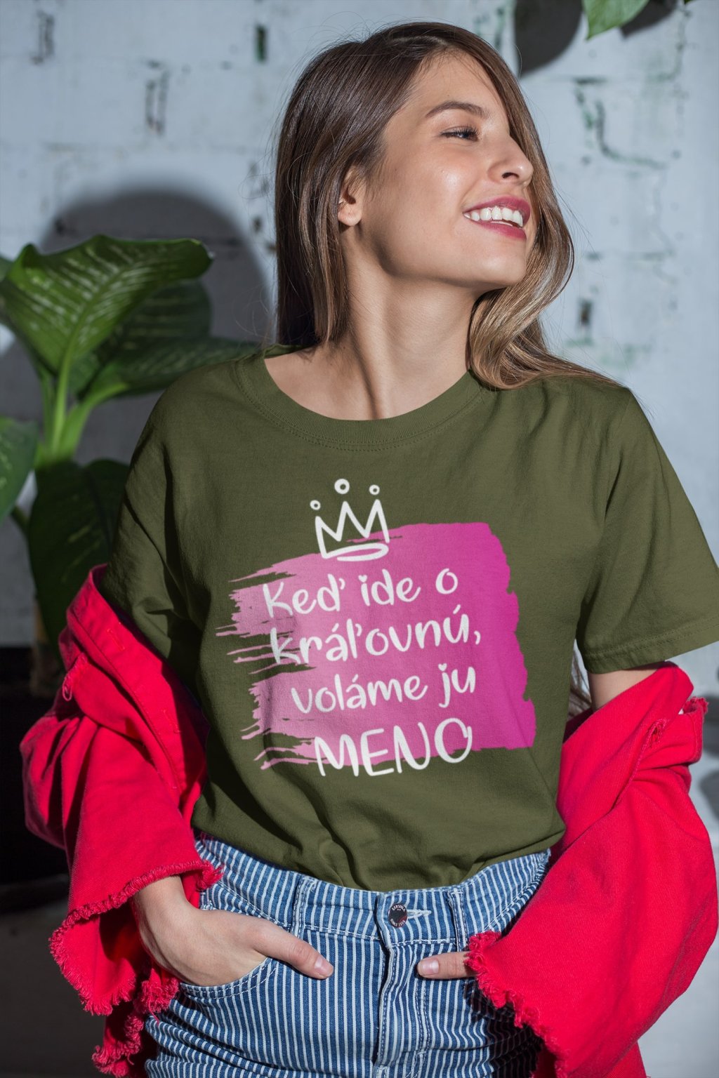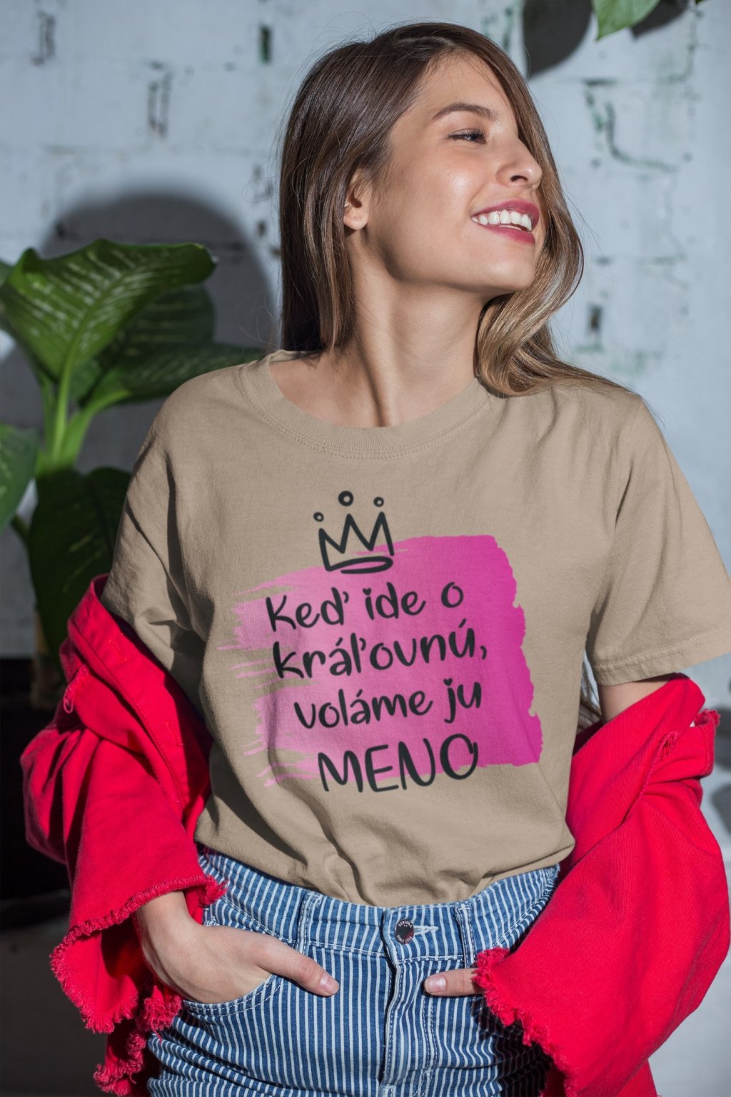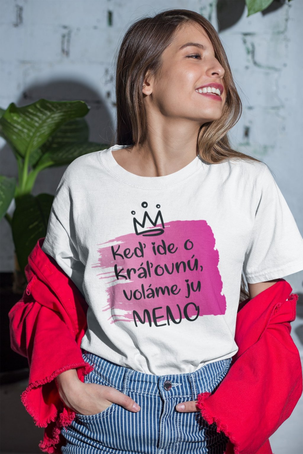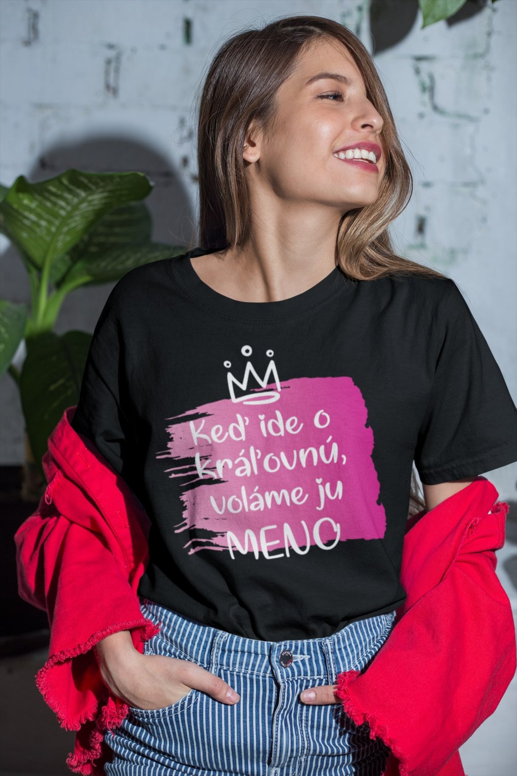 Dámske bavlnené tričko s nápisom Keď ide o kráľovnú voláme ju (doplňte meno).