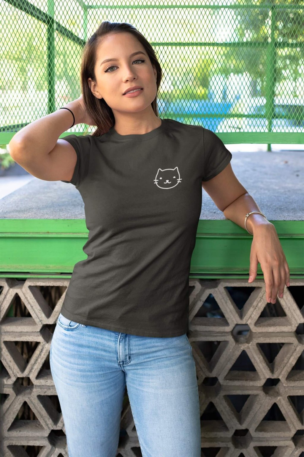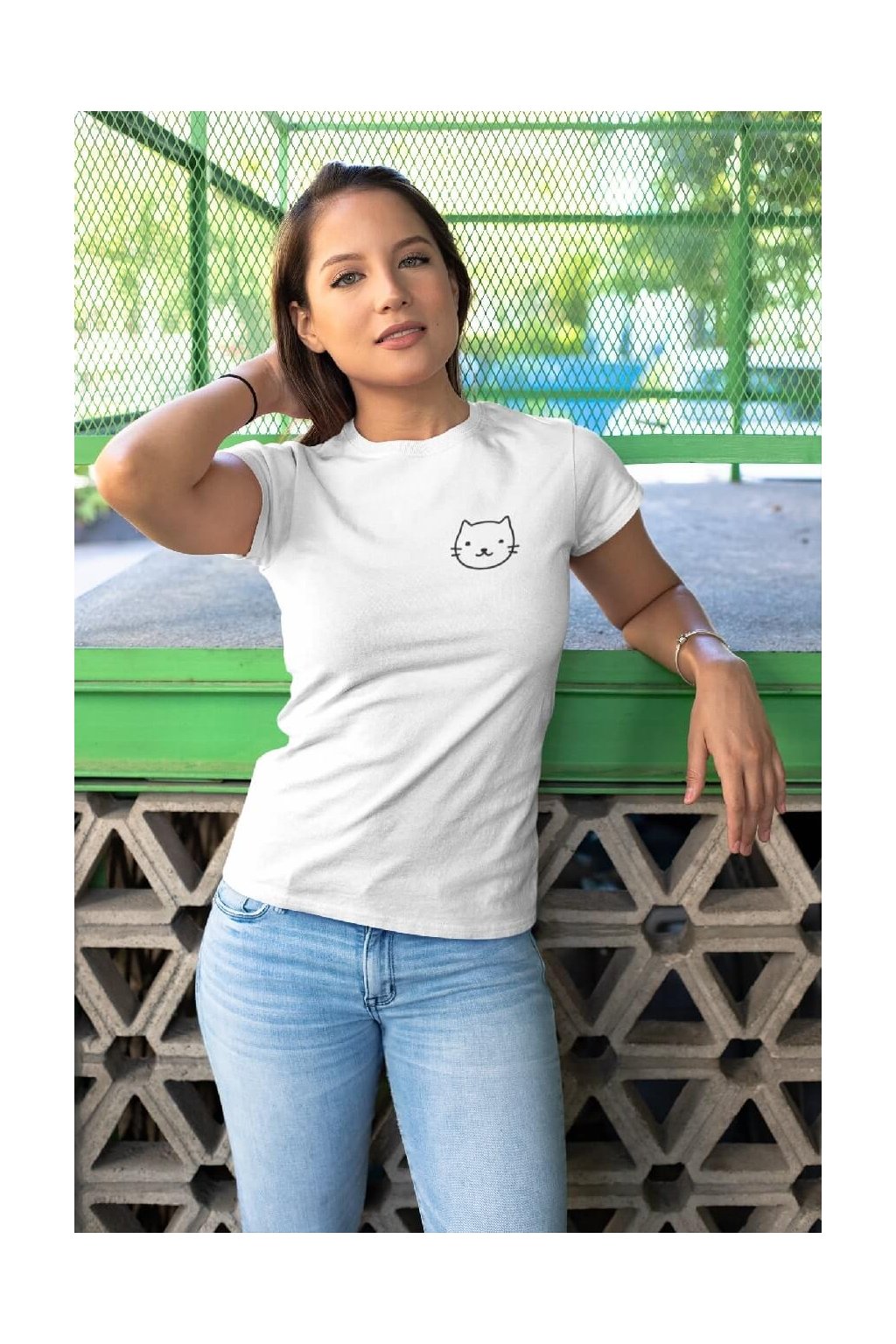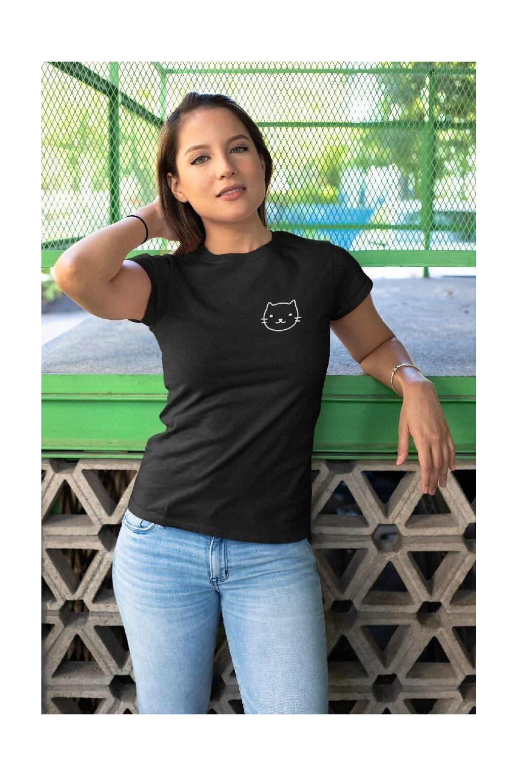 Dámske bavlnené tričko s krátkym rukávom s obrázkom hlavy mačky.
