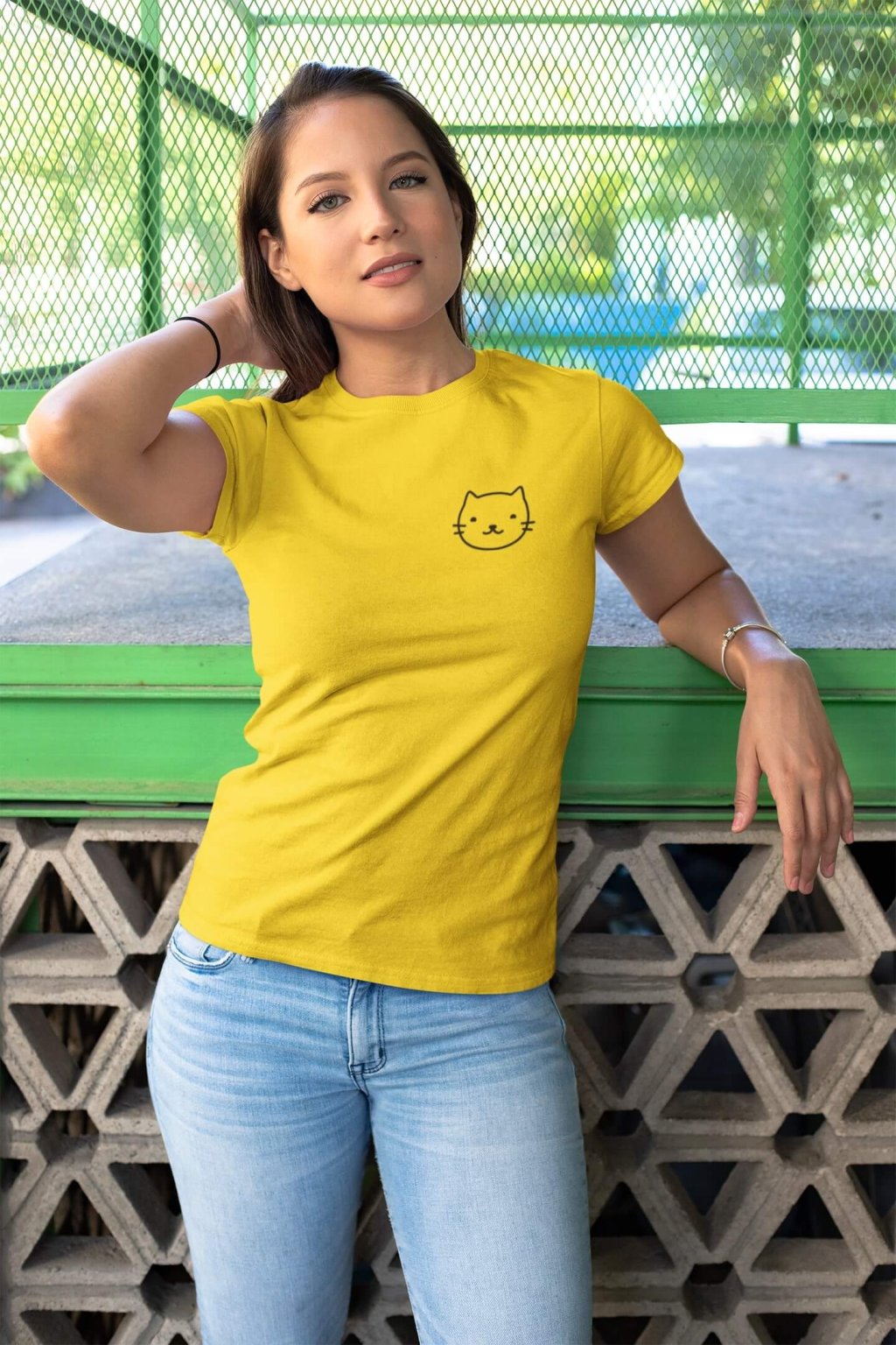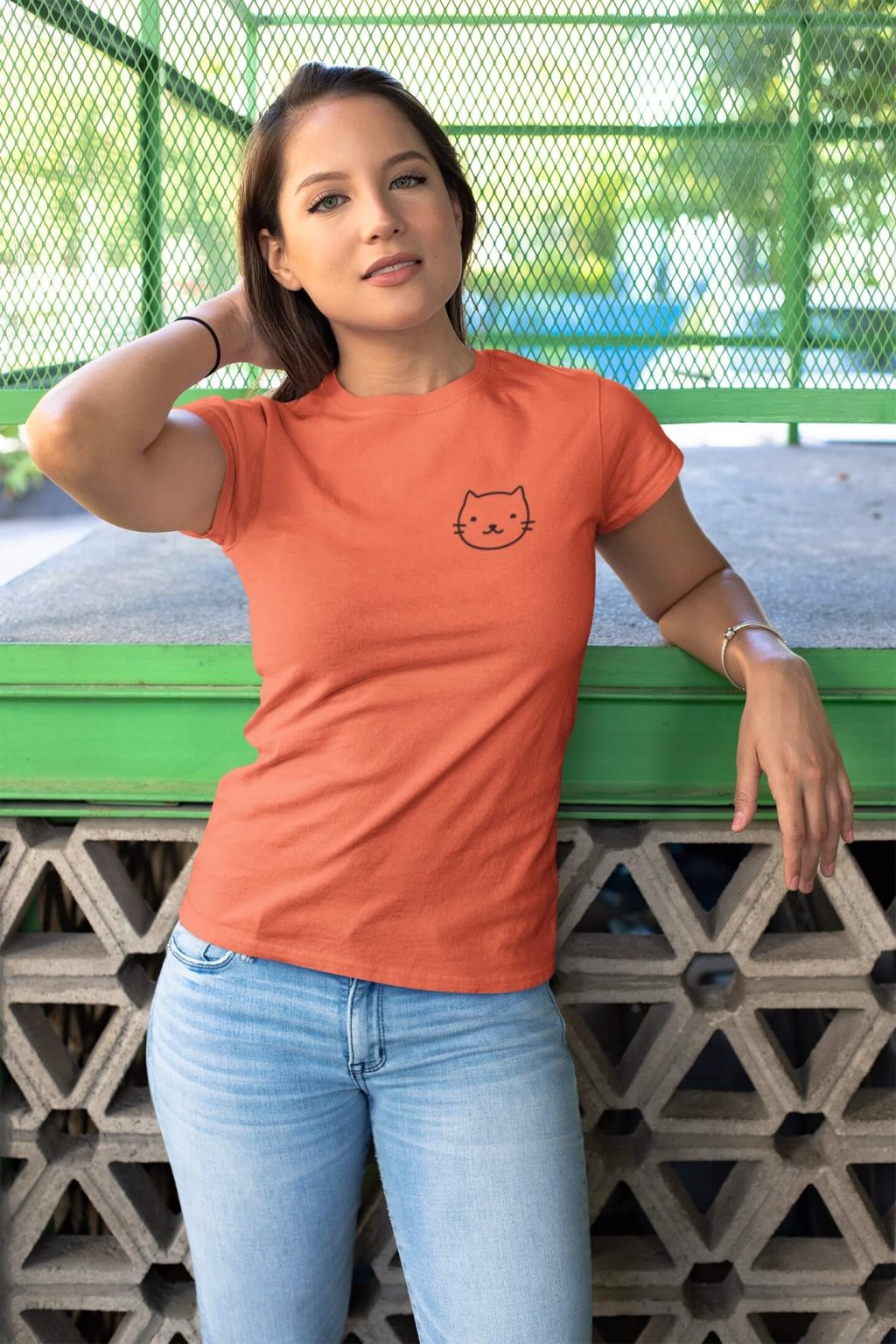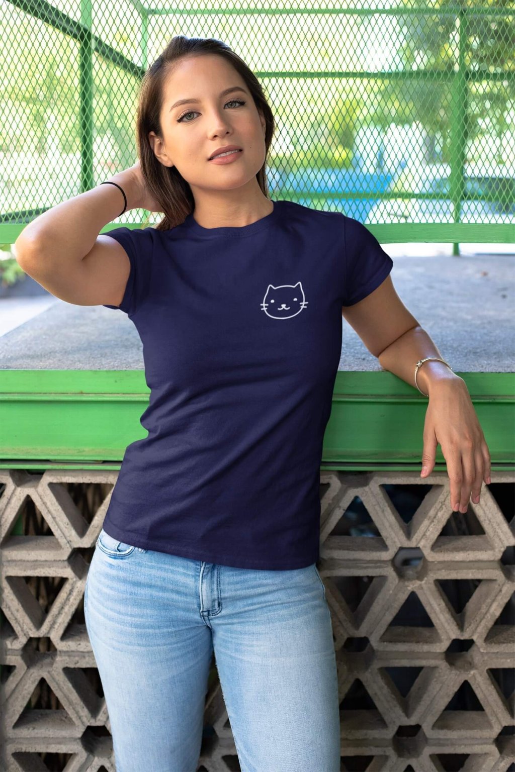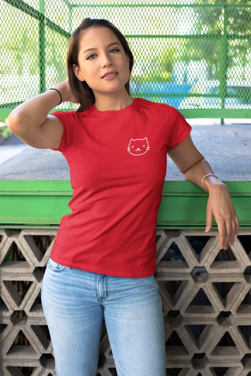 Dámske bavlnené tričko s krátkym rukávom s obrázkom hlavy mačky.