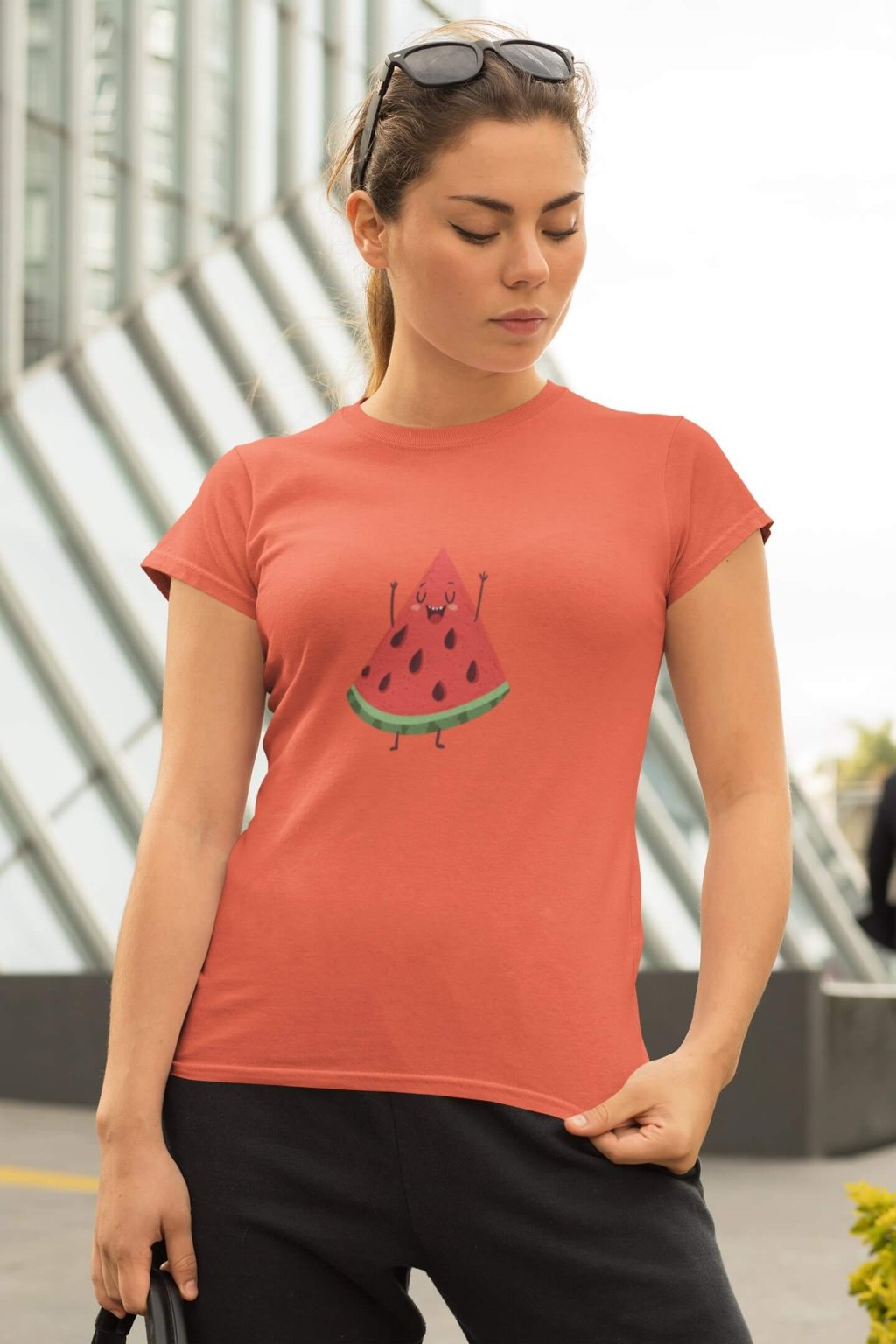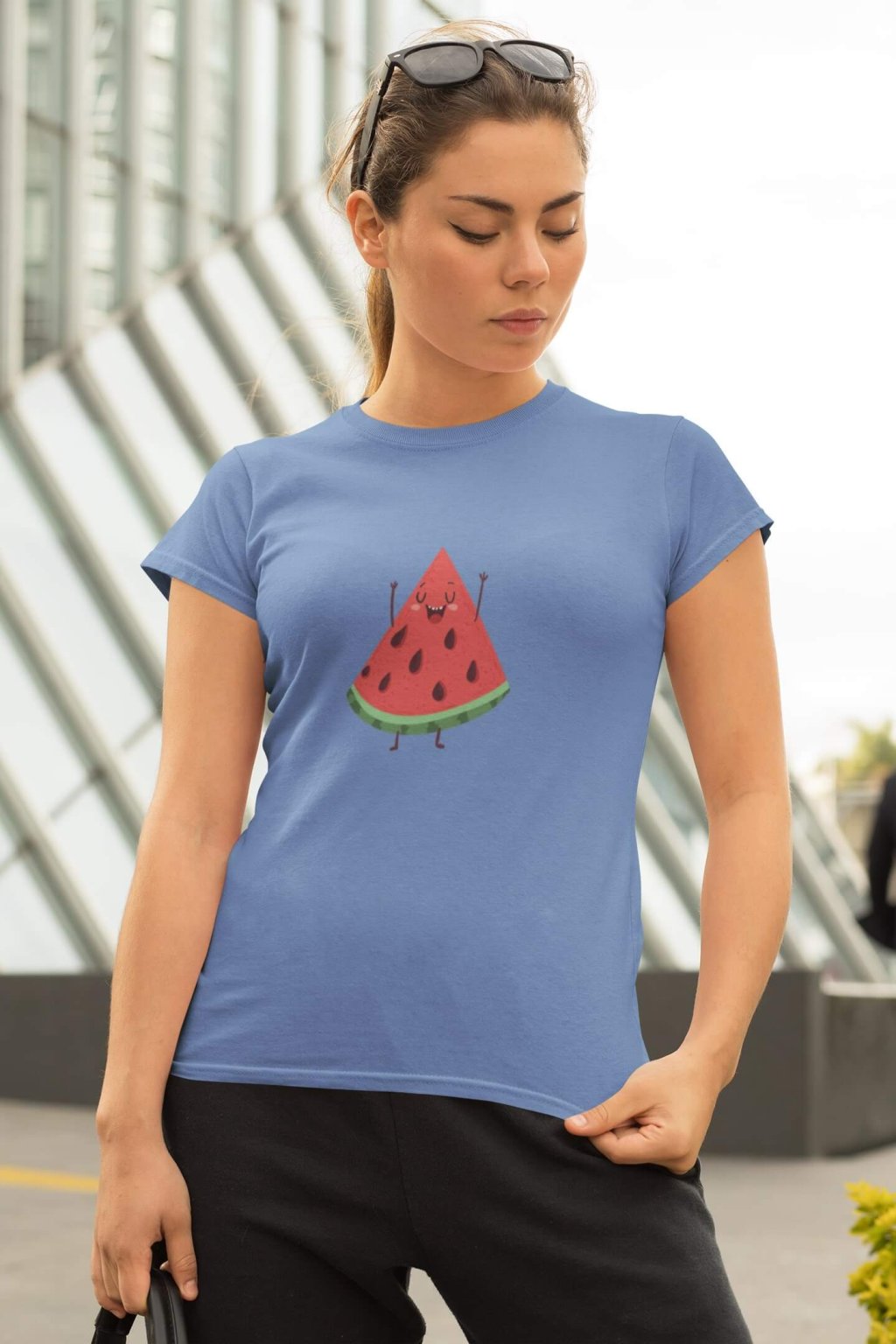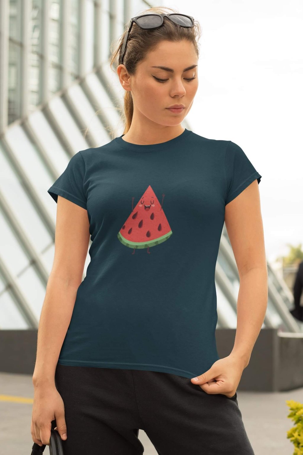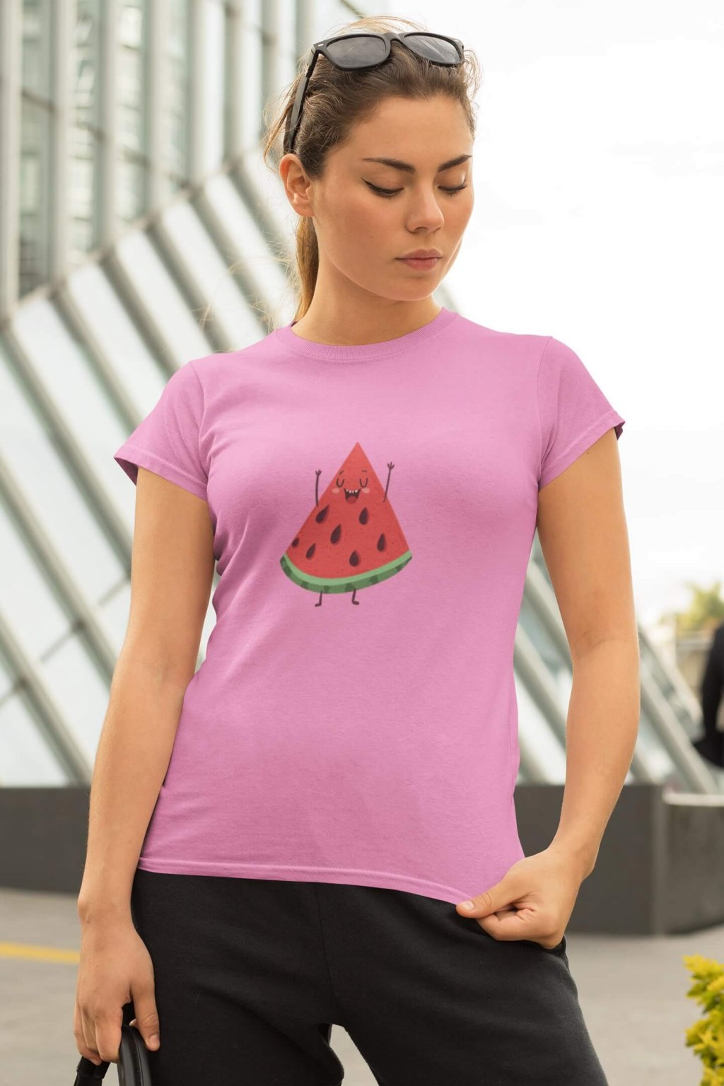 Dámske bavlnené tričko s krátkym rukávom s obrázkom roztomilého melóna, ktorý sa usmieva.