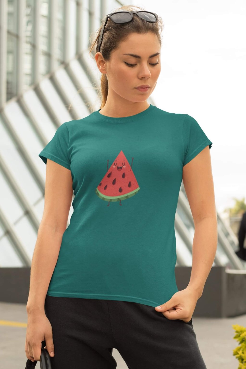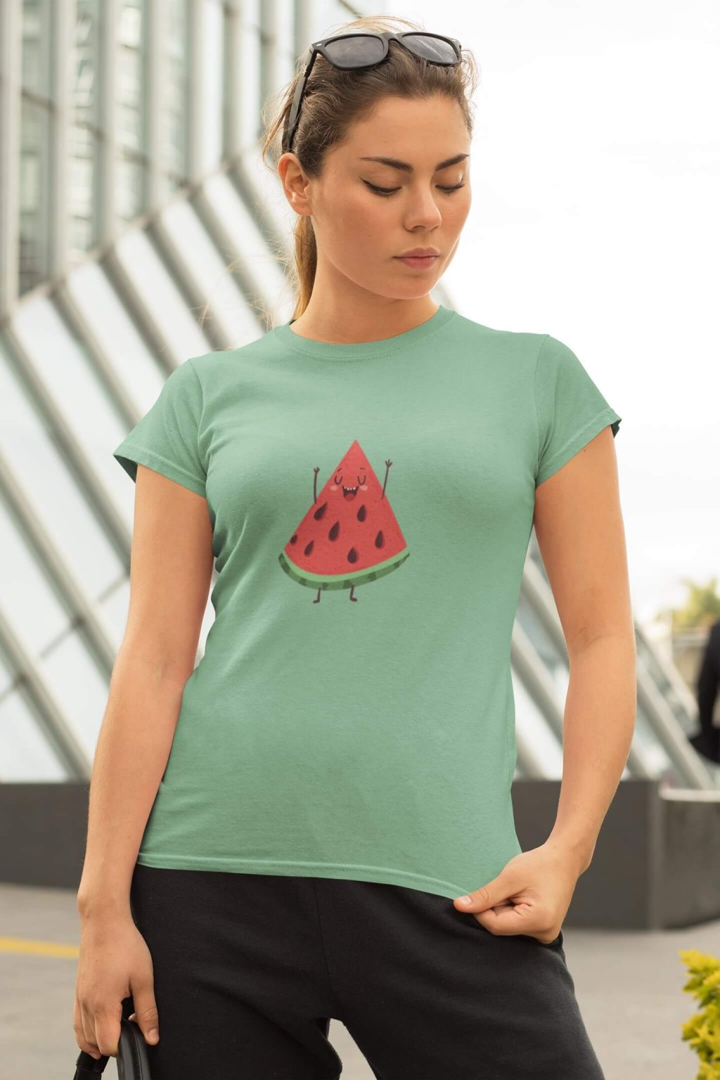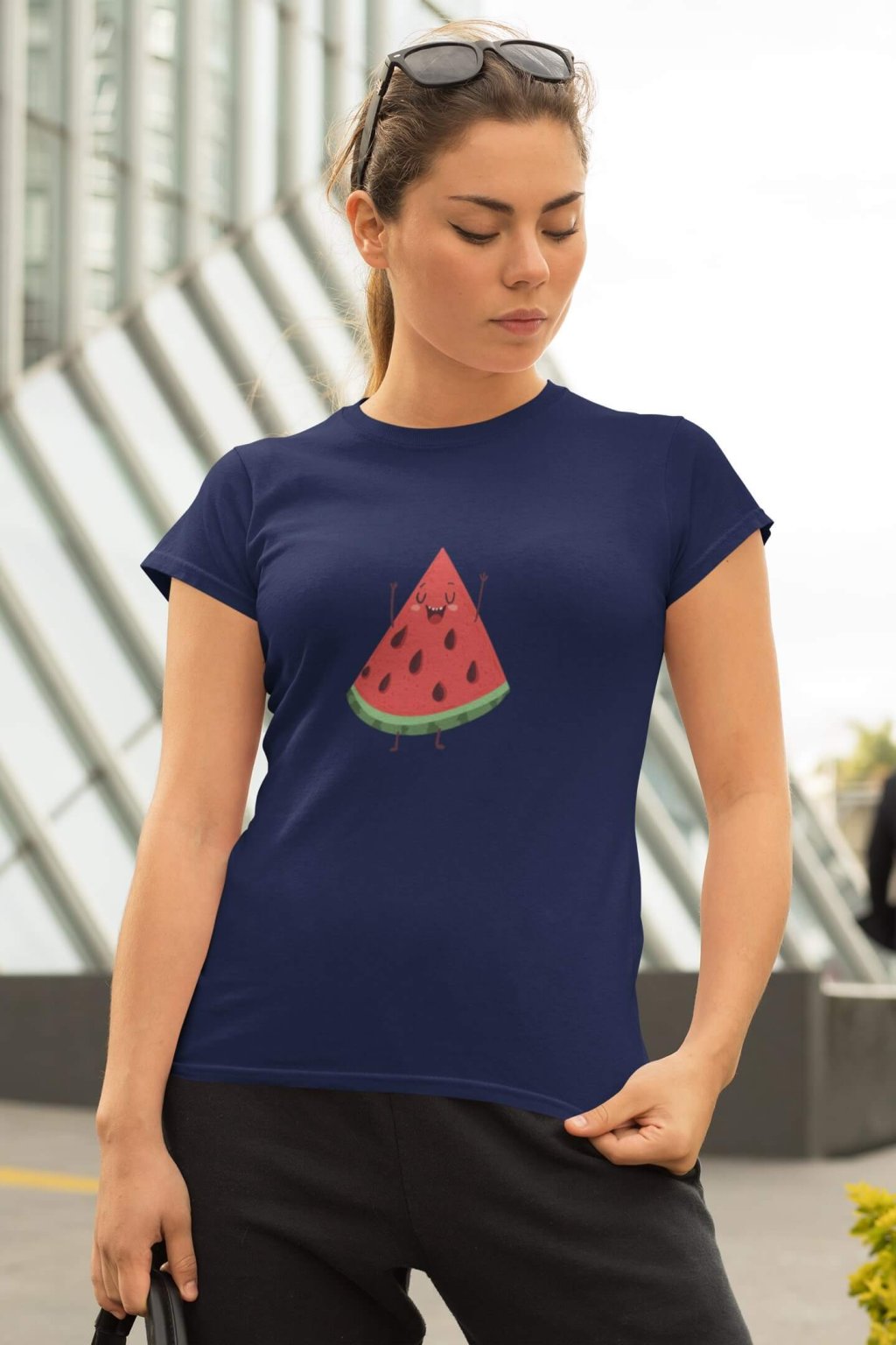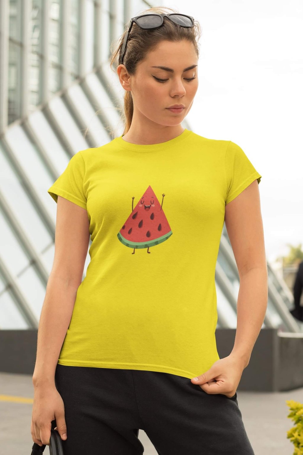 Dámske bavlnené tričko s krátkym rukávom s obrázkom roztomilého melóna, ktorý sa usmieva.