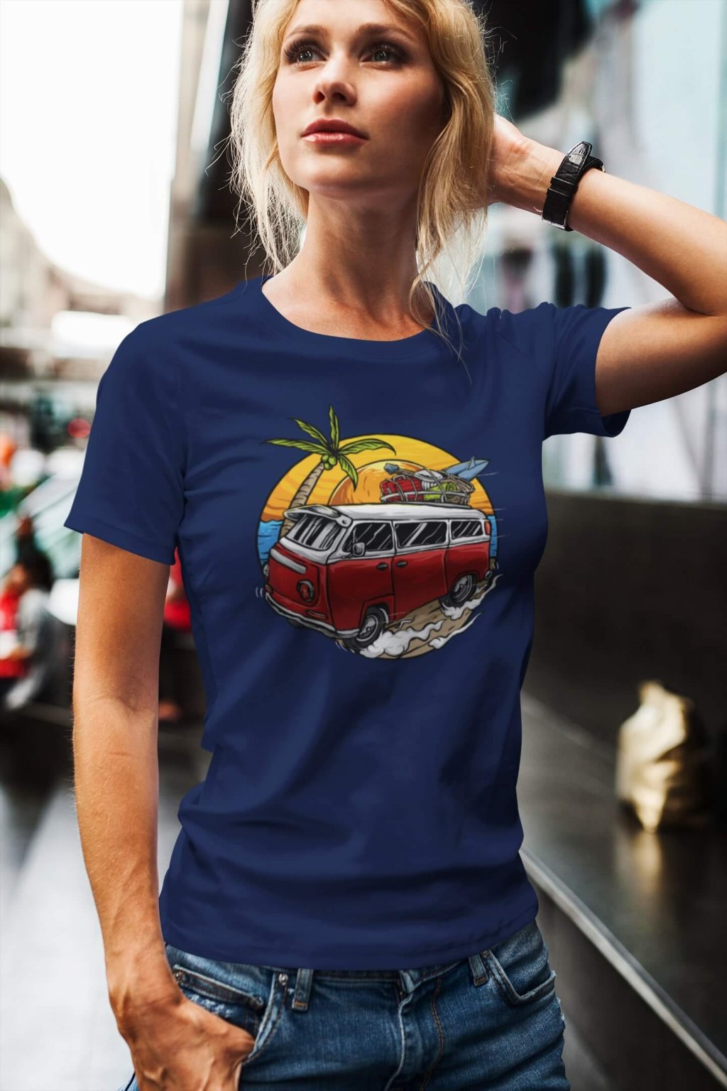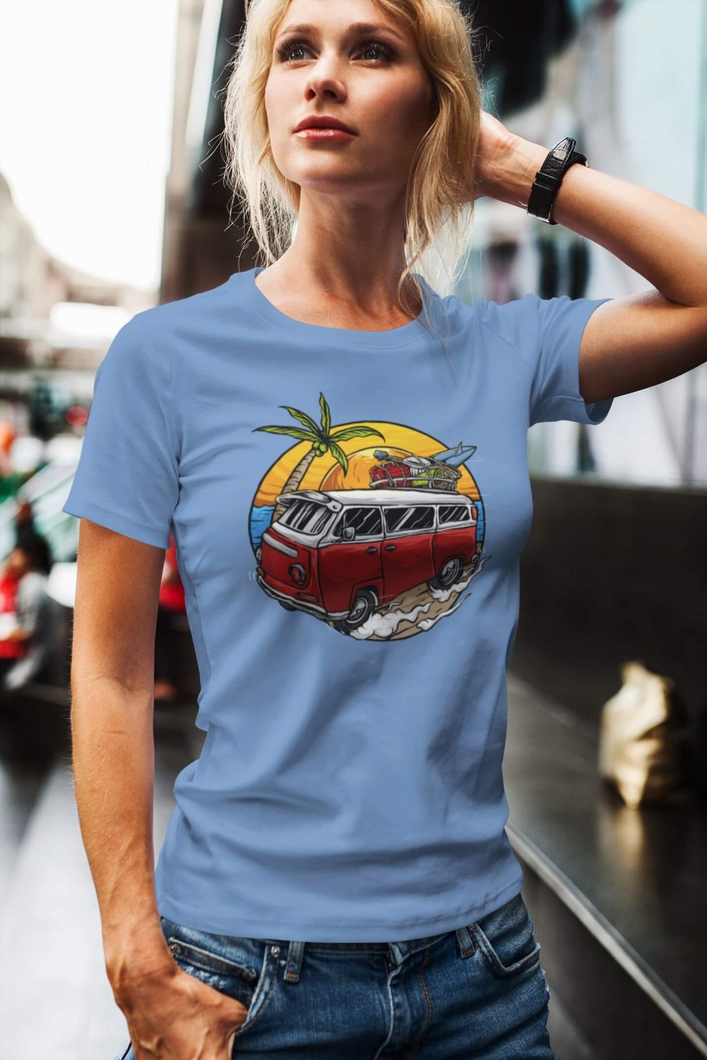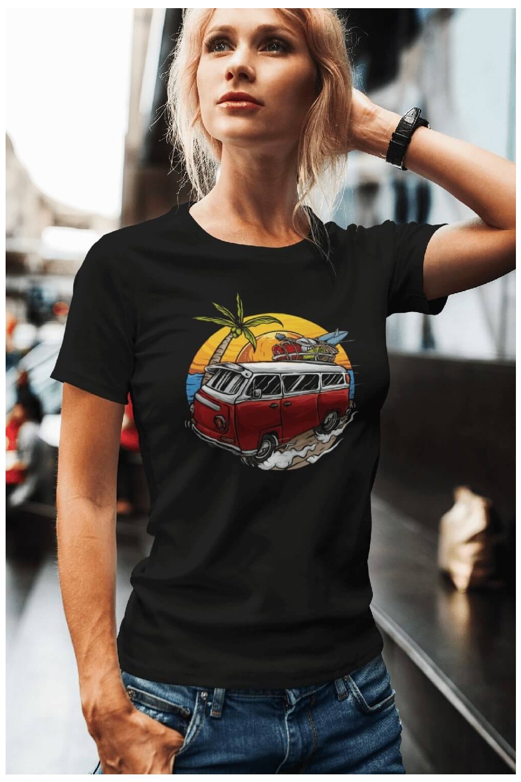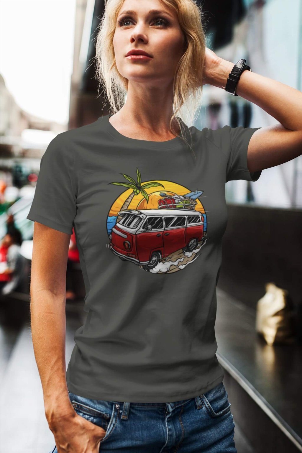 Dámske bavlnené tričko s krátkym rukávom a vintage potlačou. Na tričku je retro obrázok minibusu. Tričko ideálne pre ženy, ktoré zbožňujú akékoľvek retro.