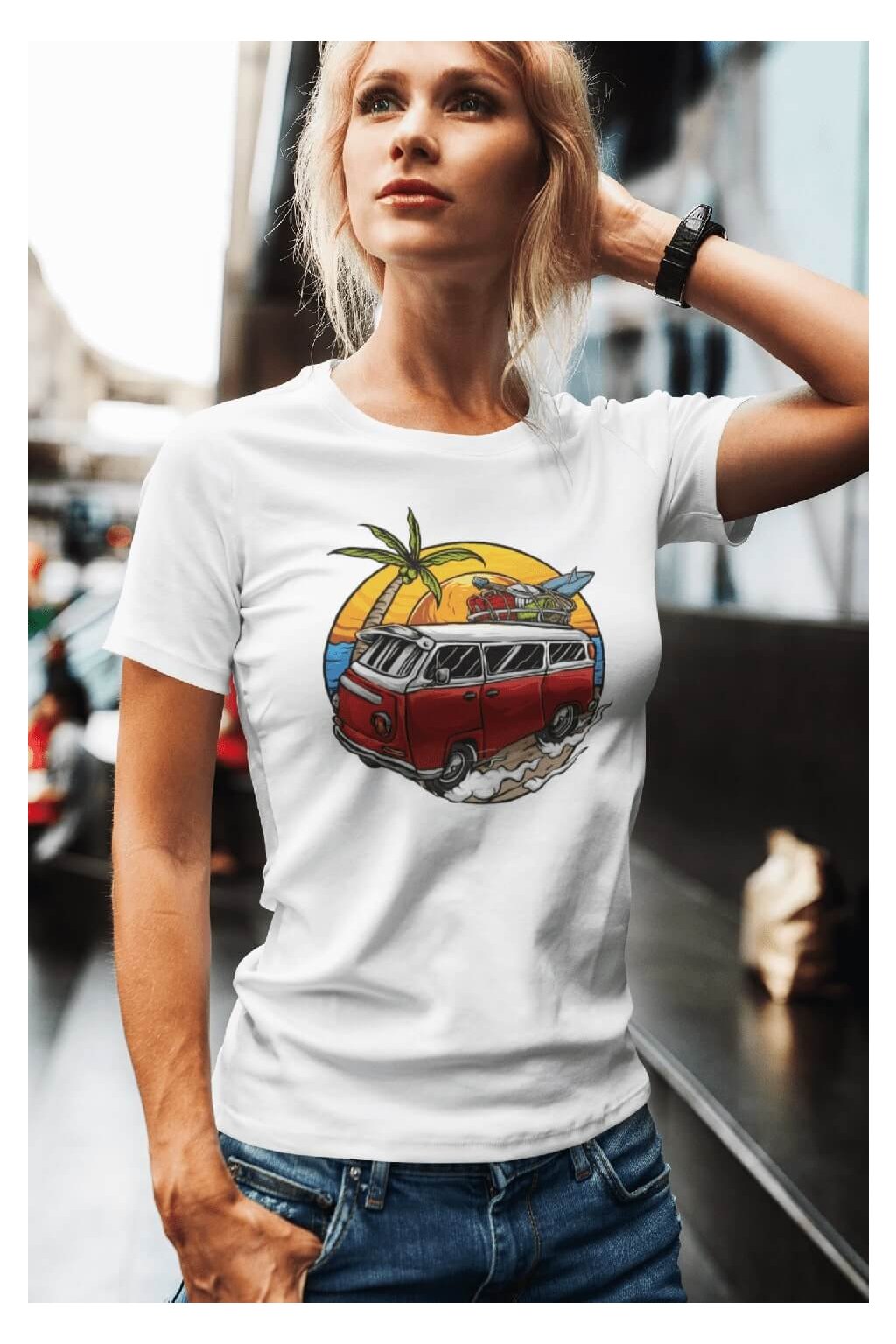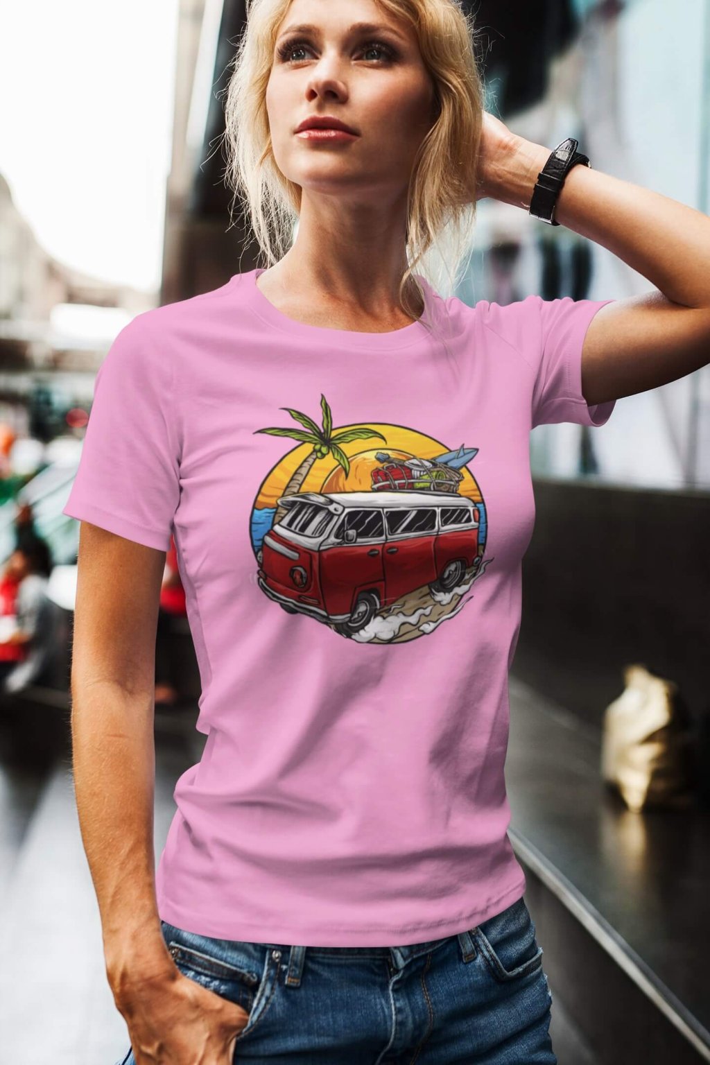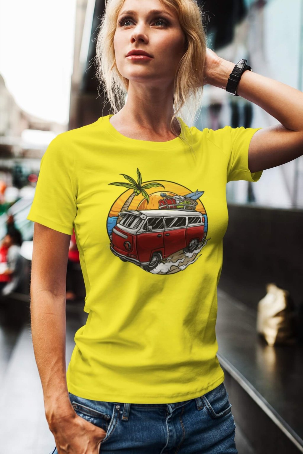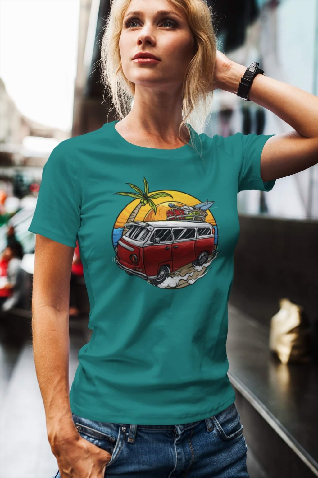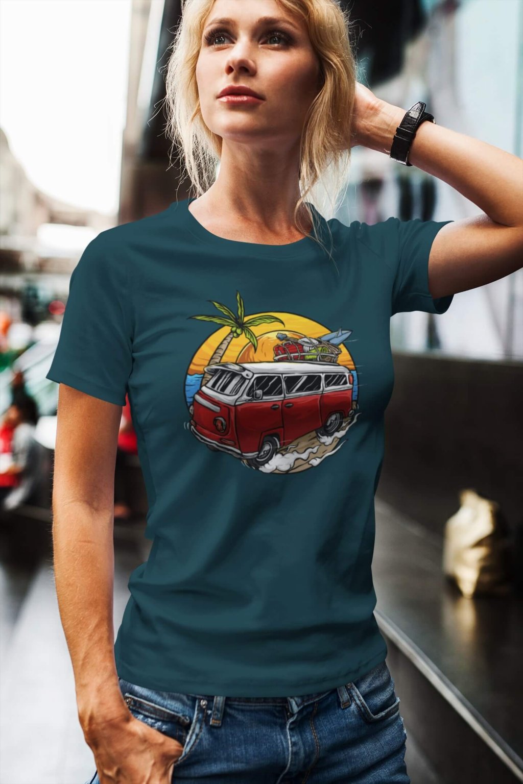 Dámske bavlnené tričko s krátkym rukávom a vintage potlačou. Na tričku je retro obrázok minibusu. Tričko ideálne pre ženy, ktoré zbožňujú akékoľvek retro.