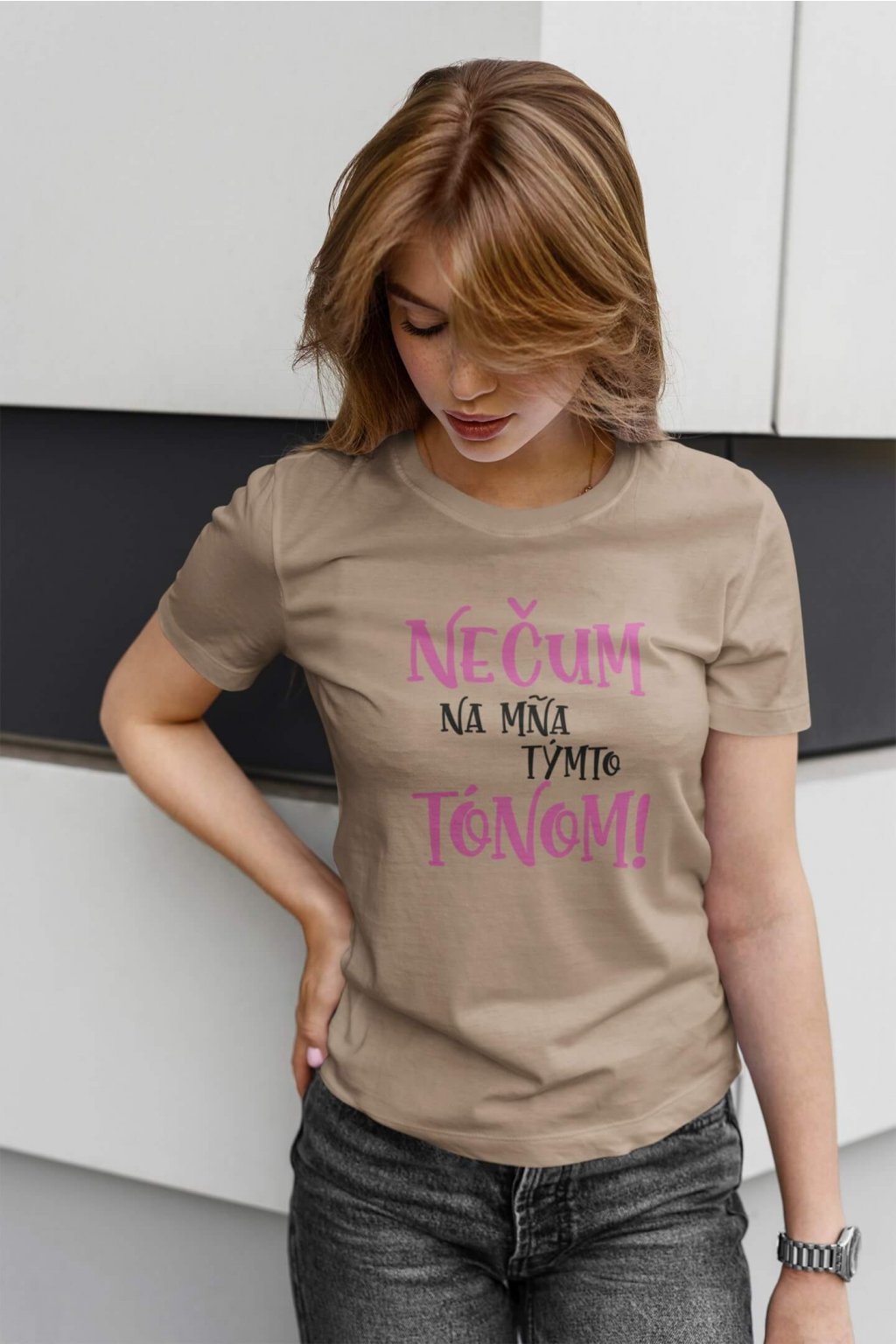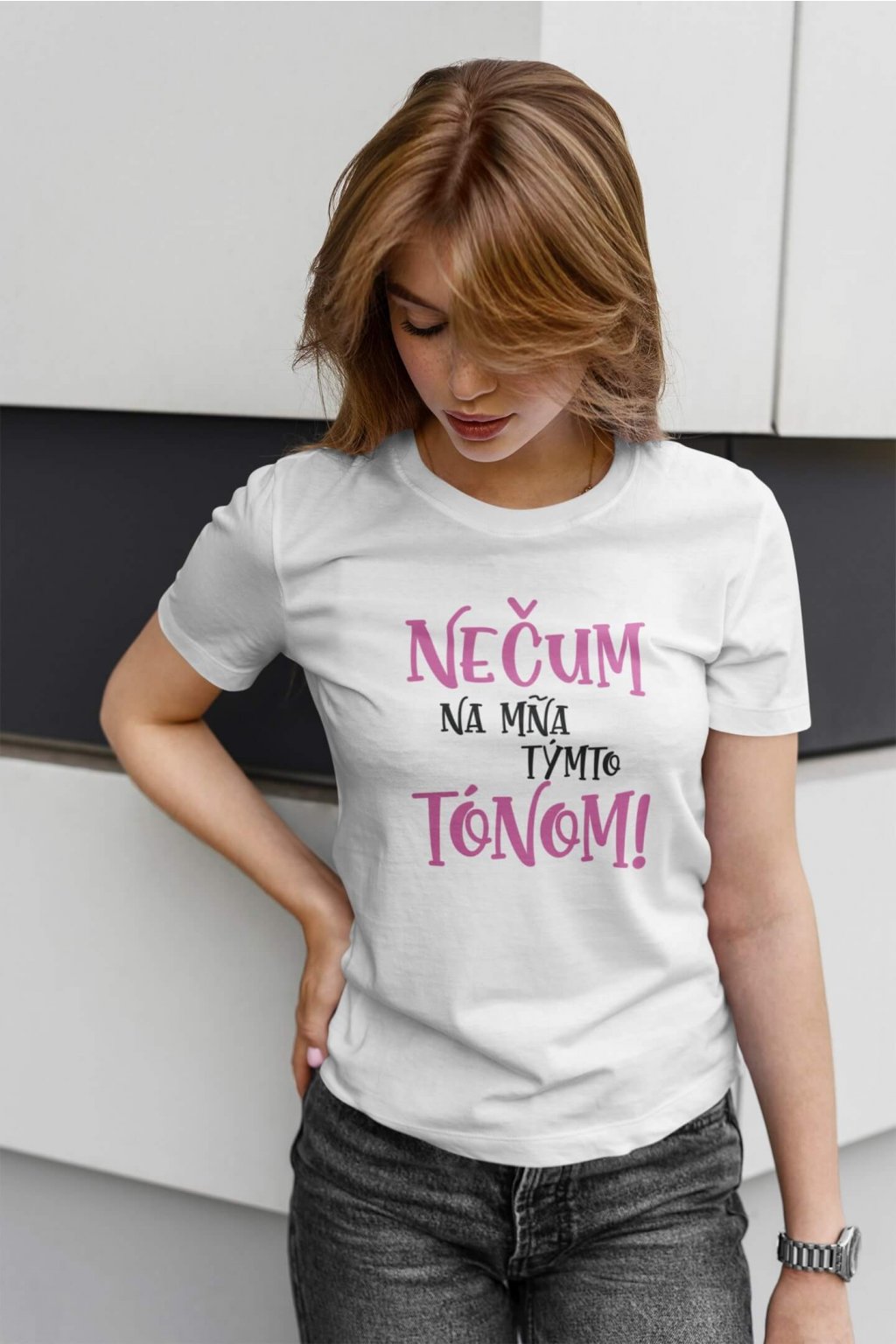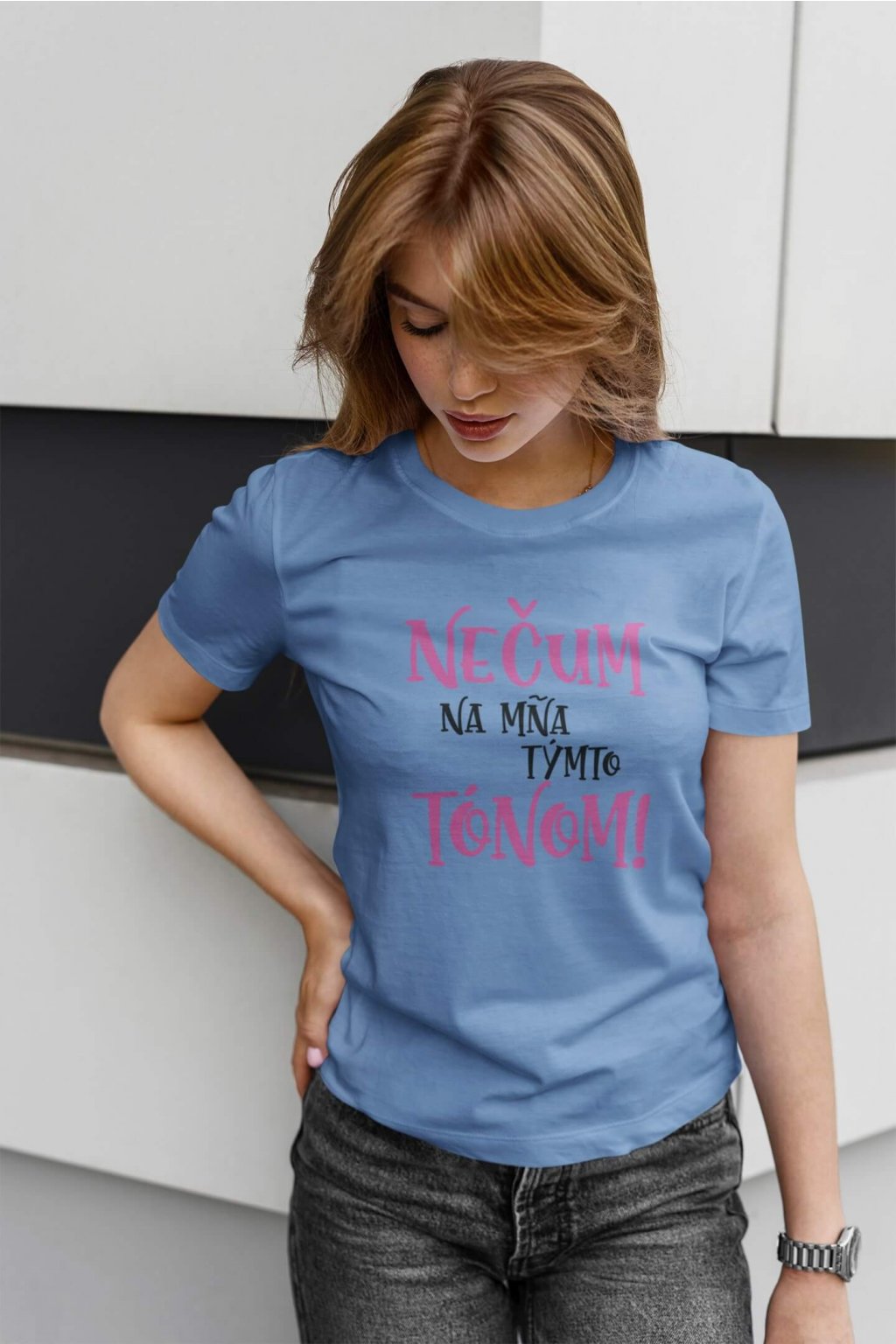 Dámske bavlnené tričko s krátkym rukávom a vtipnou potlačou. Na tričku je originálny nápis: ,,NEČUM NA MŇA TÝMTO TÓNOM."