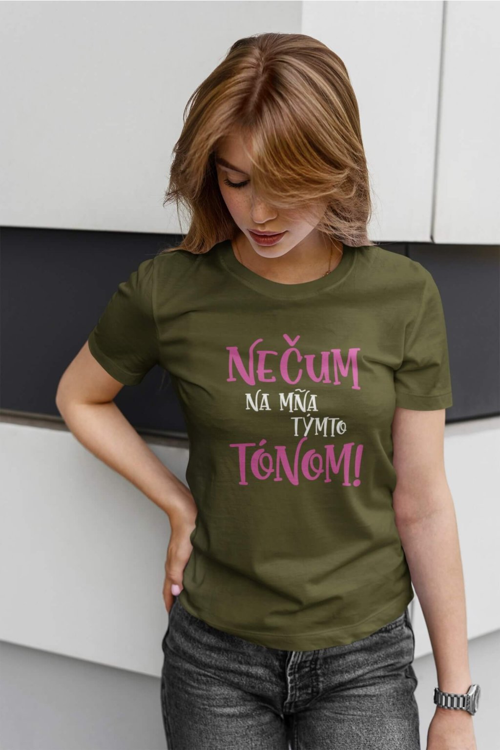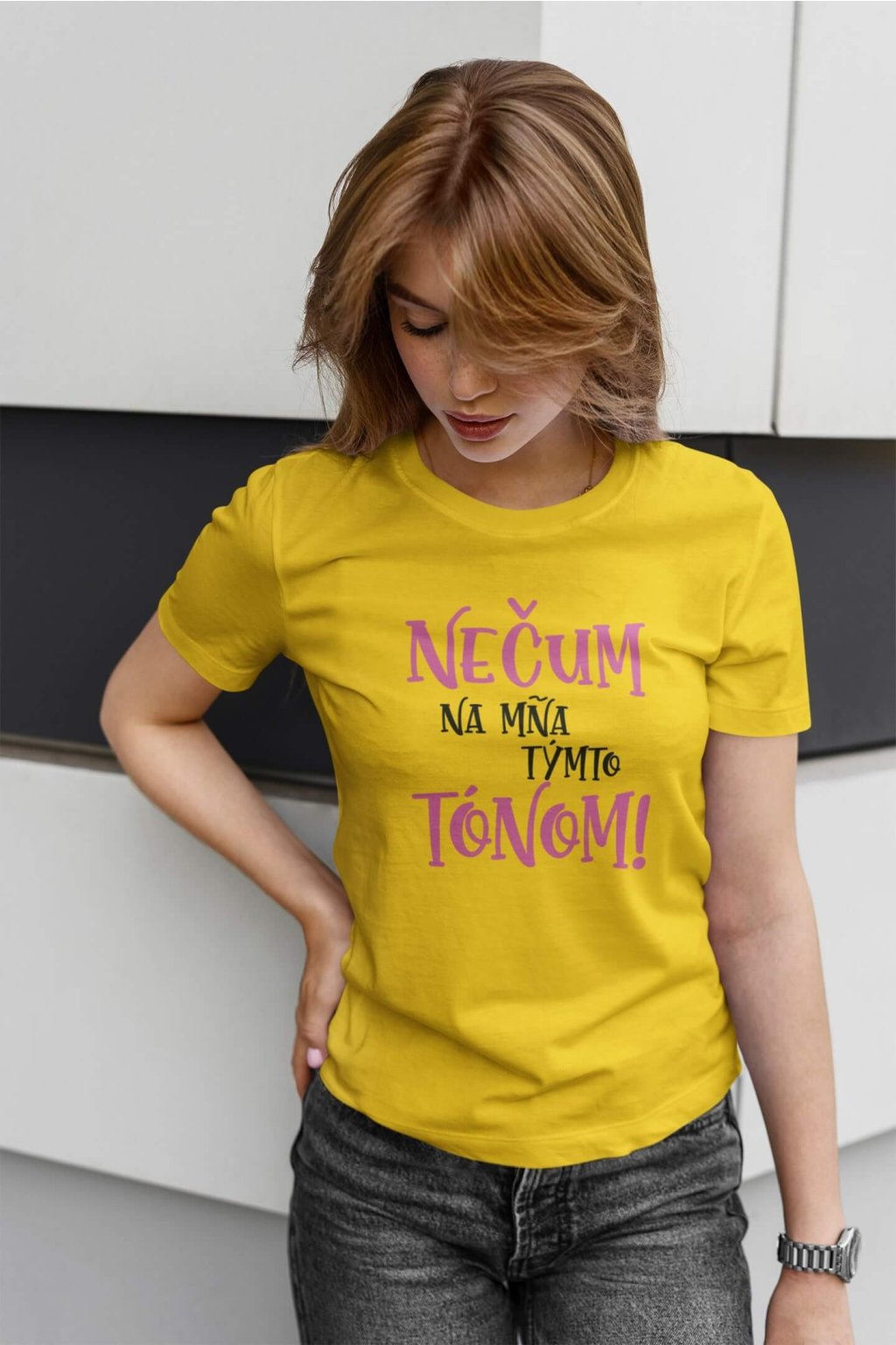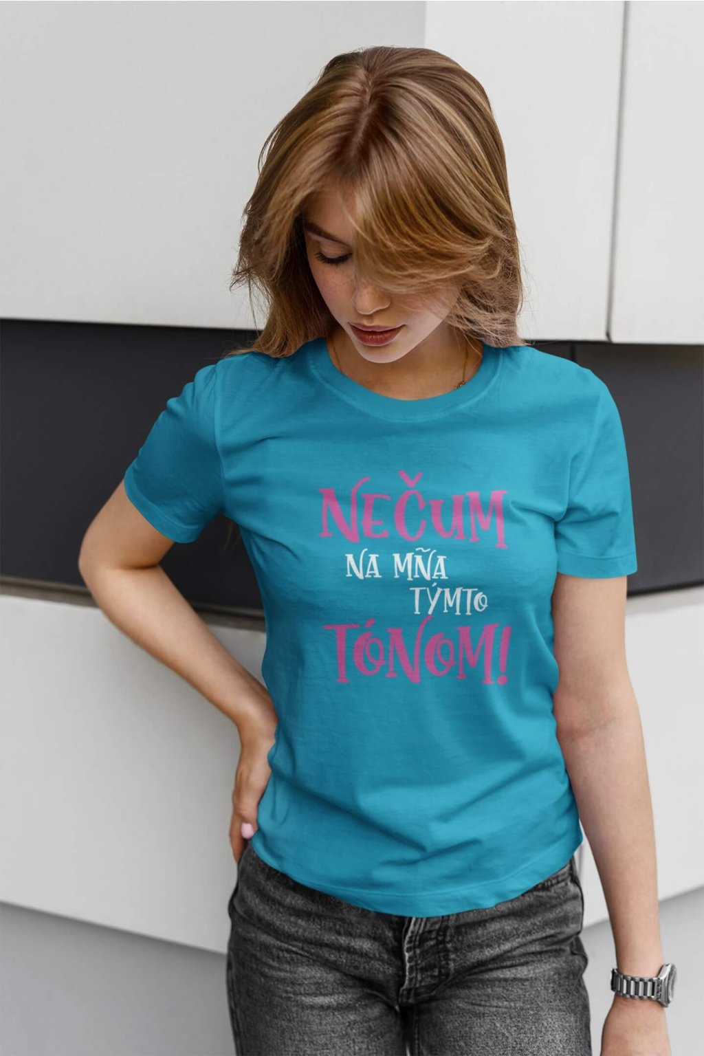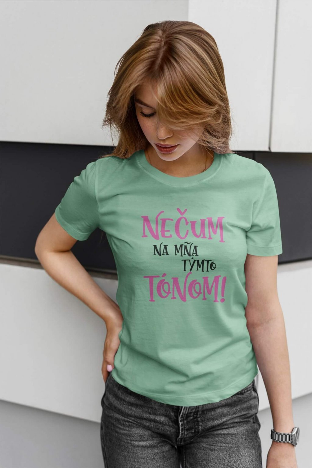 Dámske bavlnené tričko s krátkym rukávom a vtipnou potlačou. Na tričku je originálny nápis: ,,NEČUM NA MŇA TÝMTO TÓNOM."