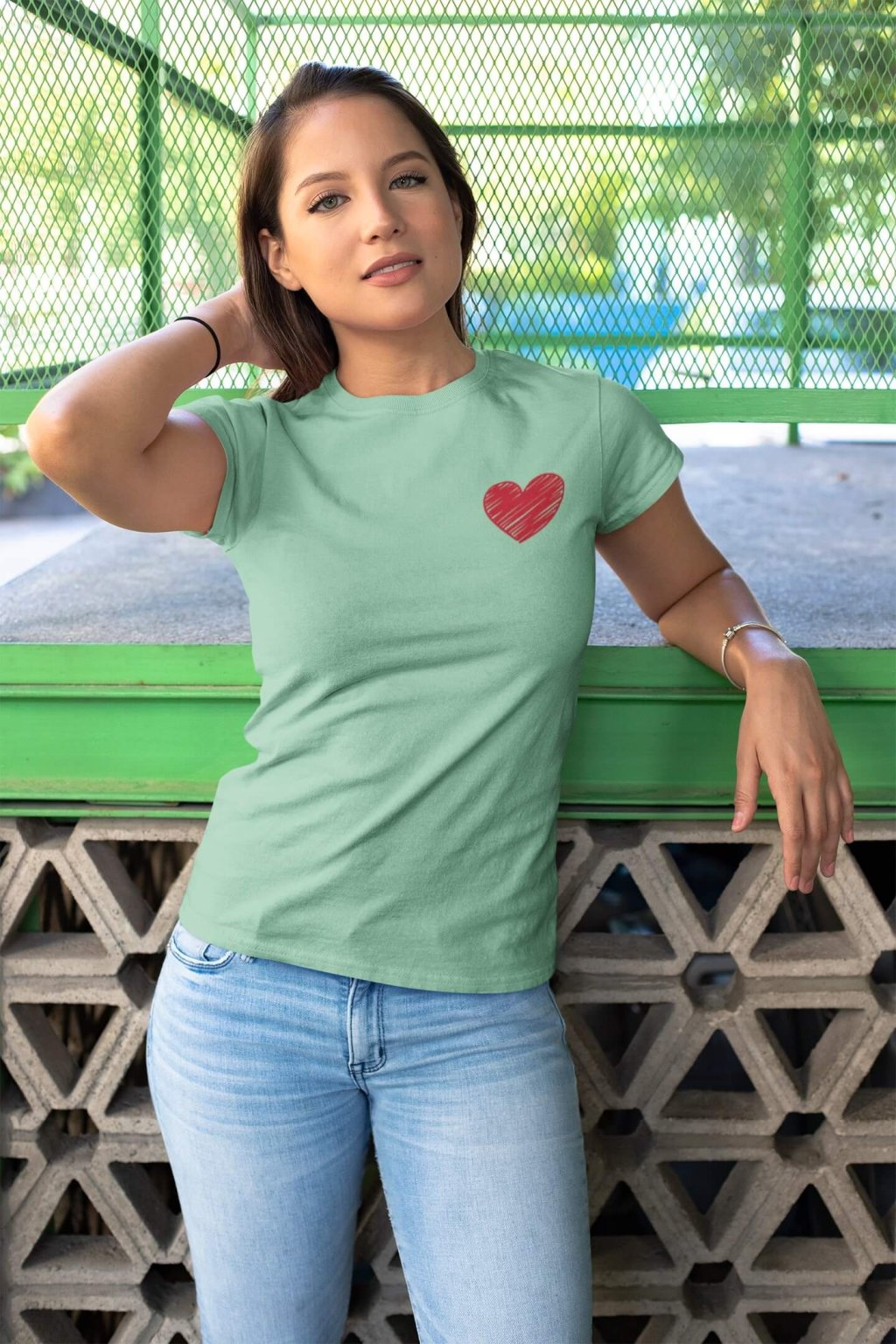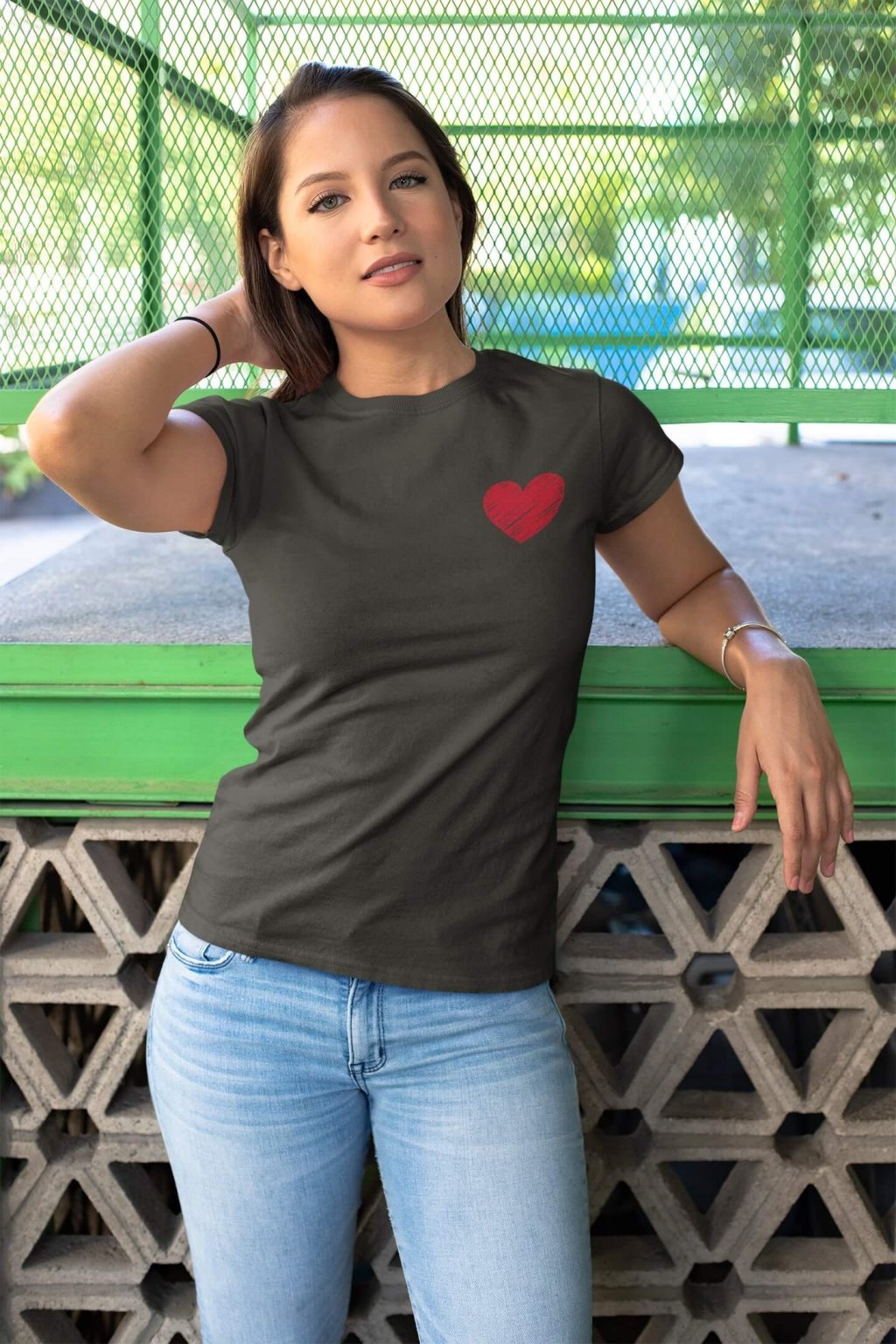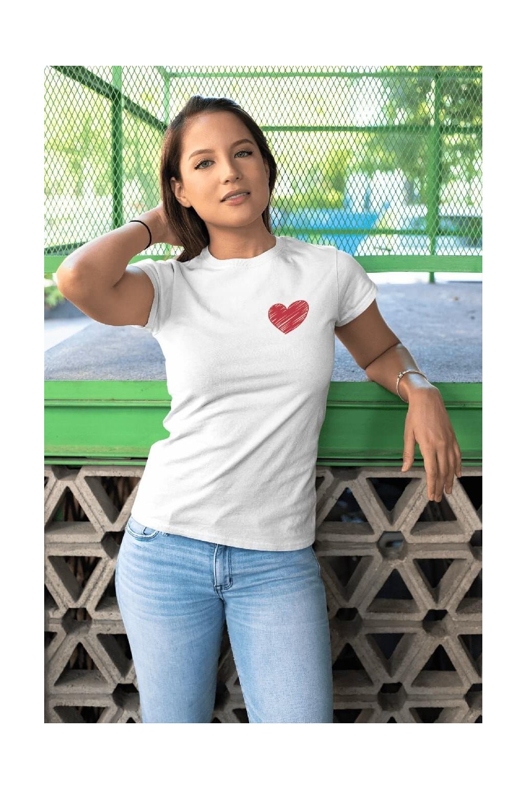 Dámske bavlnené tričko s krátkym rukávom s obrázkom srdiečka