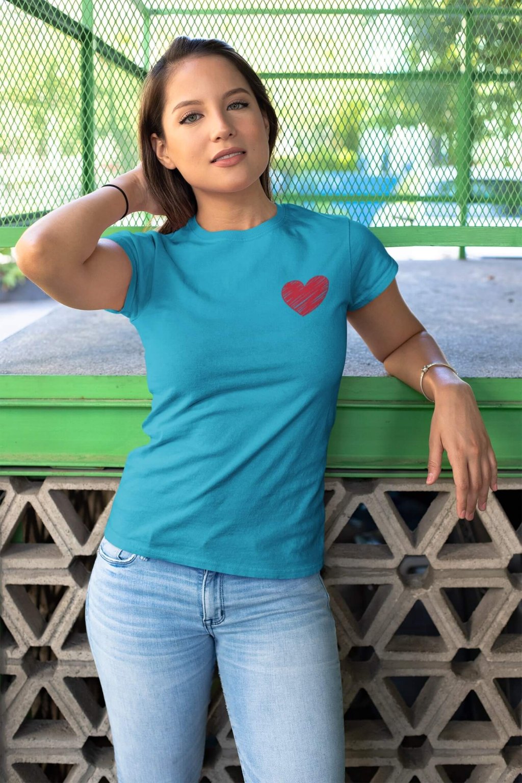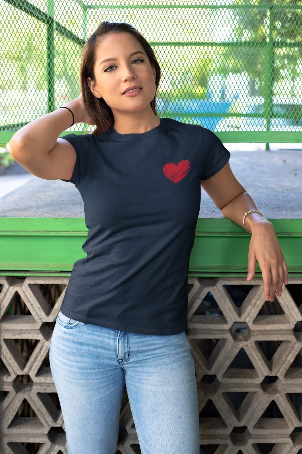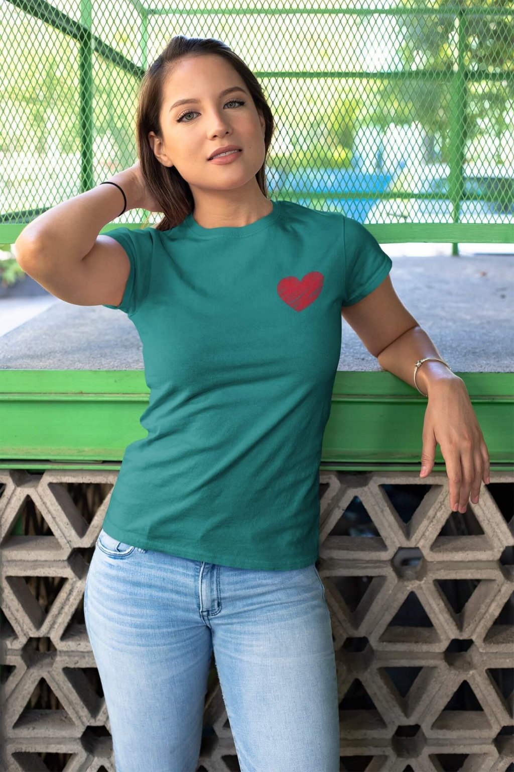 Dámske bavlnené tričko s krátkym rukávom s obrázkom srdiečka
