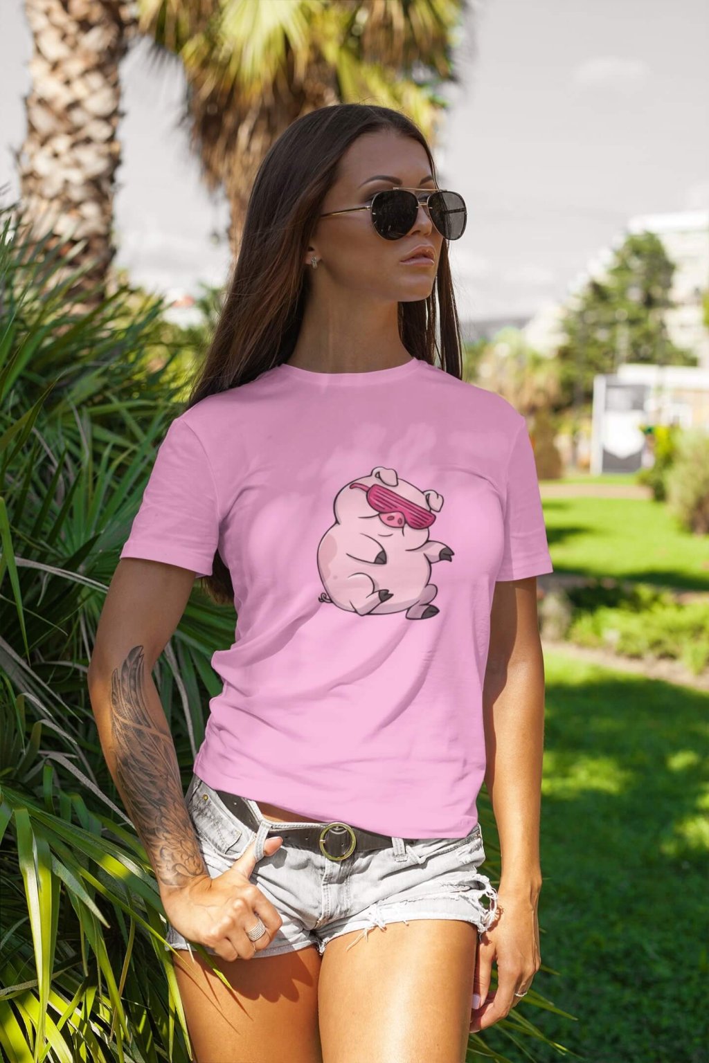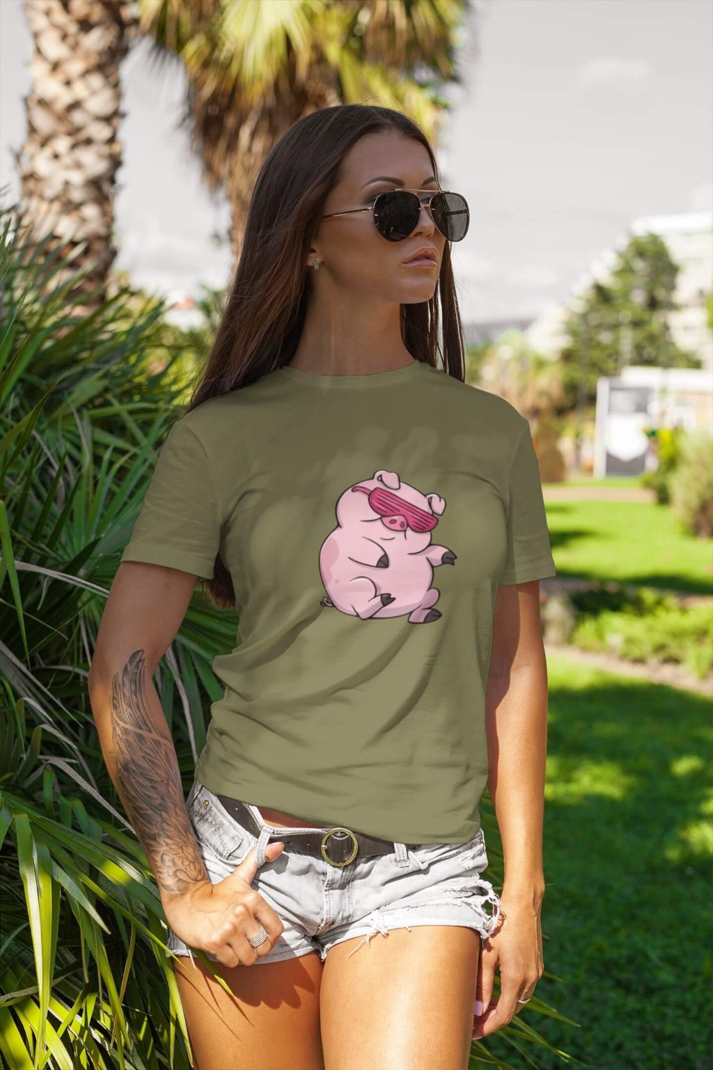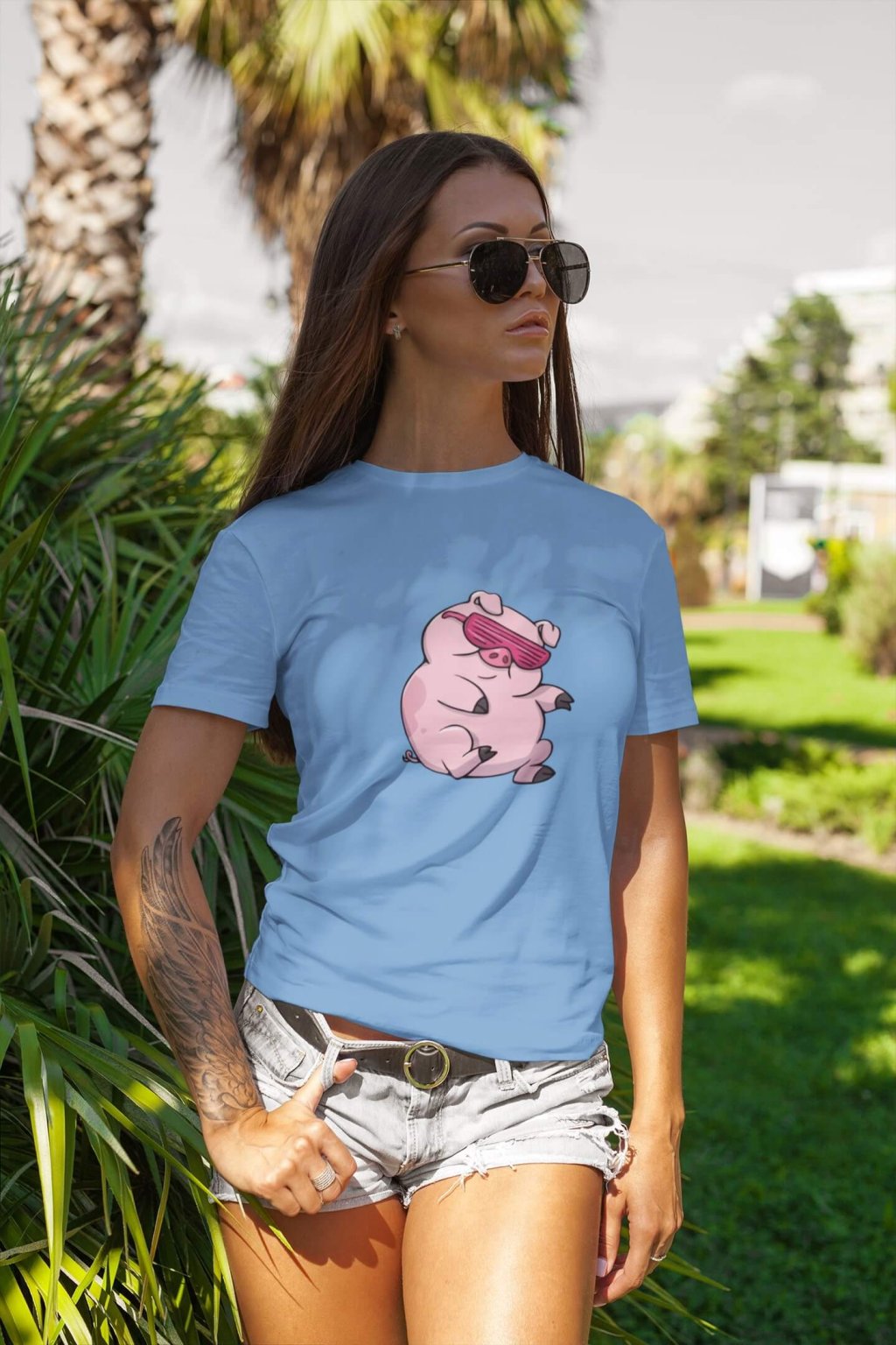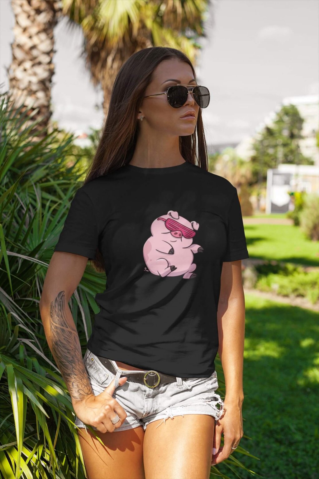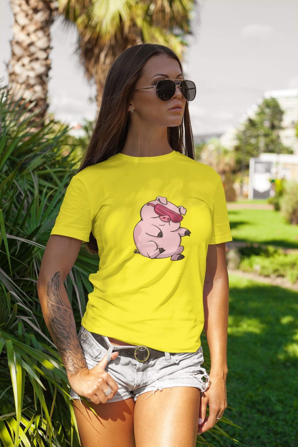 Dámske bavlnené tričko s krátkym rukávom a vtipnou potlačou. Na tričku je obrázok prasiatka s okuliarmi.