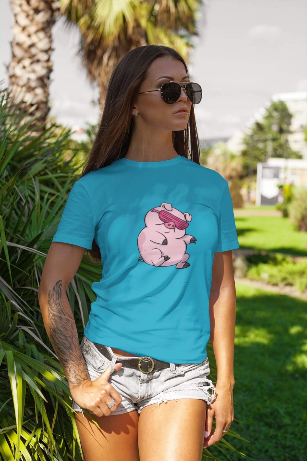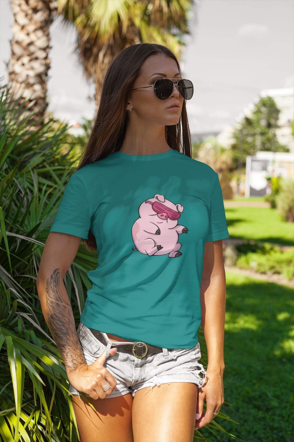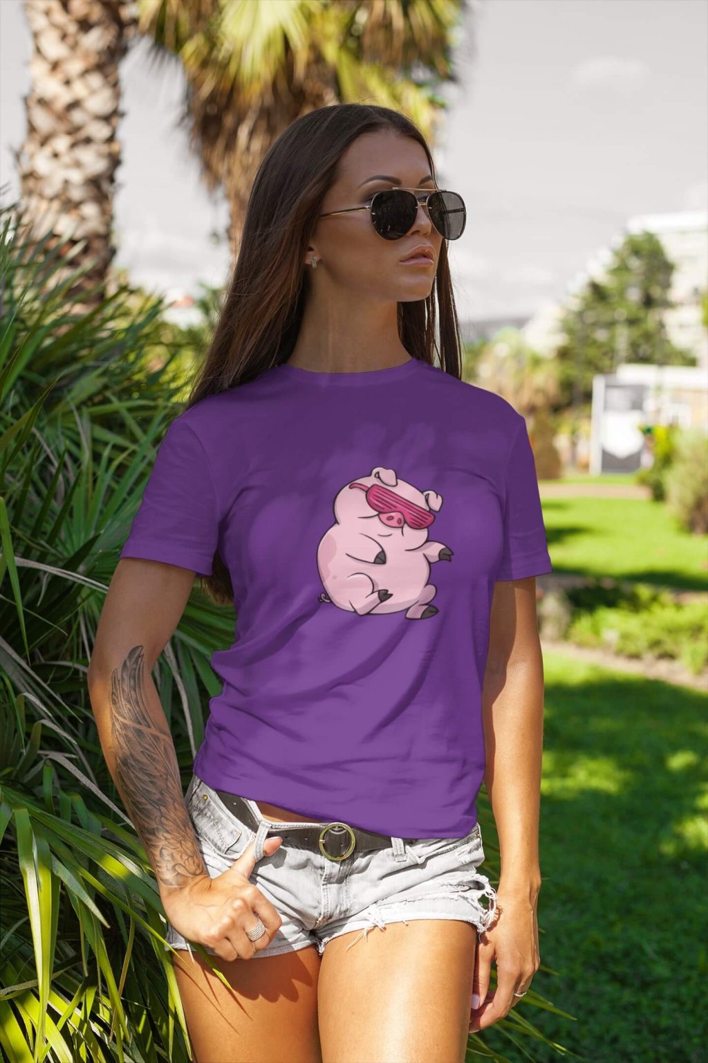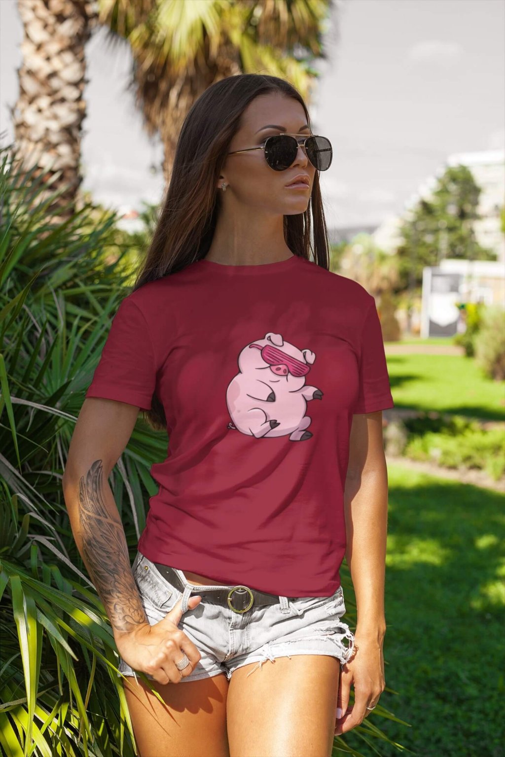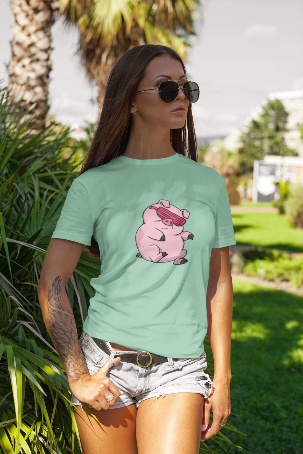 Dámske bavlnené tričko s krátkym rukávom a vtipnou potlačou. Na tričku je obrázok prasiatka s okuliarmi.