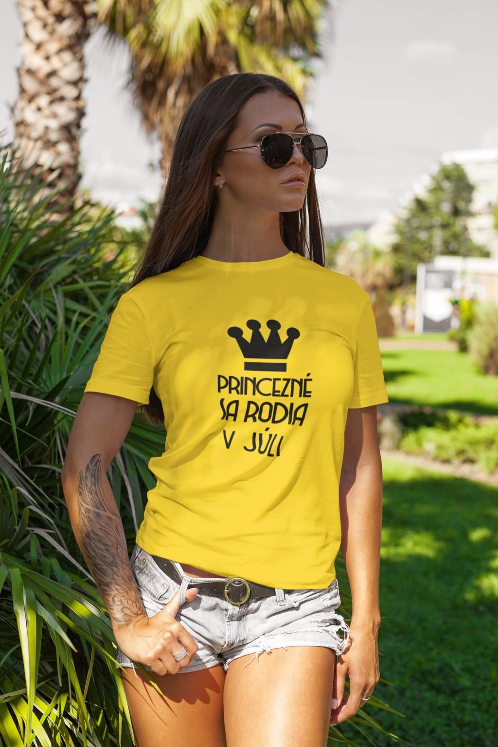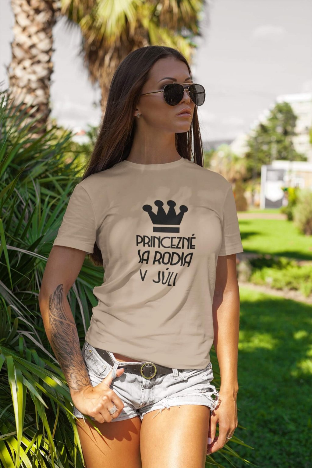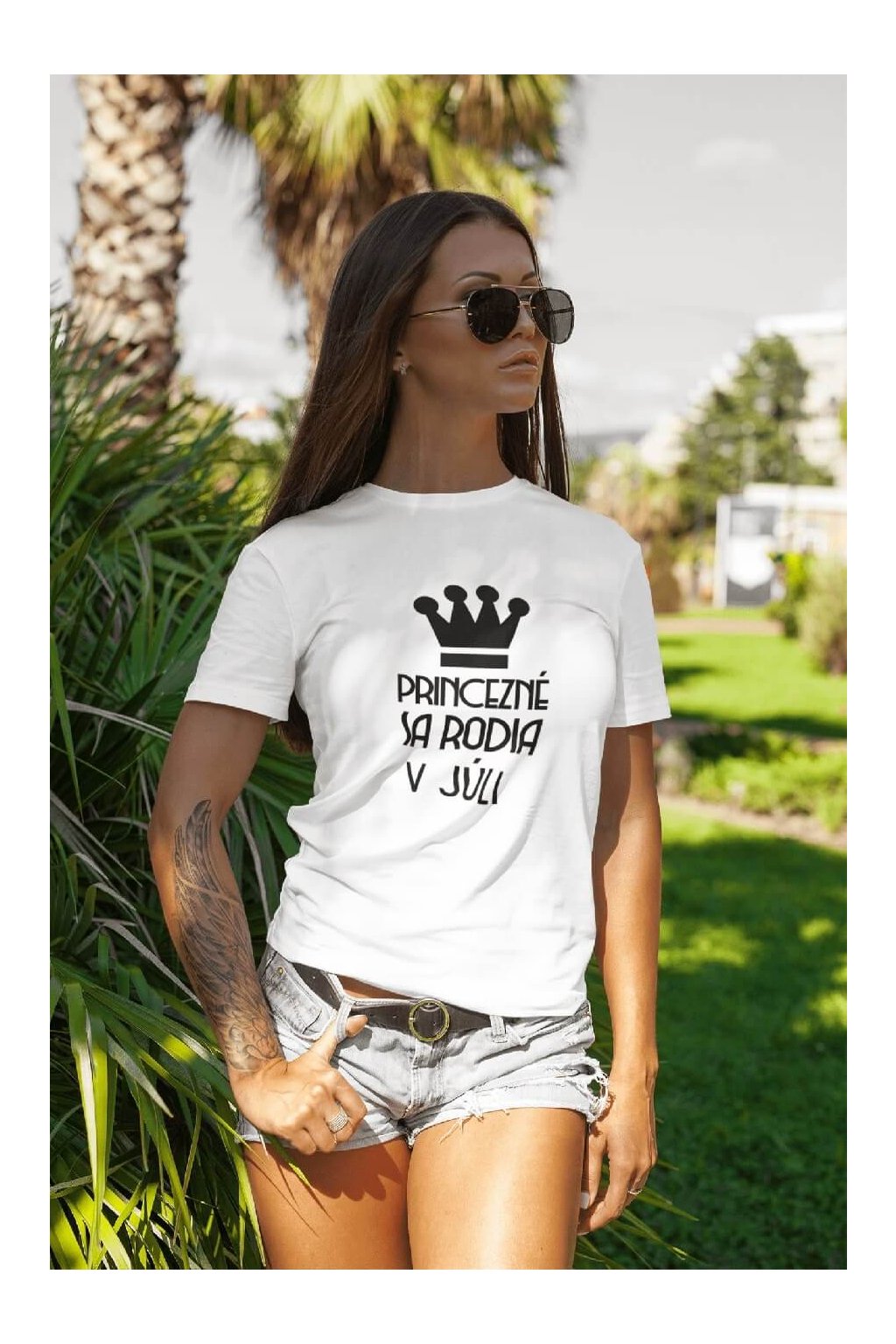 Dámske bavlnené tričko s krátkym rukávom pre princezné. Na tričku je obrázok korunky, pod ktorou je milý nápis: ,,PRINCEZNÉ SA RODIA V JÚLI." Tričko je vhodné ako darček nie len na narodeniny, ale aj pri akéjkoľvek príležitosti pre každú ženu.