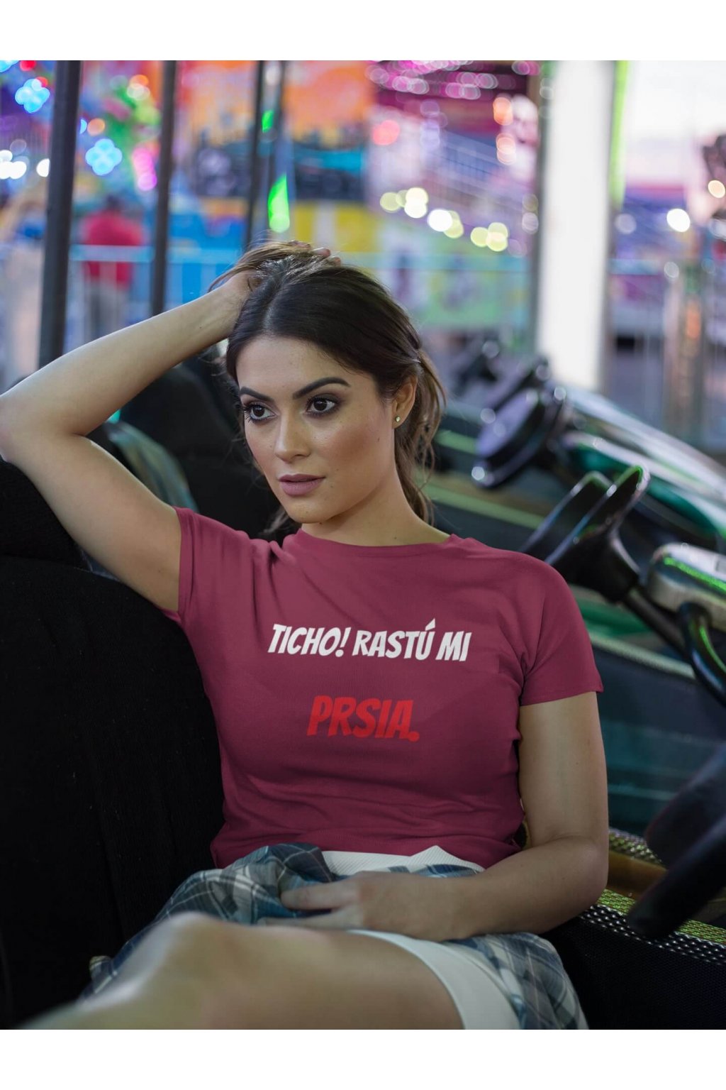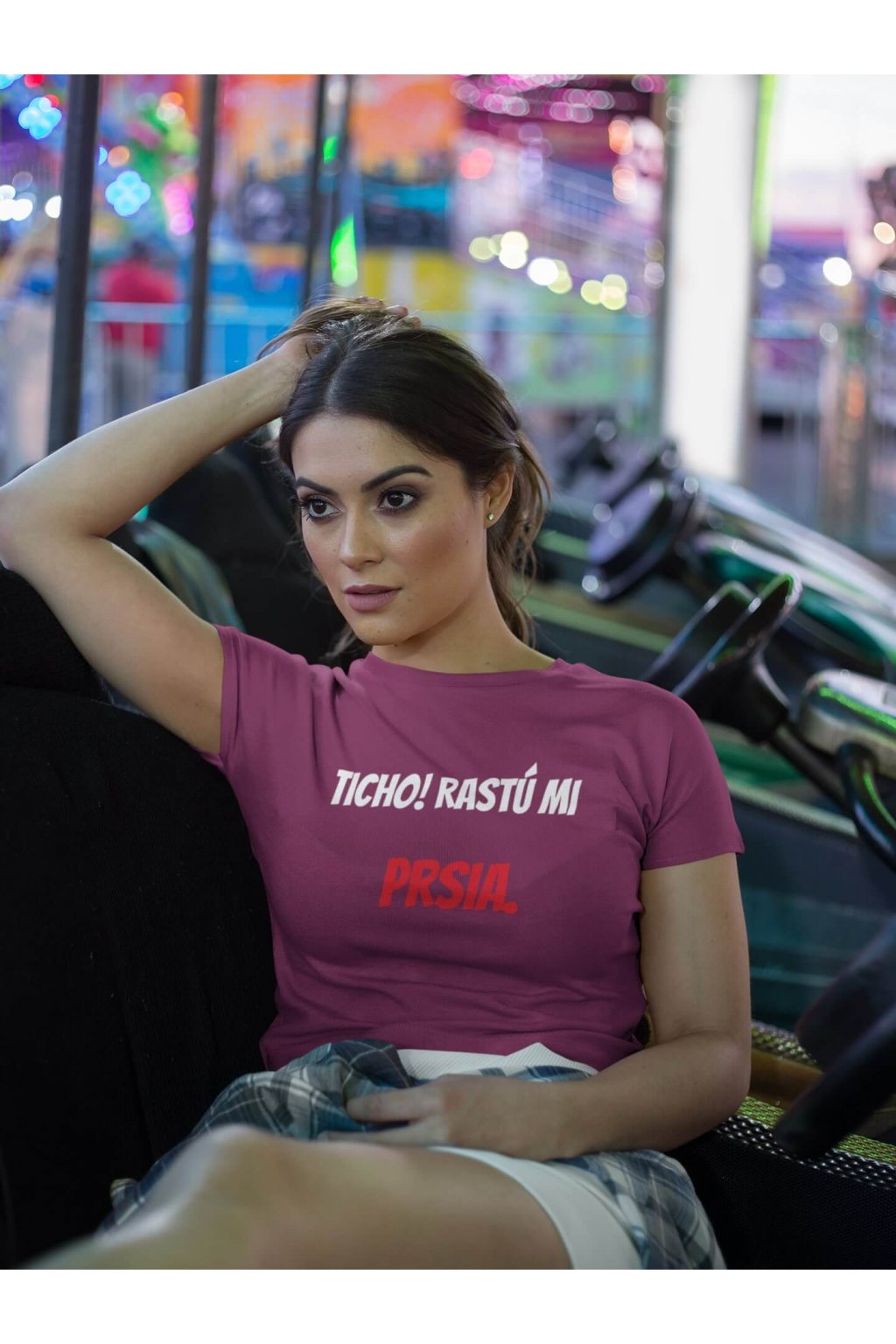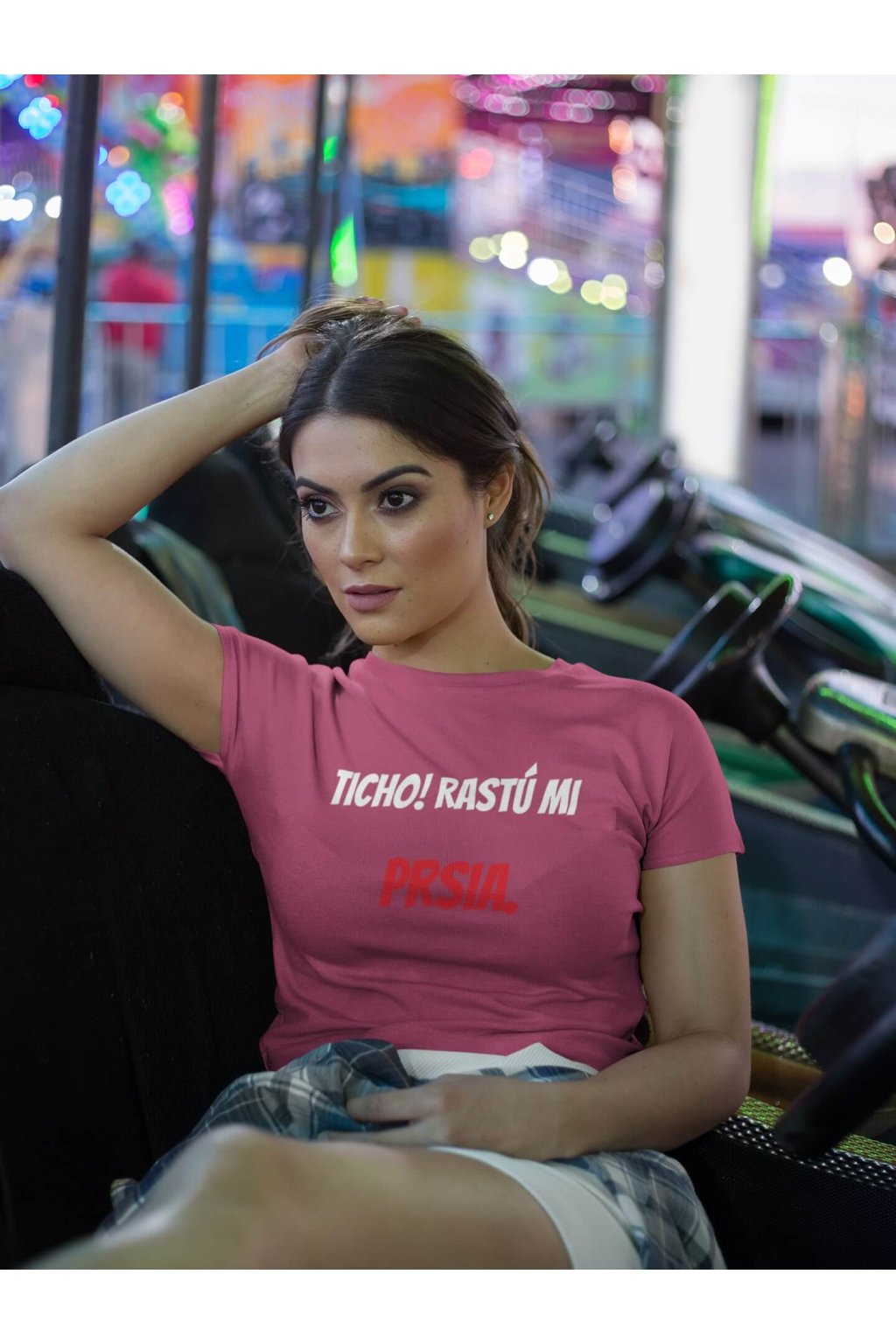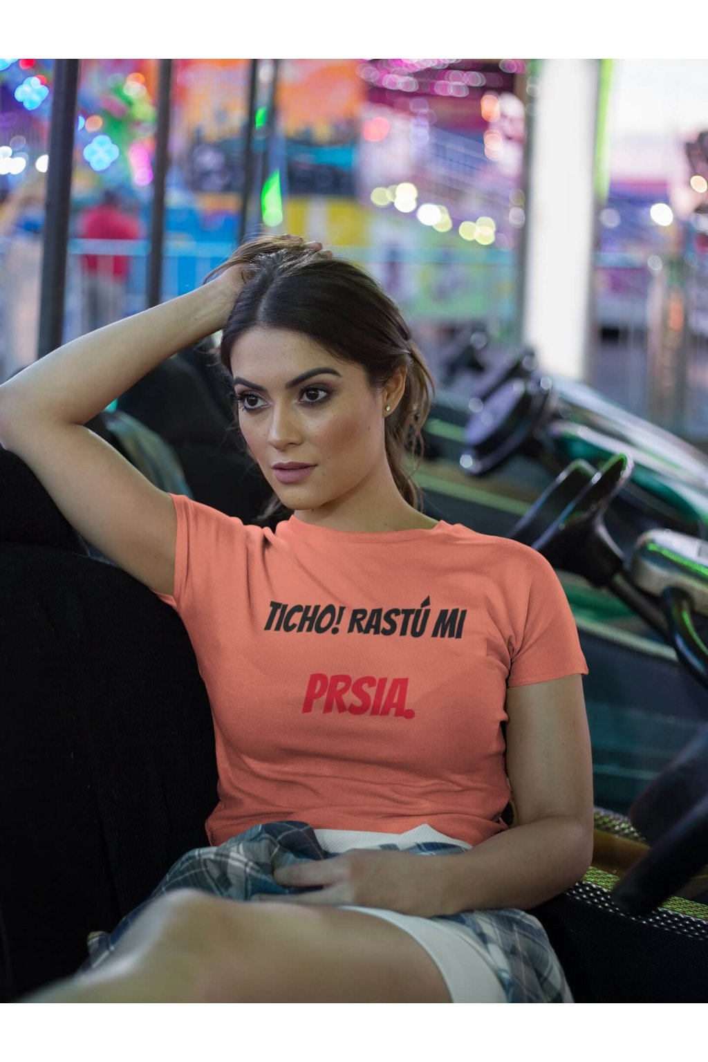 Dámske bavlnené tričko s krátkym rukávom a vtipnou potlačou. Na tričku je originálny nápis: ,,TICHO! RASTÚ MI PRSIA."