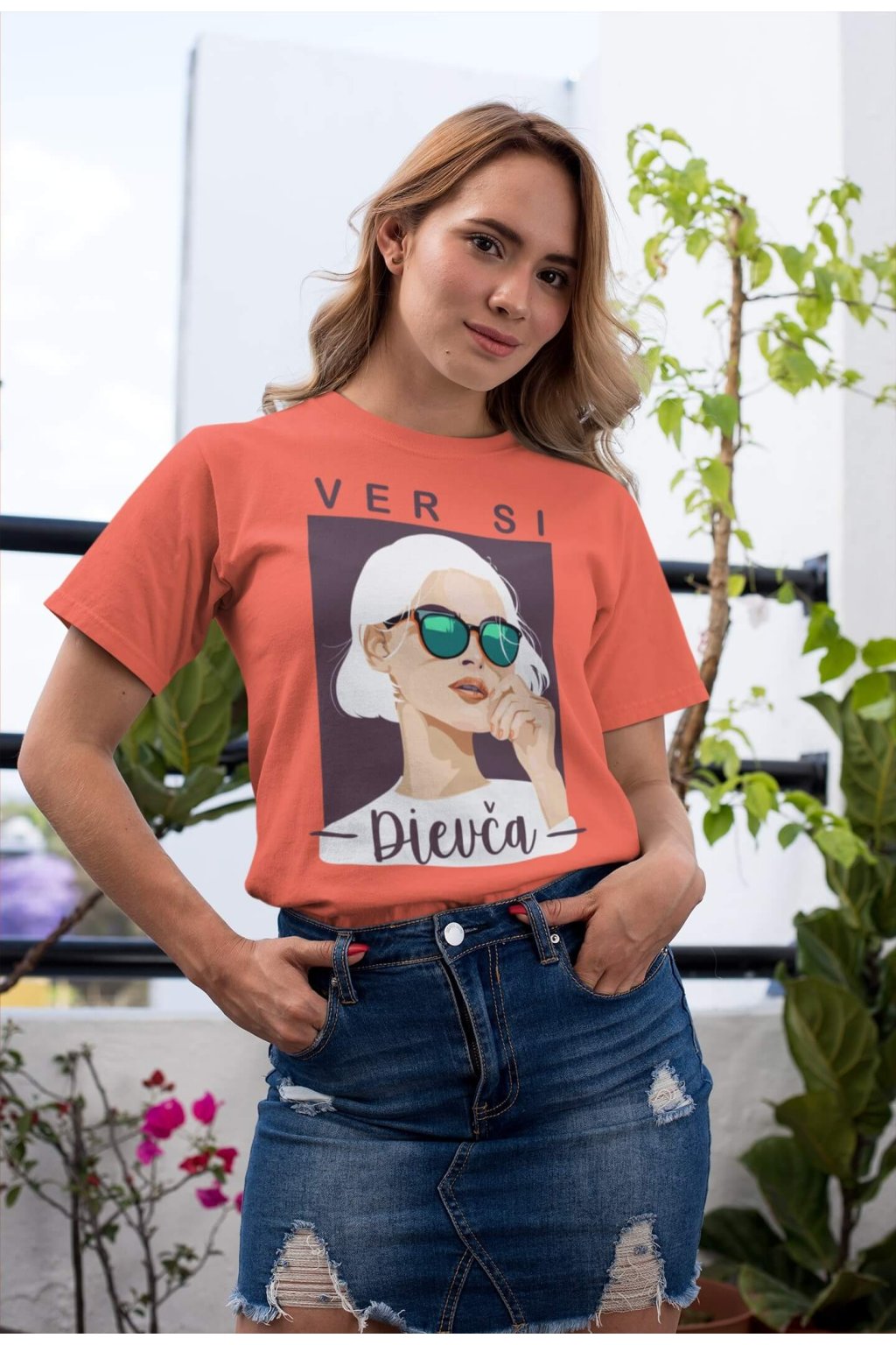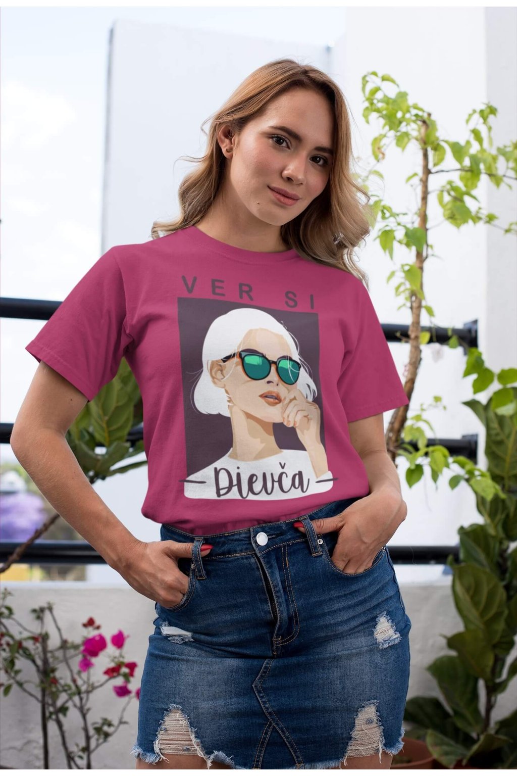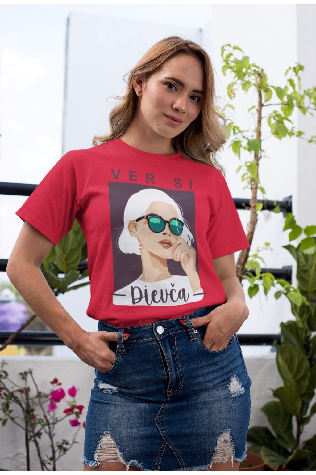 Dámske bavlnené tričko s krátkym rukávom s portrétom ženy a nápisom "VER SI Dievča," ktoré poteší každú ambicióznu a cieľavedomú ženu.