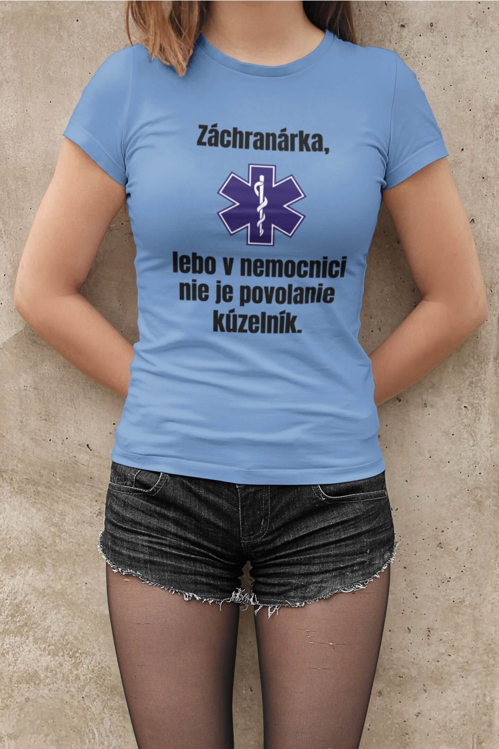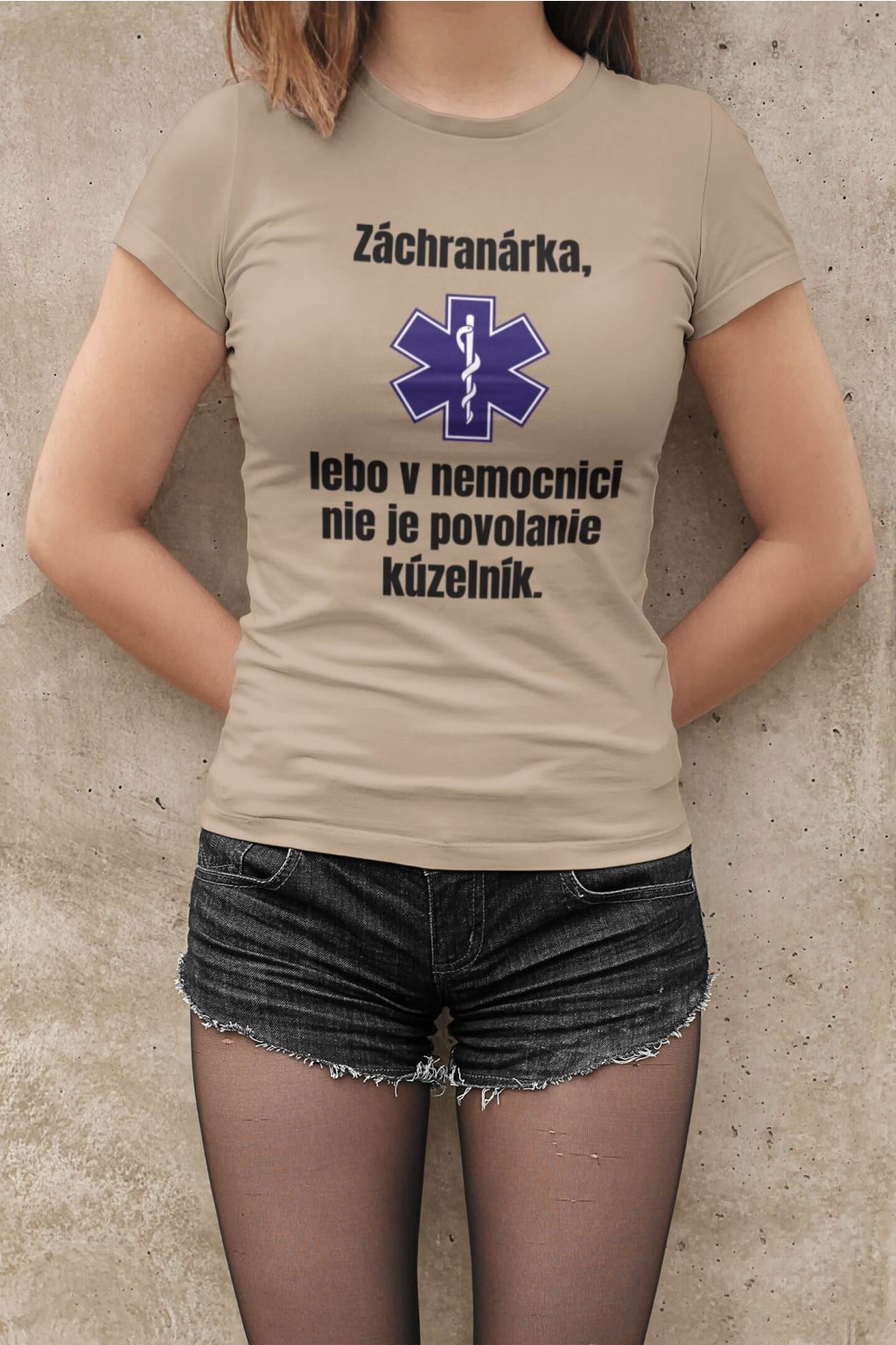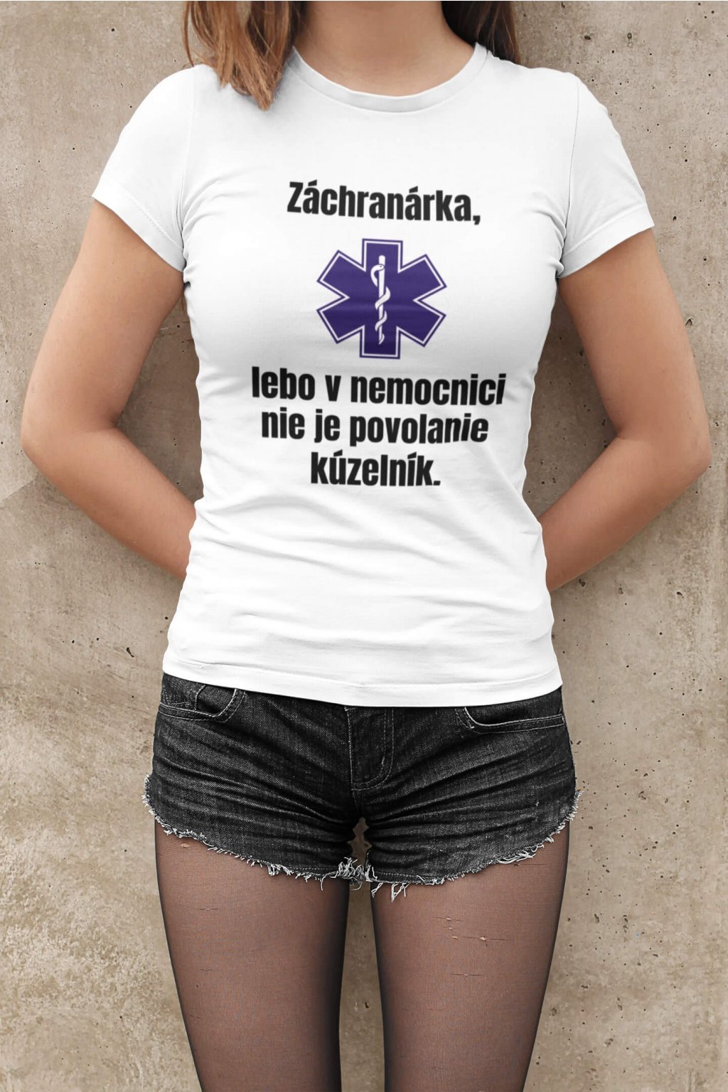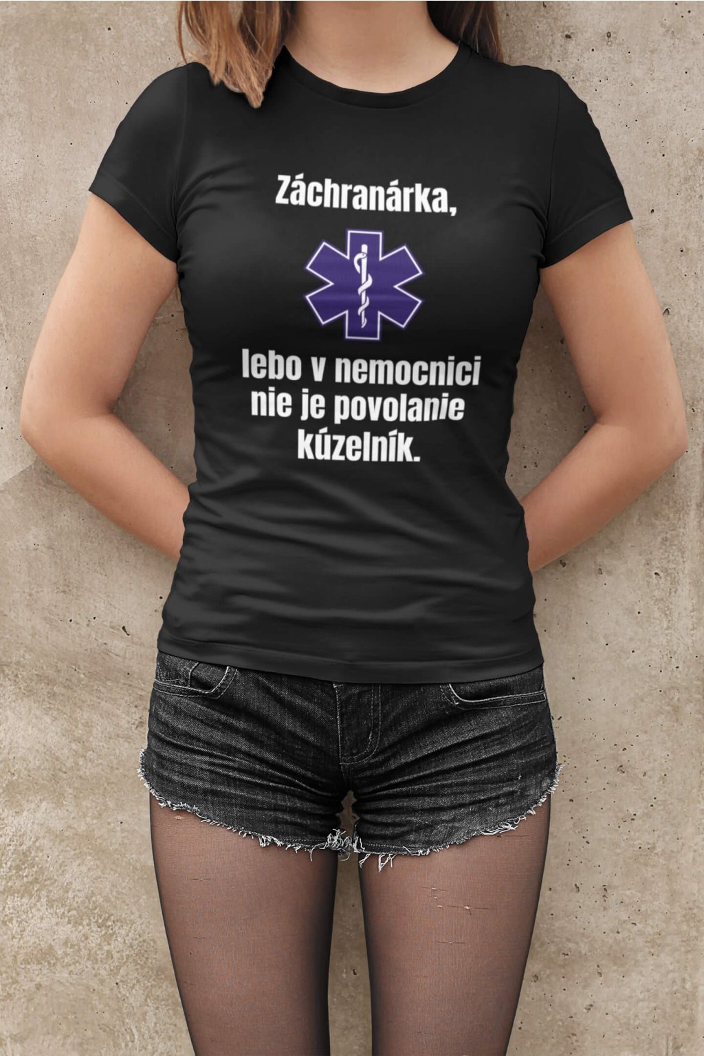 Dámske bavlnené tričko s krátkym rukávom a s úprimným a milým nápisom. Na tričku je nápis: ,,Záchranárka, lebo v nemocnici nie je povolanie kúzelník". Nápis je vhodný ako darček pre záchranárku.