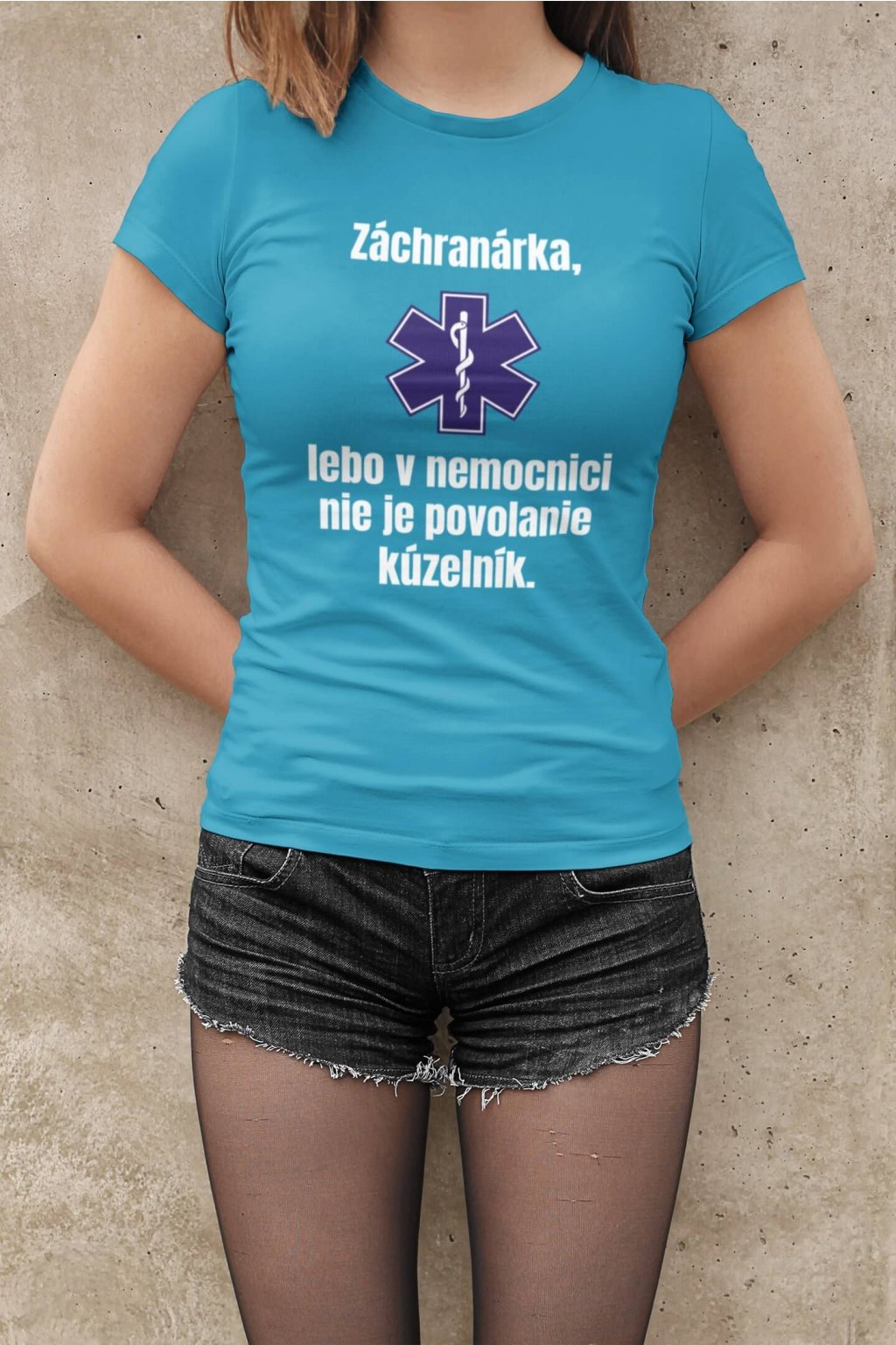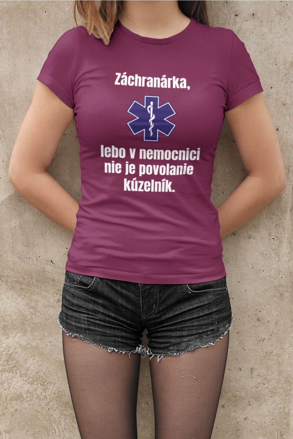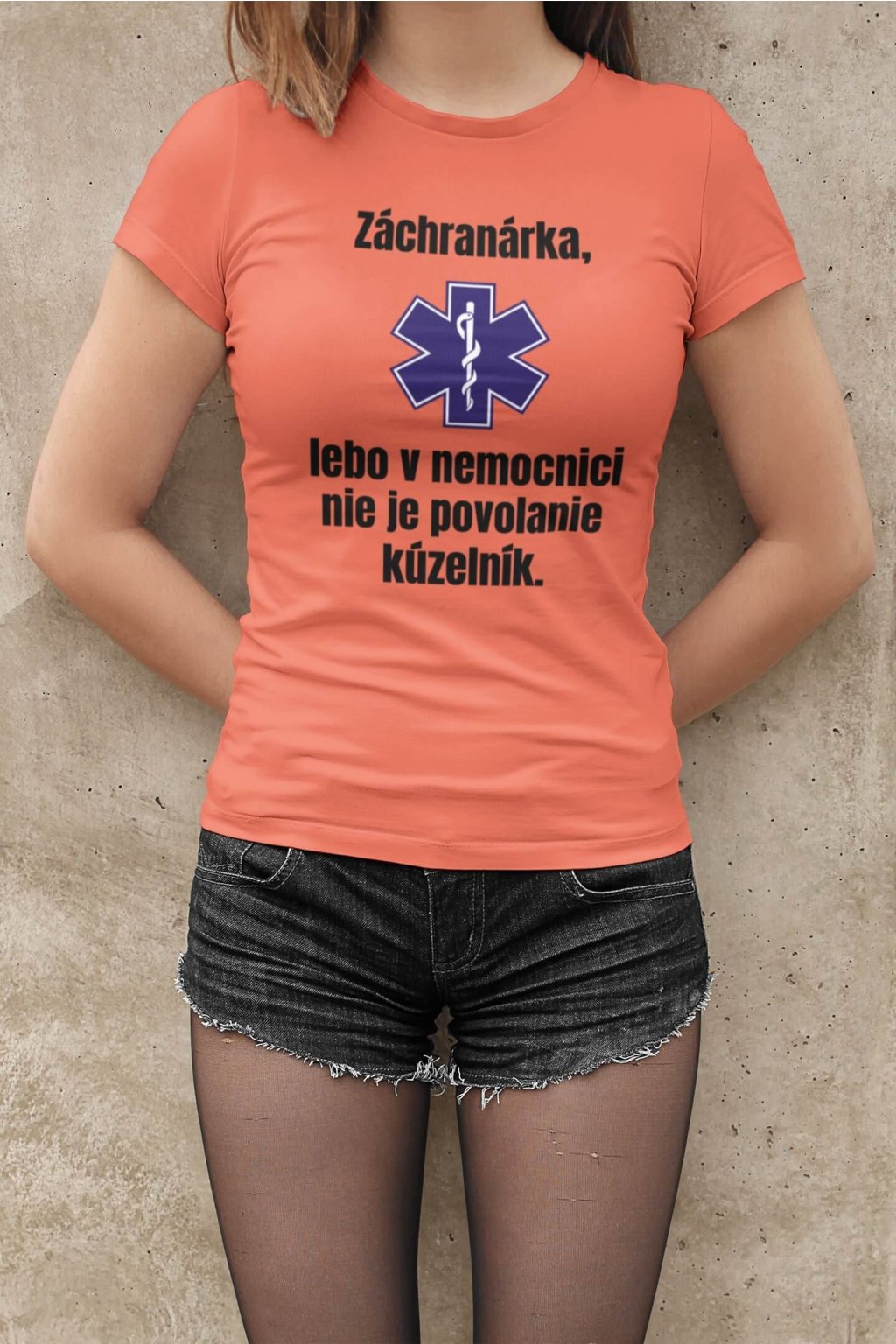 Dámske bavlnené tričko s krátkym rukávom a s úprimným a milým nápisom. Na tričku je nápis: ,,Záchranárka, lebo v nemocnici nie je povolanie kúzelník". Nápis je vhodný ako darček pre záchranárku.