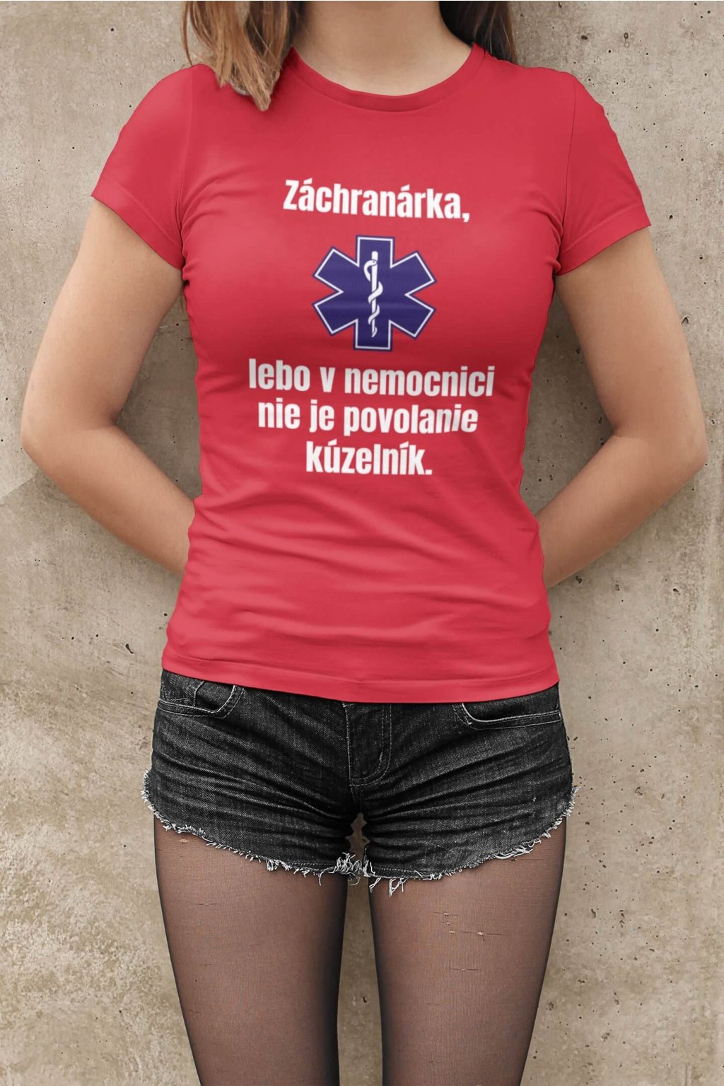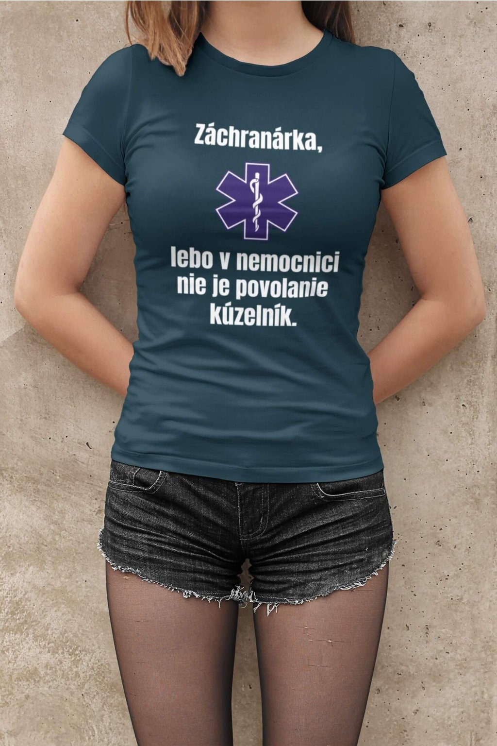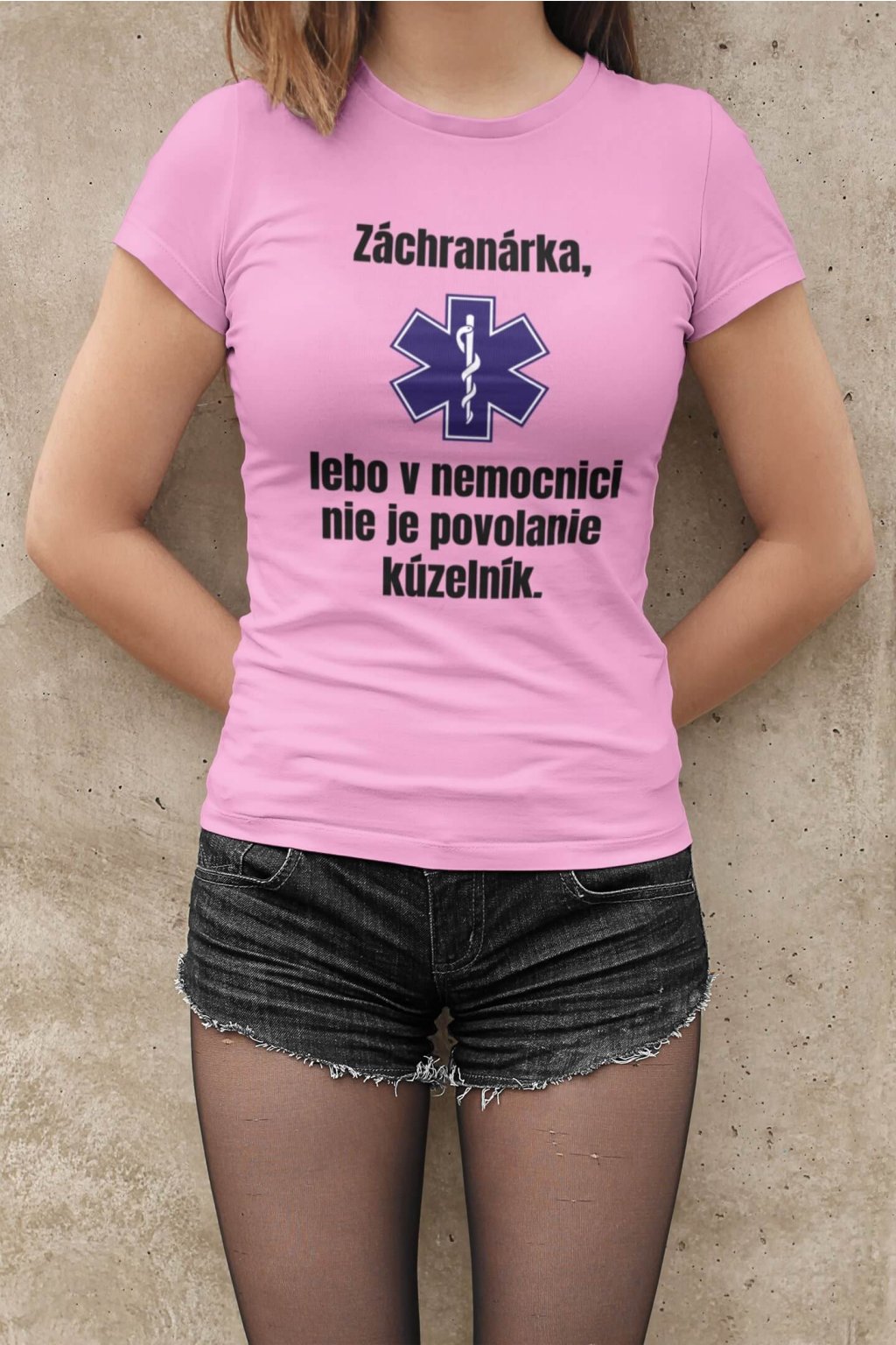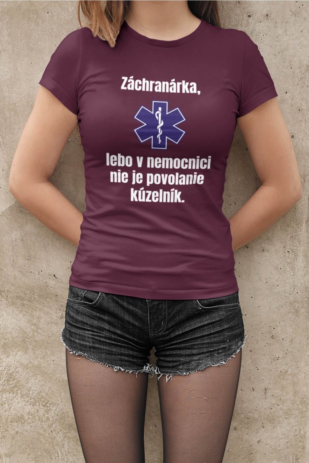 Dámske bavlnené tričko s krátkym rukávom a s úprimným a milým nápisom. Na tričku je nápis: ,,Záchranárka, lebo v nemocnici nie je povolanie kúzelník". Nápis je vhodný ako darček pre záchranárku.