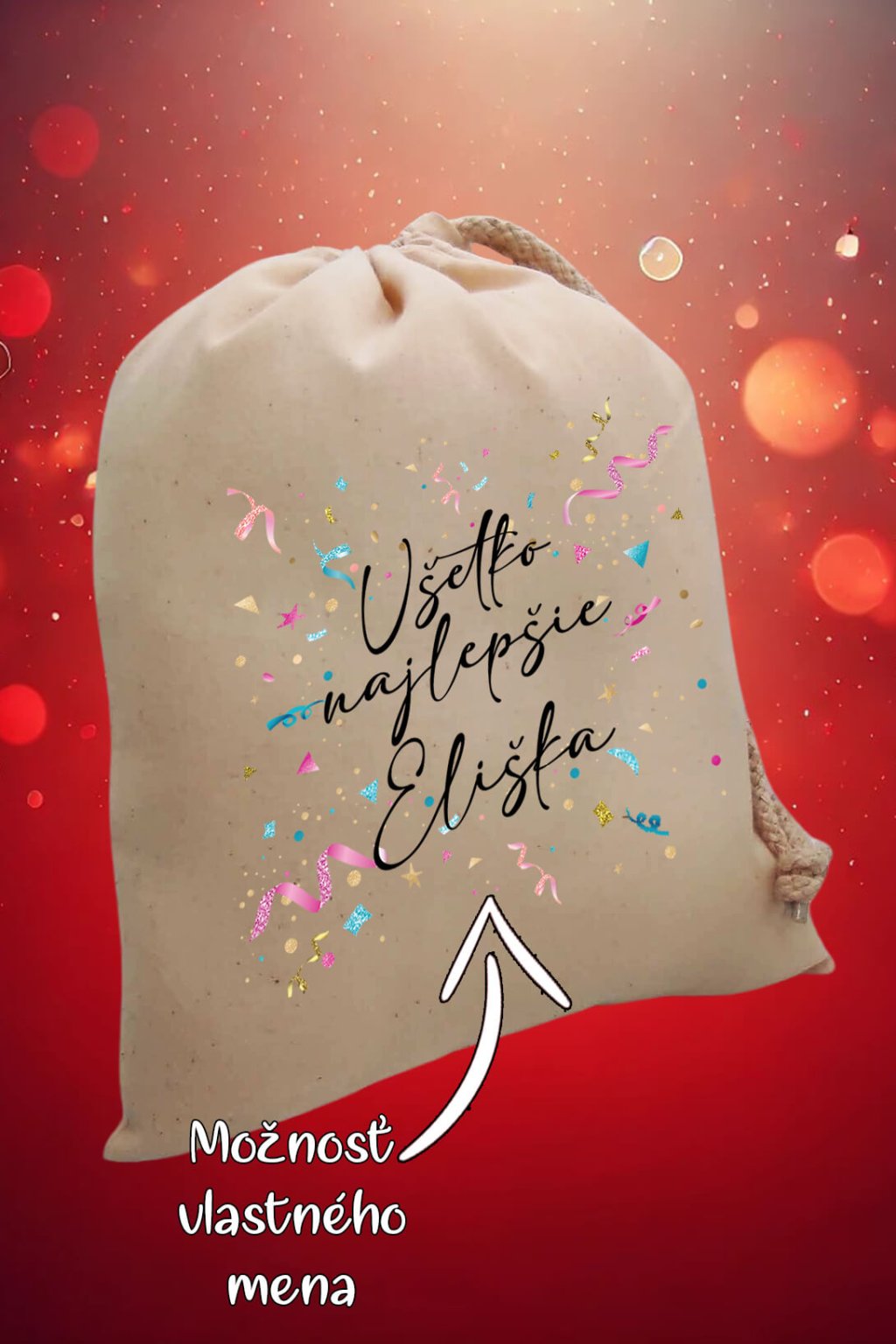 Premeňte každý dar na niečo výnimočné s naším elegantným darčekovým vreckom. Toto praktické a štýlové balenie je vyrobené zo 100% bavlny (140 g/m²), vďaka čomu je odolné, znovu použiteľné a šetrné k prírode.
