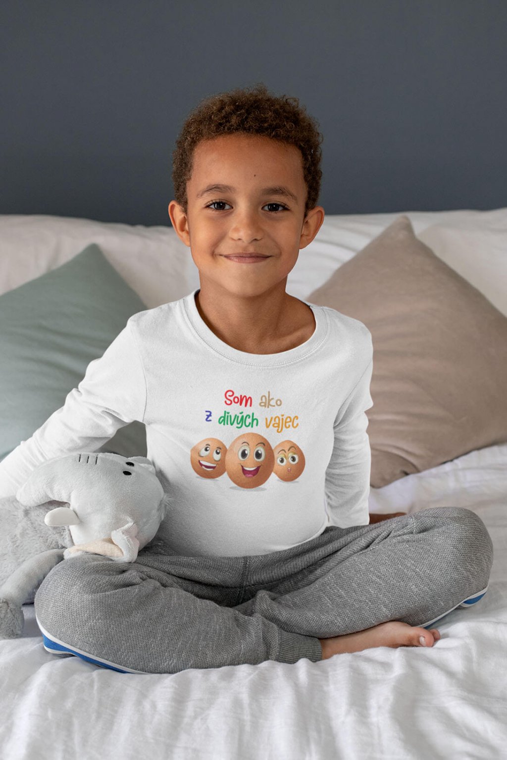 Vtipné bavlnené detské tričko s nápisom "Som ako z divých vajec" a obrázkom vajec.