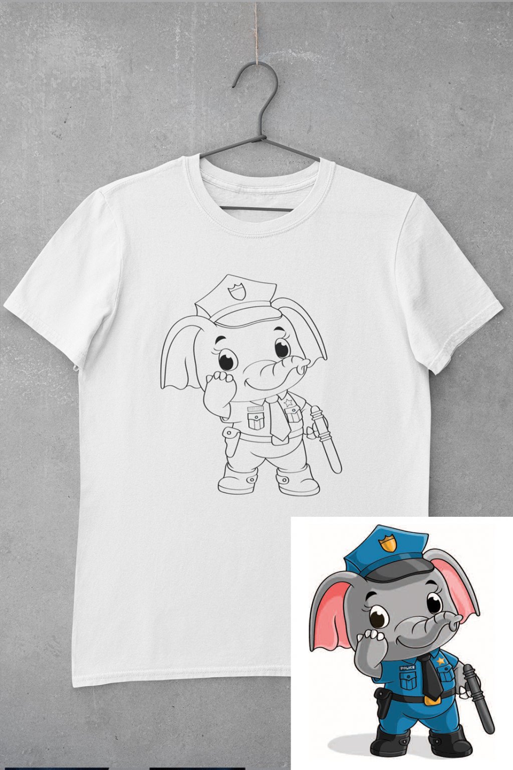 Detské bavlnené tričko s krátkym rukávom, na ktorom je motív slona ako policajta, ktorý si môžete vyfarbiť. Rozvíjajte kreativitu a hravosť svojich ratolestí zaujímavým spôsobom.