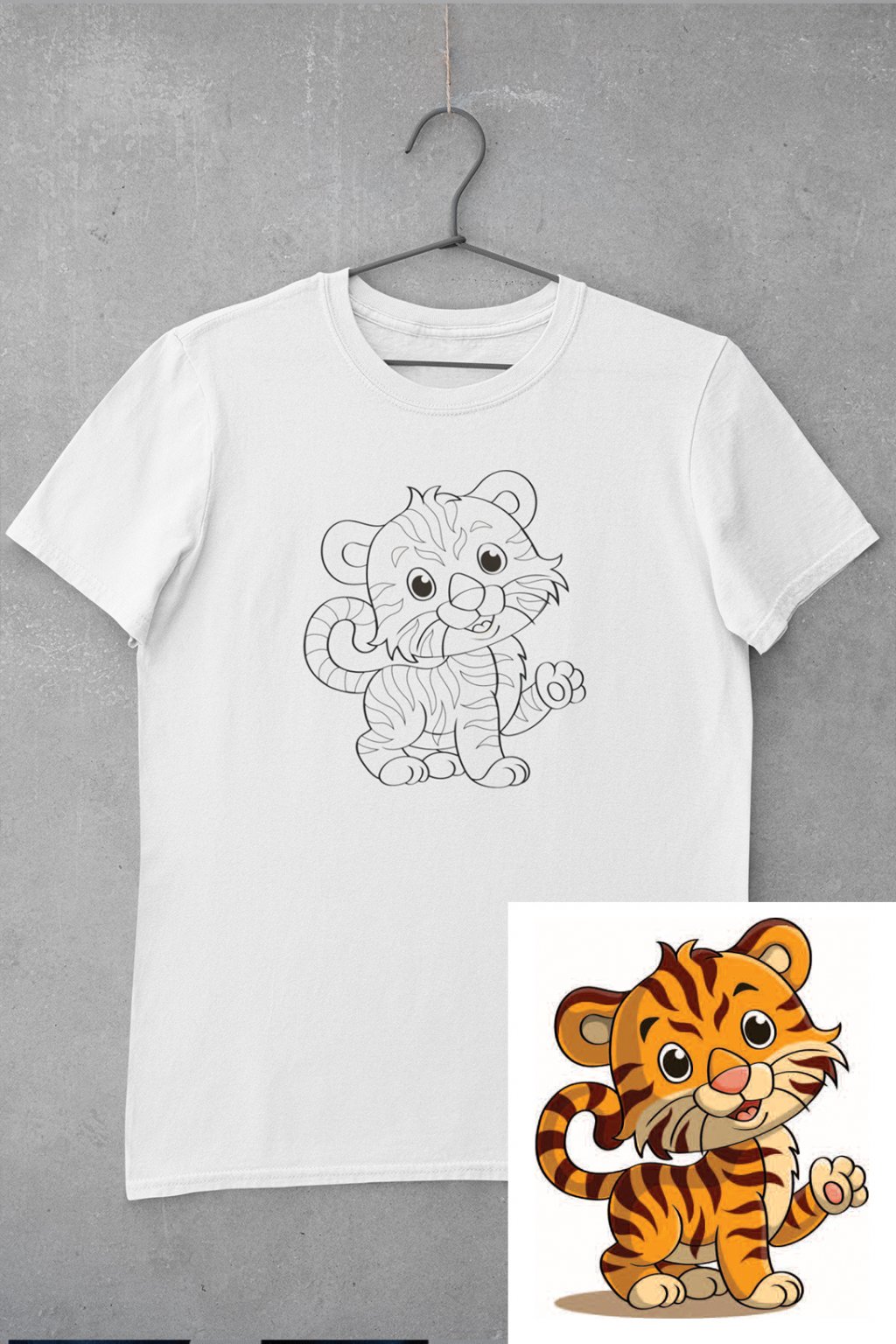Detské bavlnené tričko s krátkym rukávom, na ktorom je motív roztomilého tigra, ktorý si môžete vyfarbiť. Rozvíjajte kreativitu a hravosť svojich ratolestí zaujímavým spôsobom.