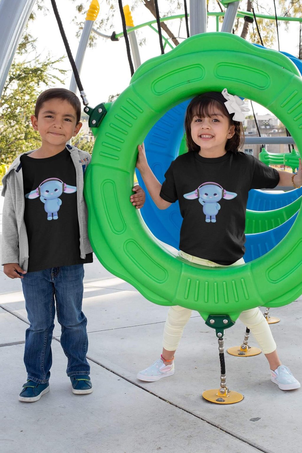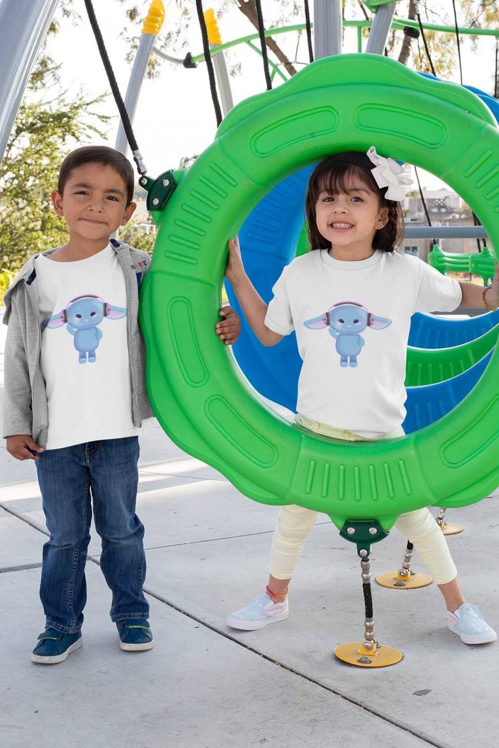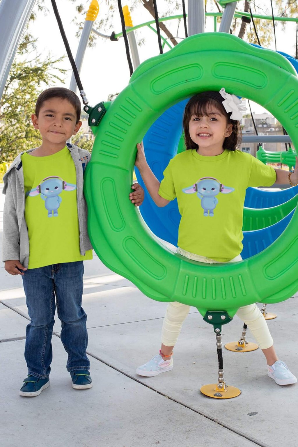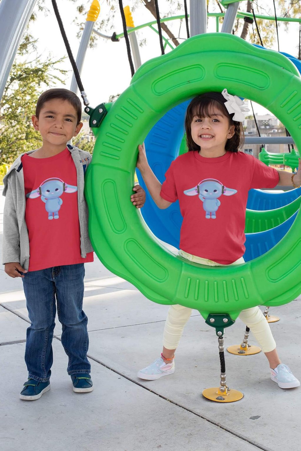 Detské bavlnené tričko s fantasy zajačikom, ktorý má na hlave slúchadlá.