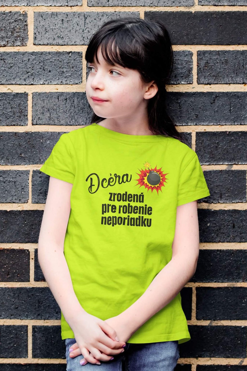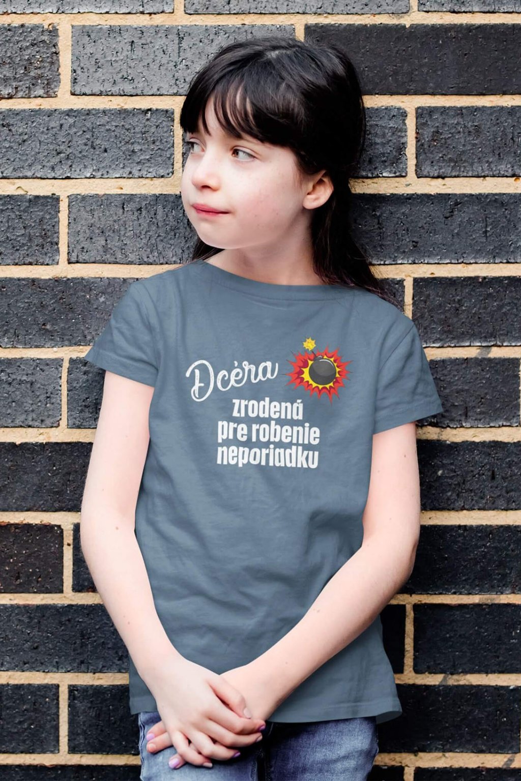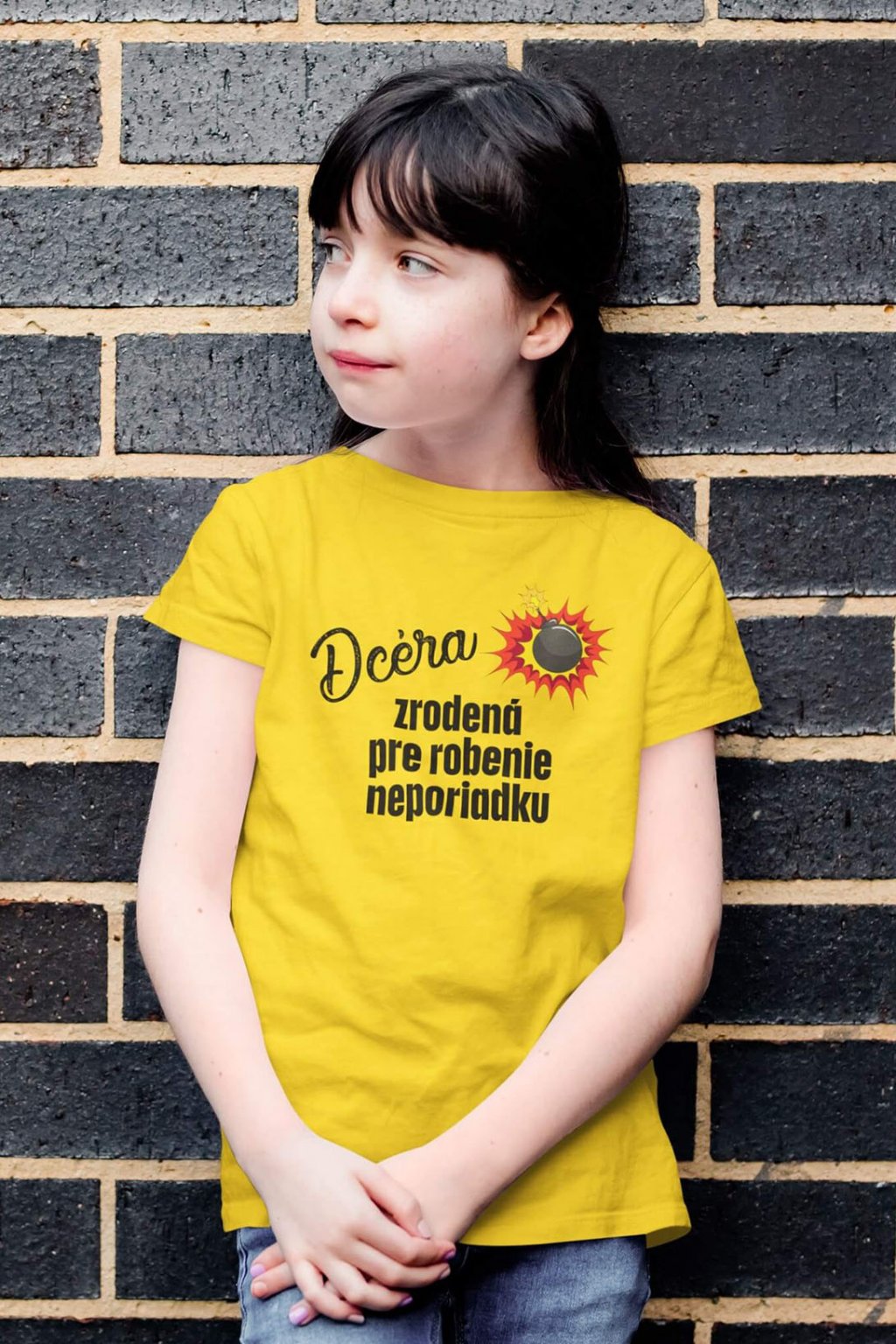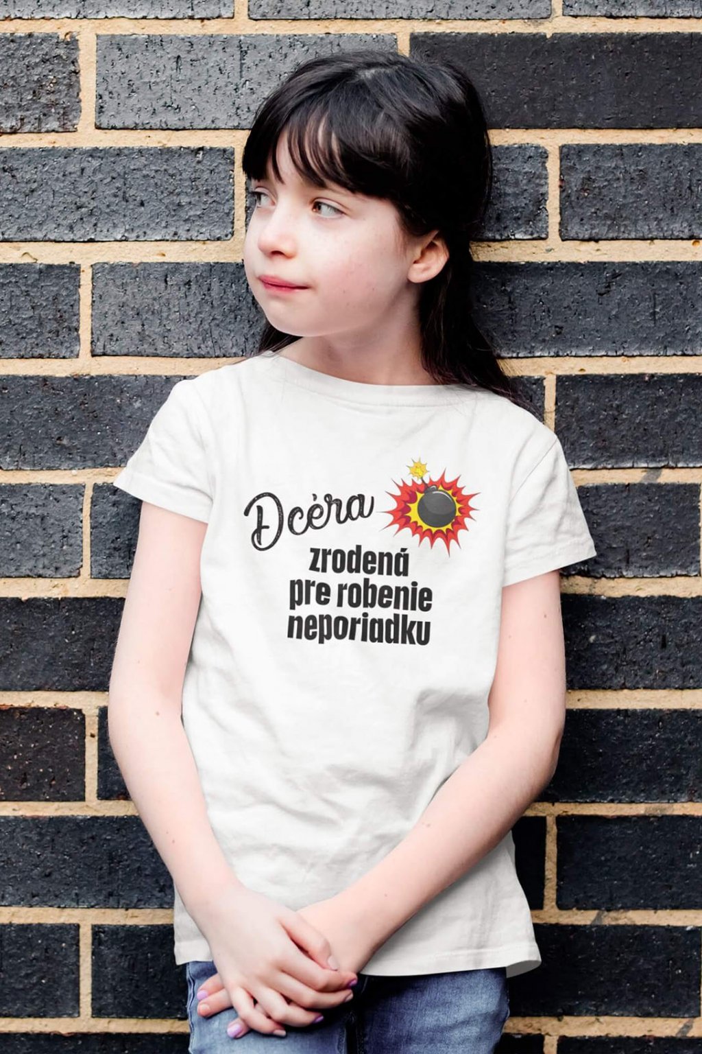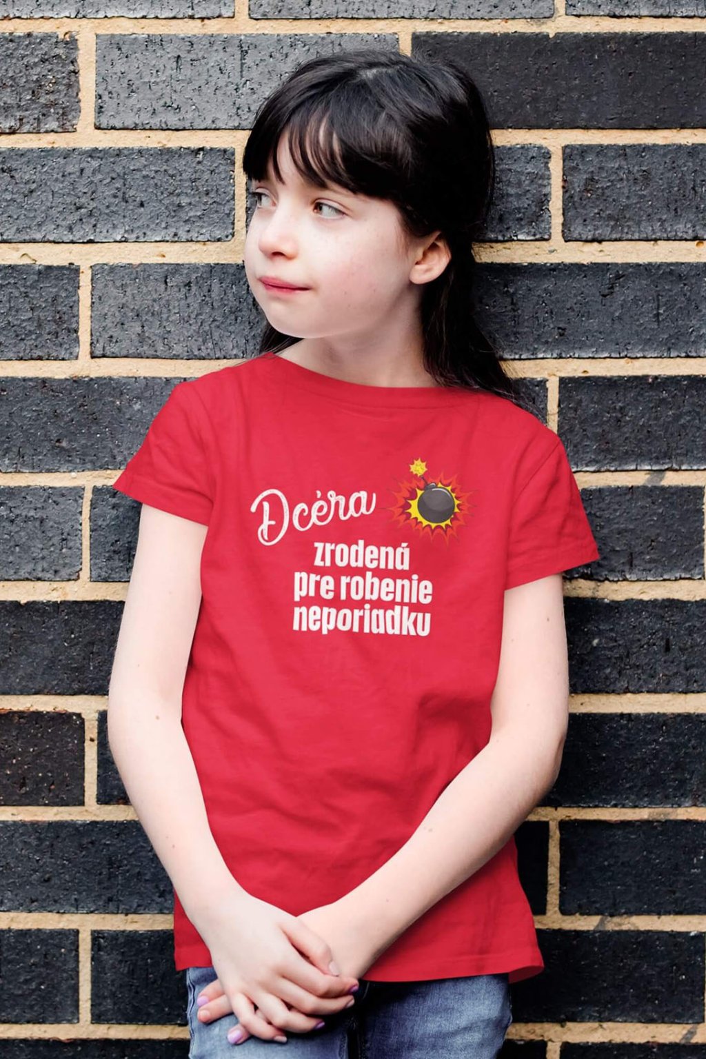 Dievčenské bavlnené tričko s nápisom "dcéra" a obrázkom búchajúcej bomby. Pod tým je definícia slova dcéra vo vtipnej verzií.