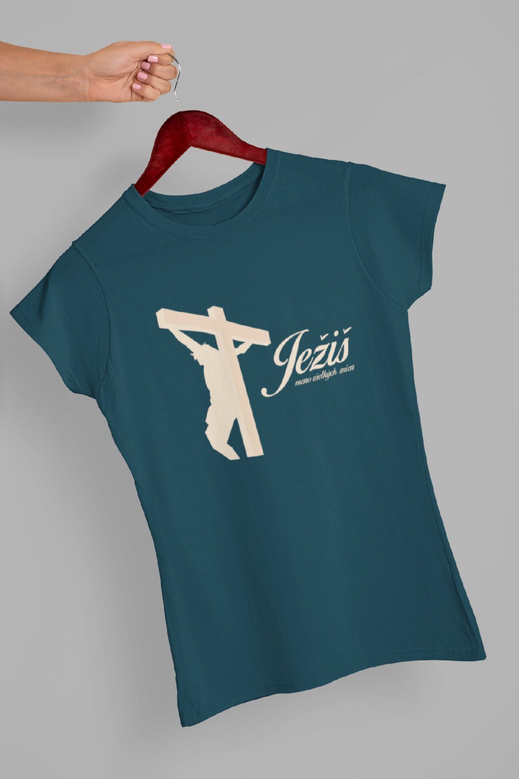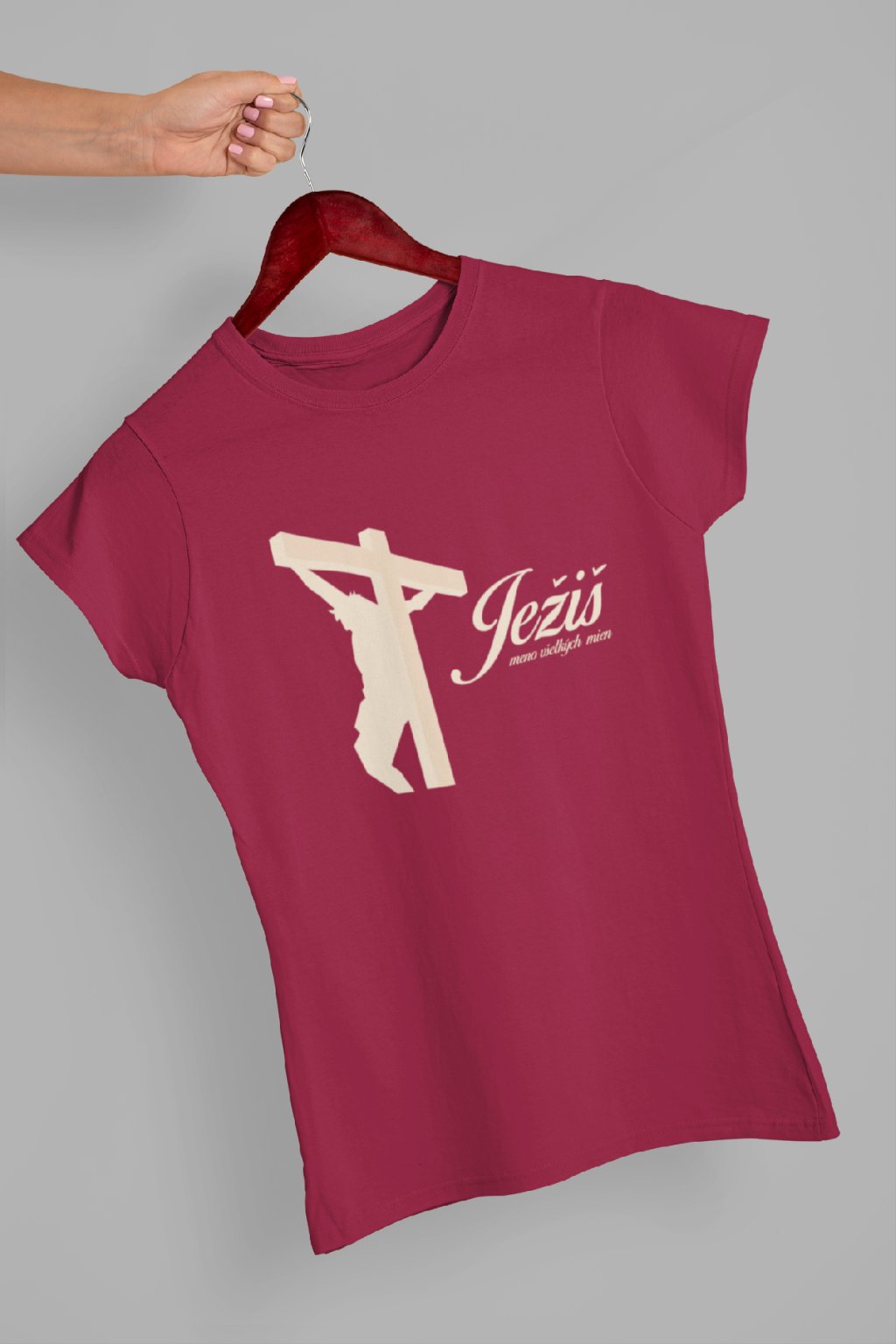 Kresťanské bavlnené tričko s obrázkom Ježiša a nápisom "Ježiš meno všetkých mien". Tričko poteší každého kresťana!