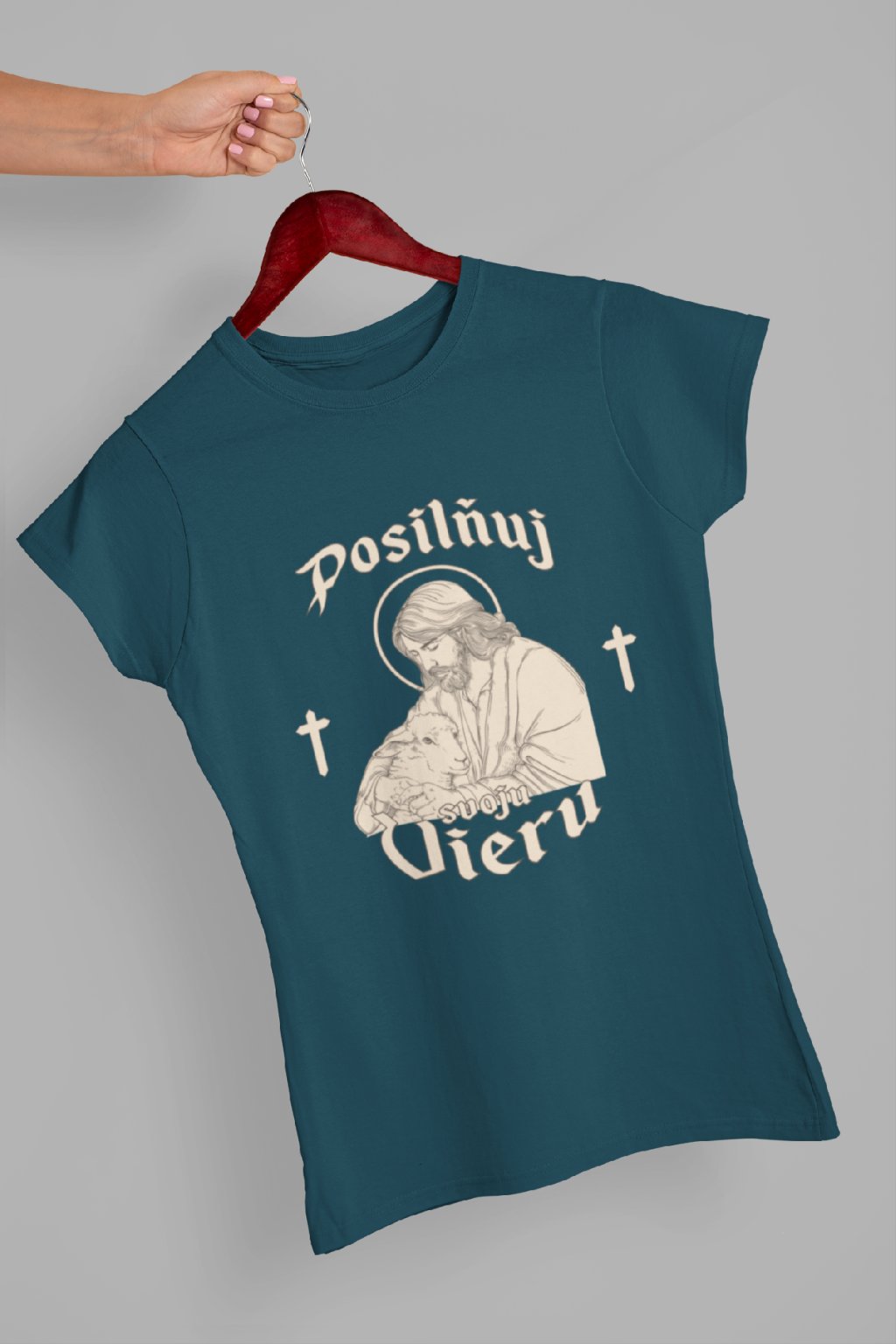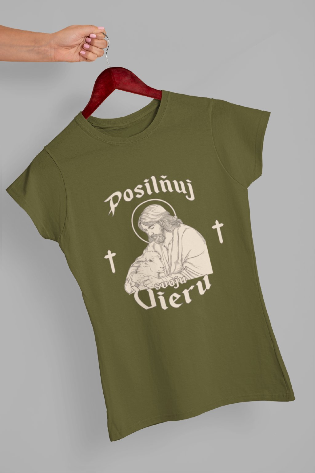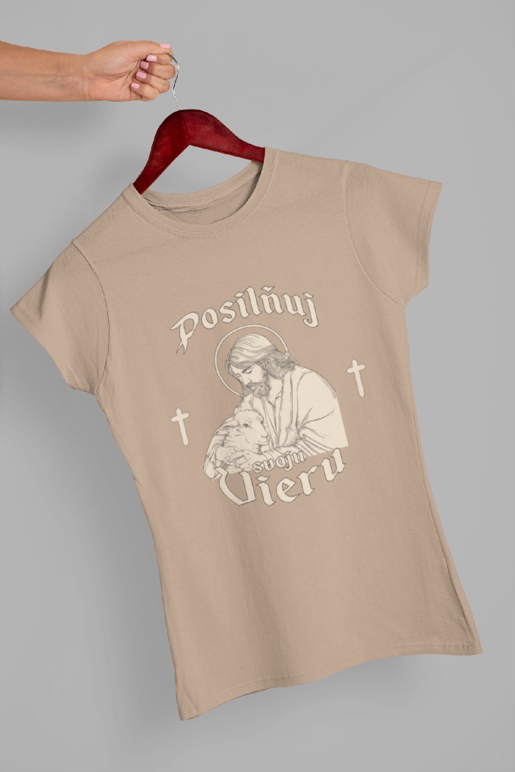 Kresťanské bavlnené tričko s obrázkom Ježiša a nápisom "Posilňuj svoju vieru". Tričko poteší každého kresťana!