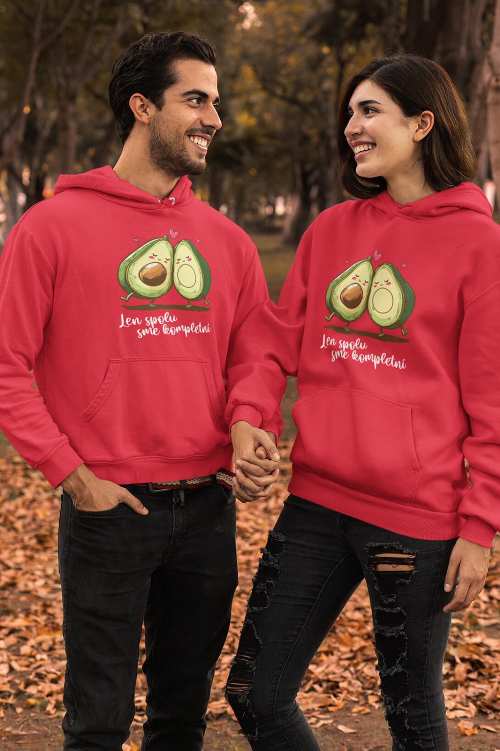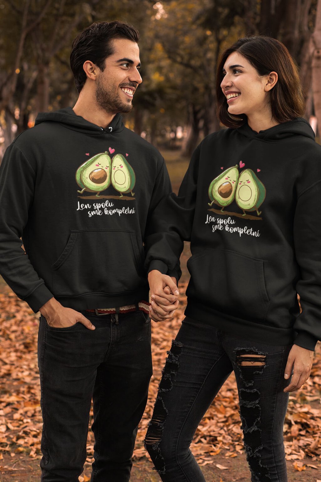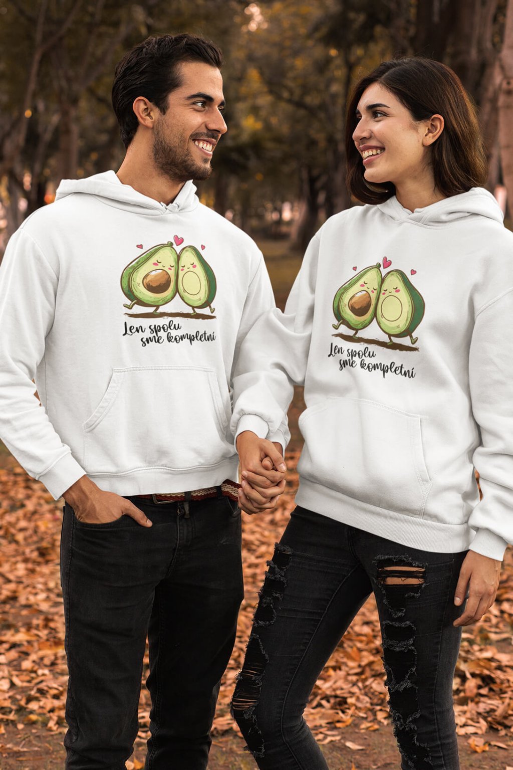 Bavlnené mikiny pre páry s originálnou potlačou. Na mikinách je nápis "Len spolu sme kompletní" a obrázok avokáda. Mikiny, ktoré sa vzájomne dopĺňajú potešia všetkých zamilovaných.
