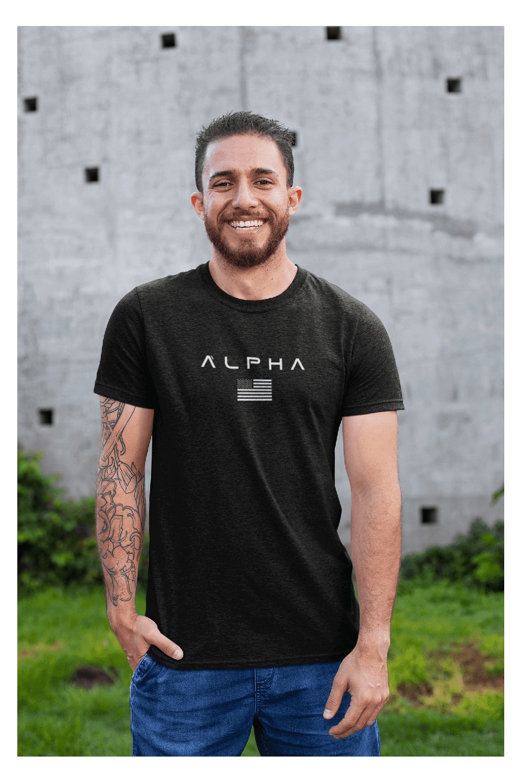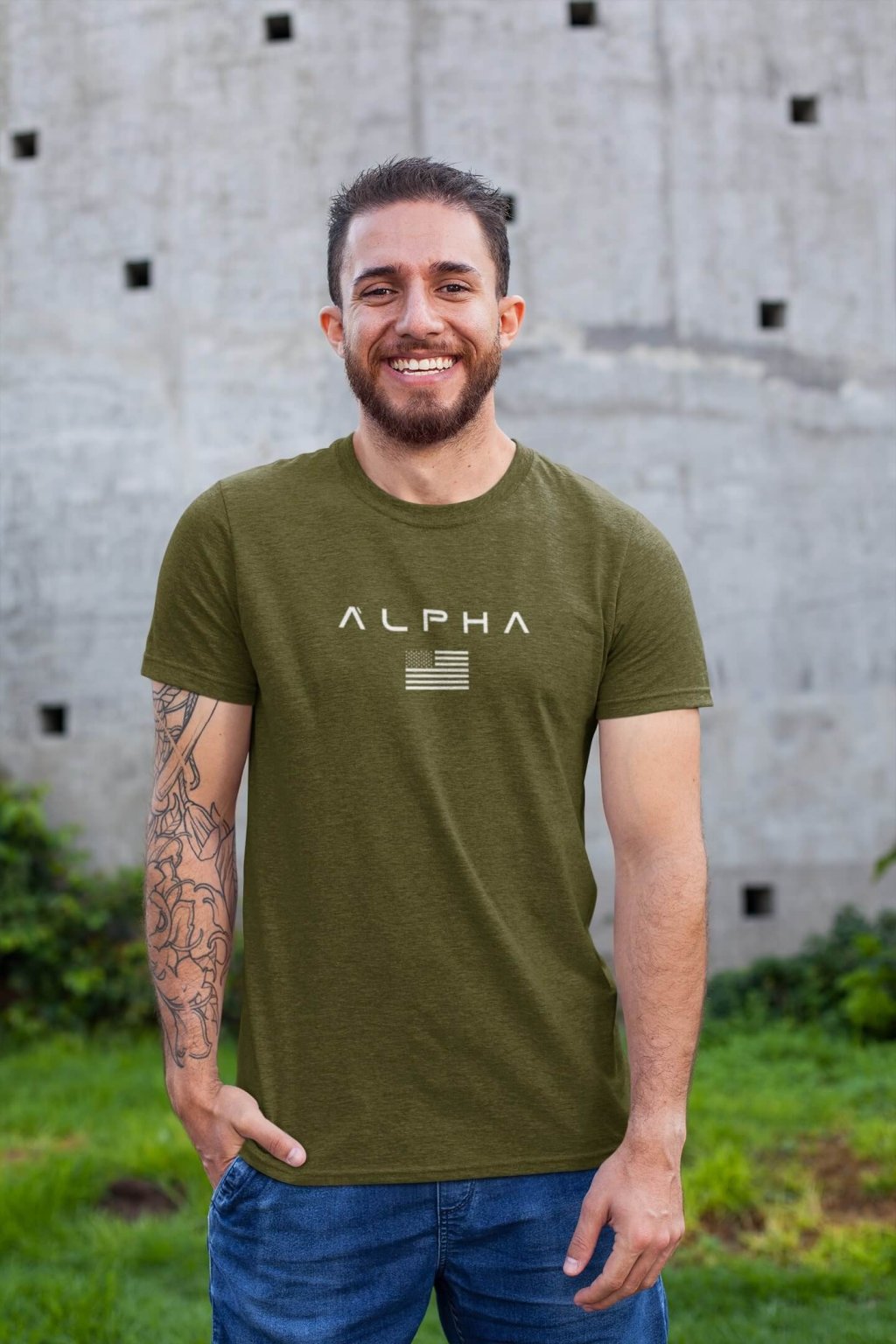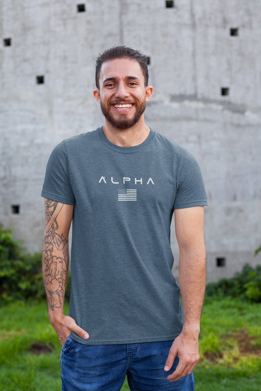 Pánske bavlnené tričko s krátkym rukávom a so štýlovou potlačou ALPHA.
