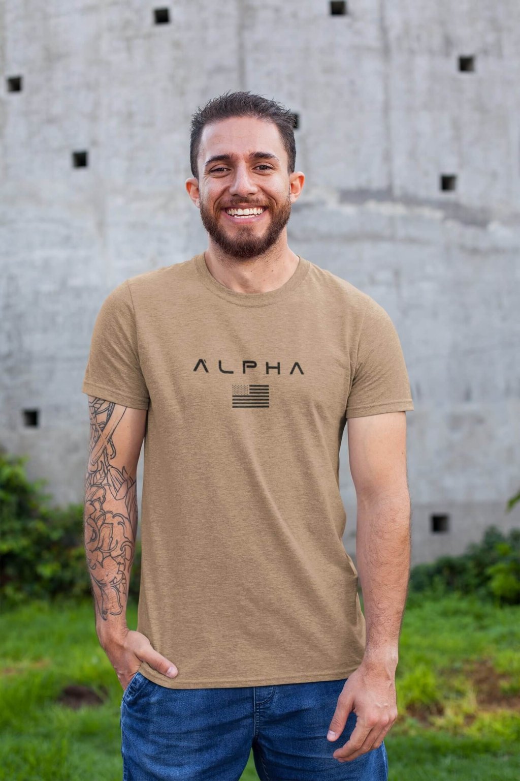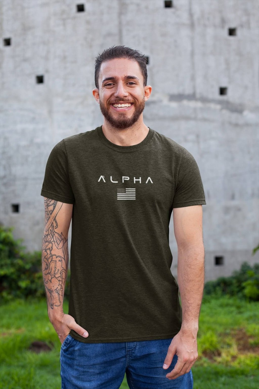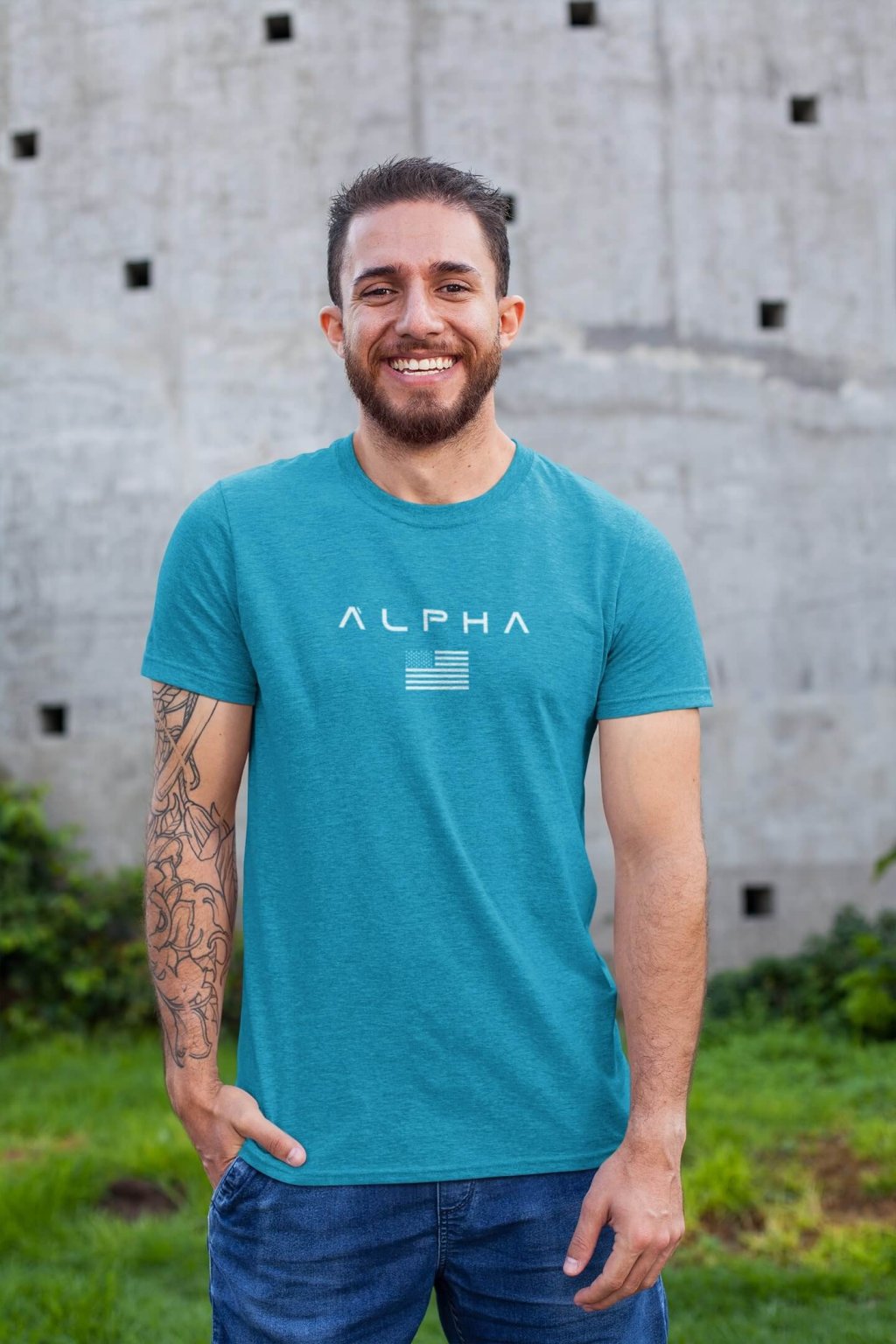 Pánske bavlnené tričko s krátkym rukávom a so štýlovou potlačou ALPHA.