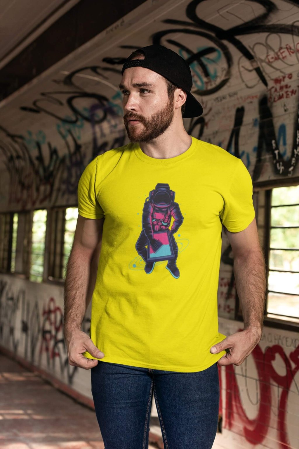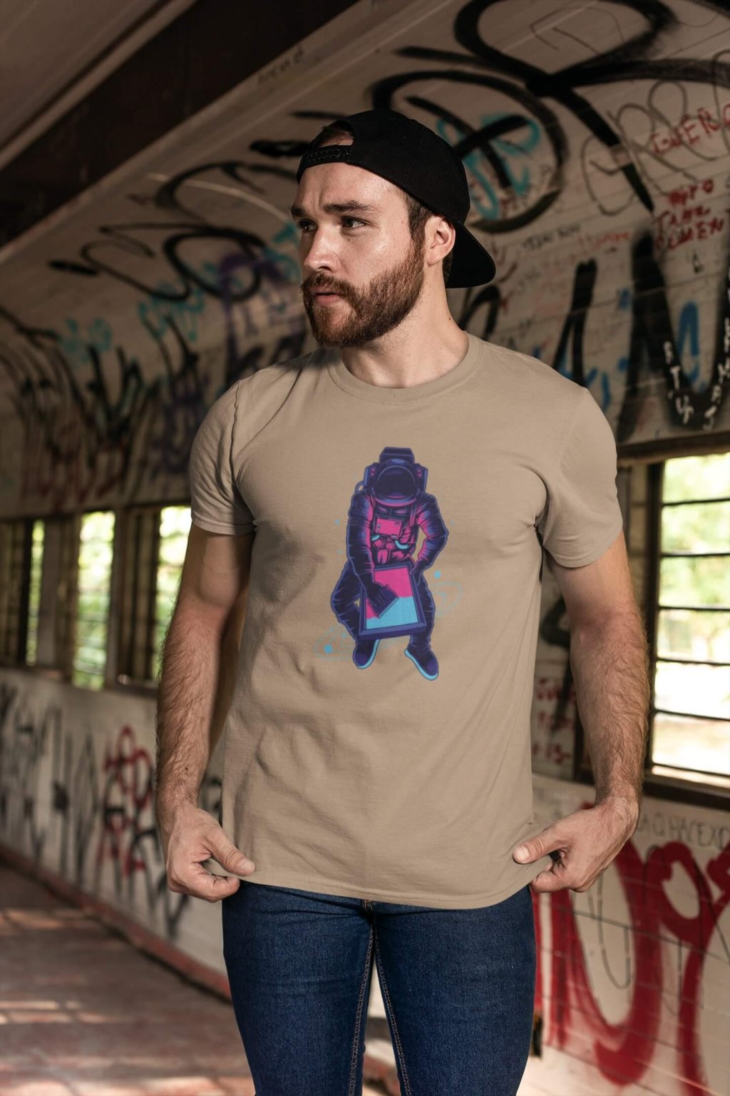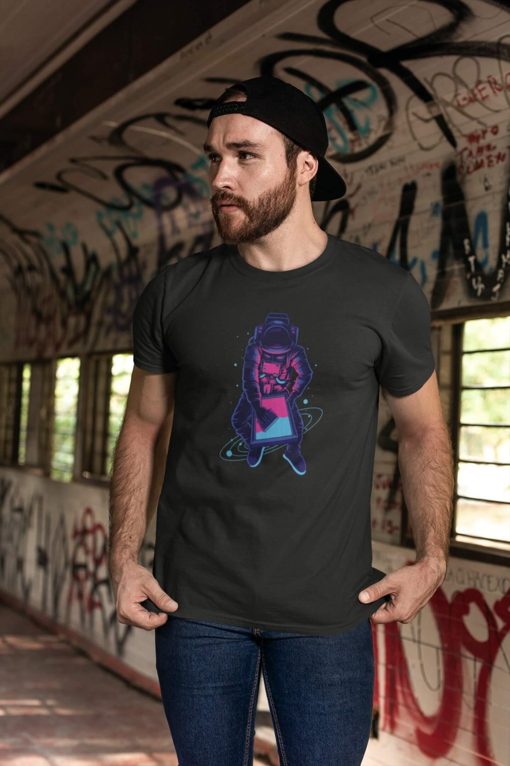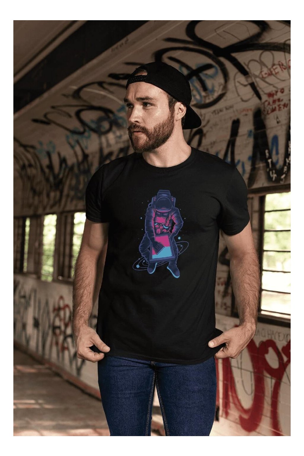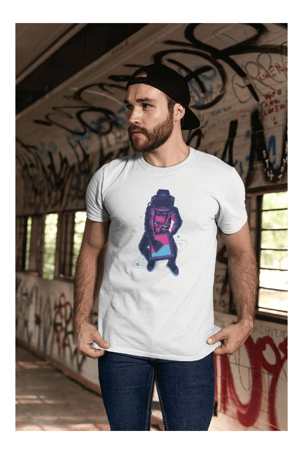Pánske bavlnené tričko s krátkym rukávom a štýlovou potlačou. Tričko s obrázkom zaujímavého astronauta.