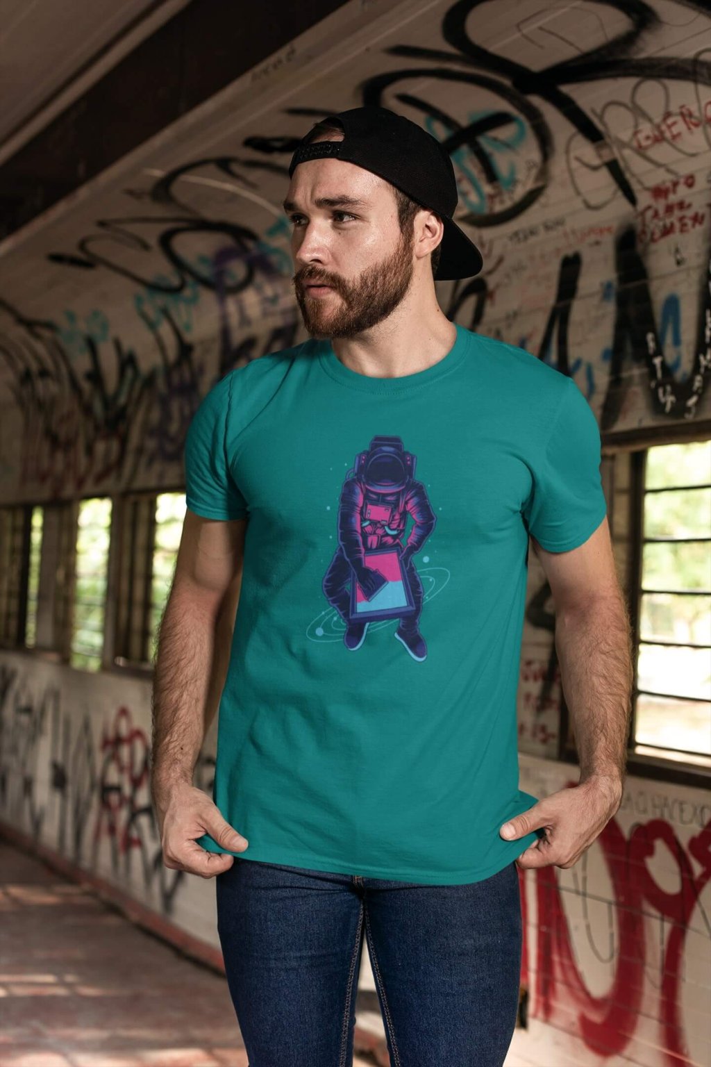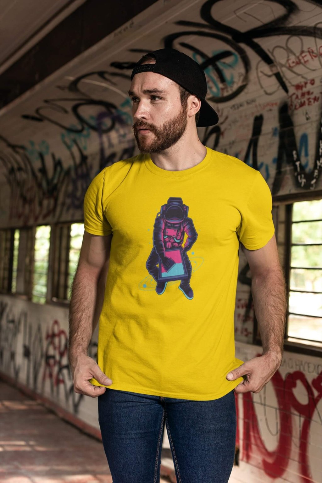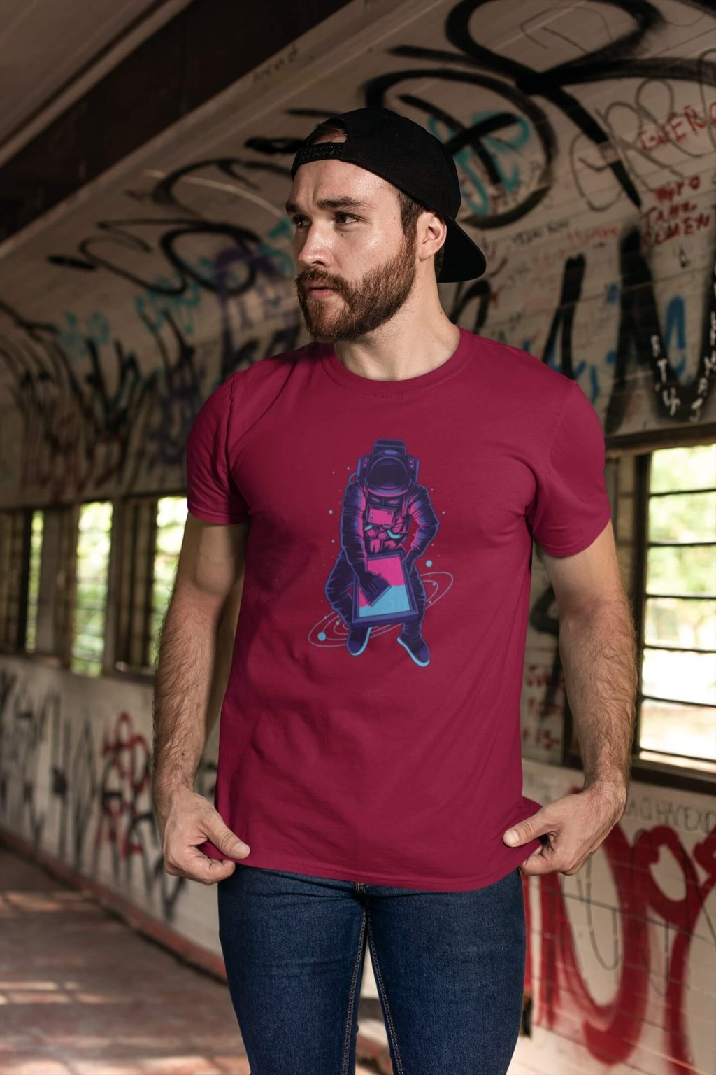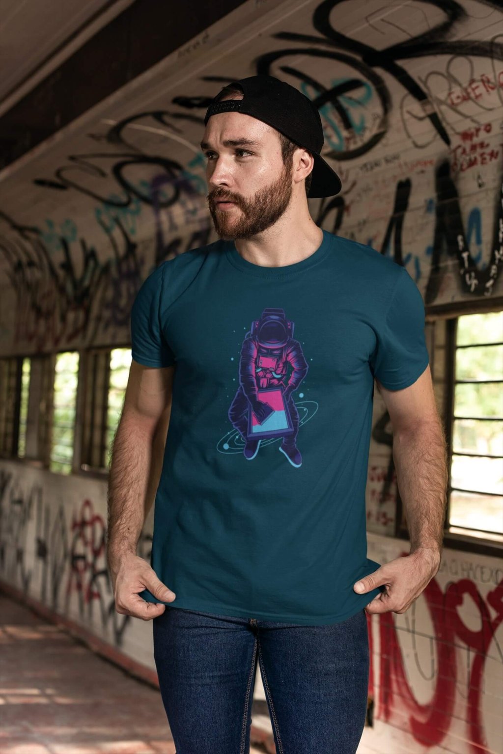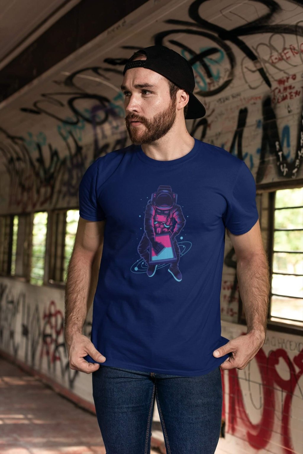 Pánske bavlnené tričko s krátkym rukávom a štýlovou potlačou. Tričko s obrázkom zaujímavého astronauta.