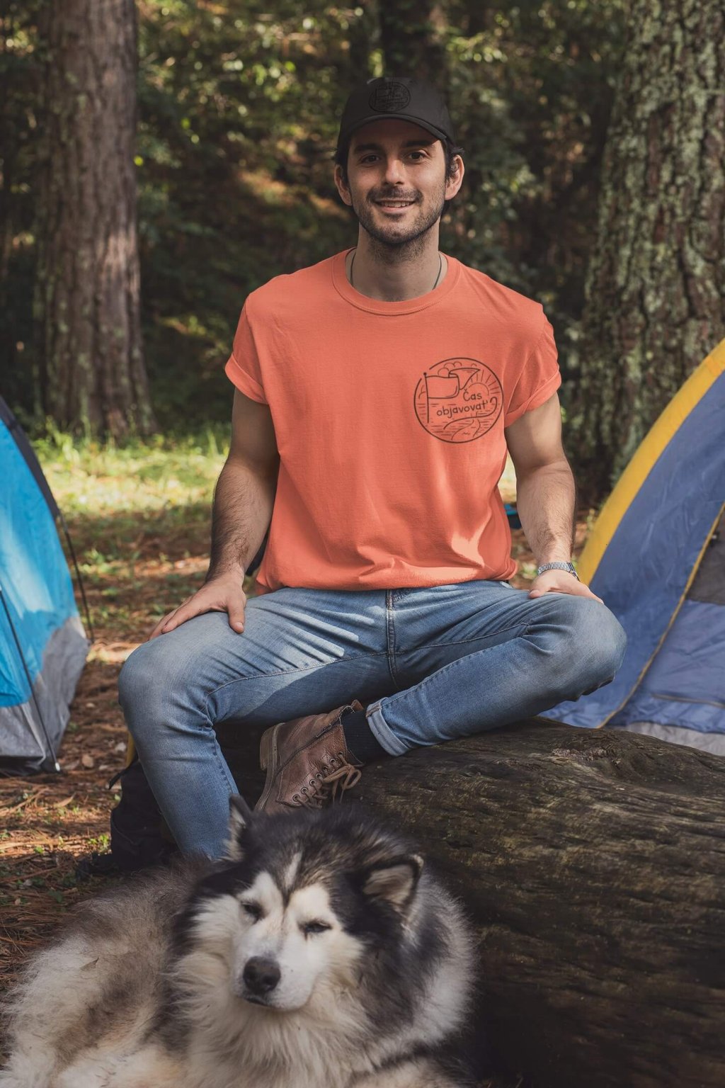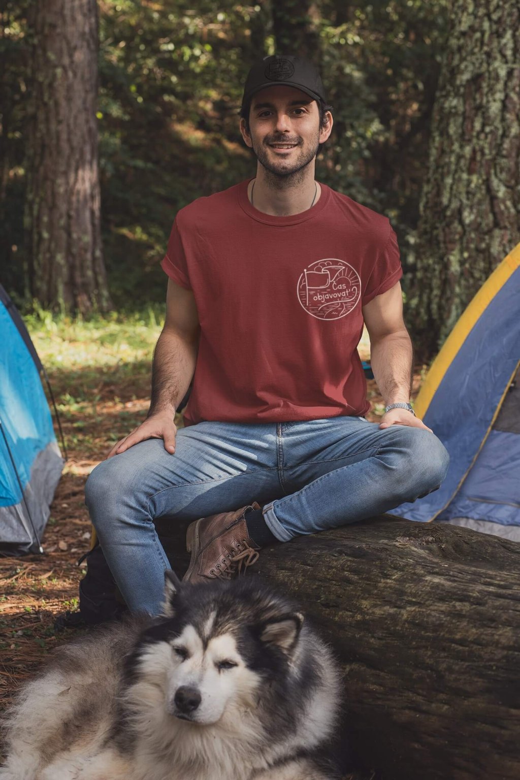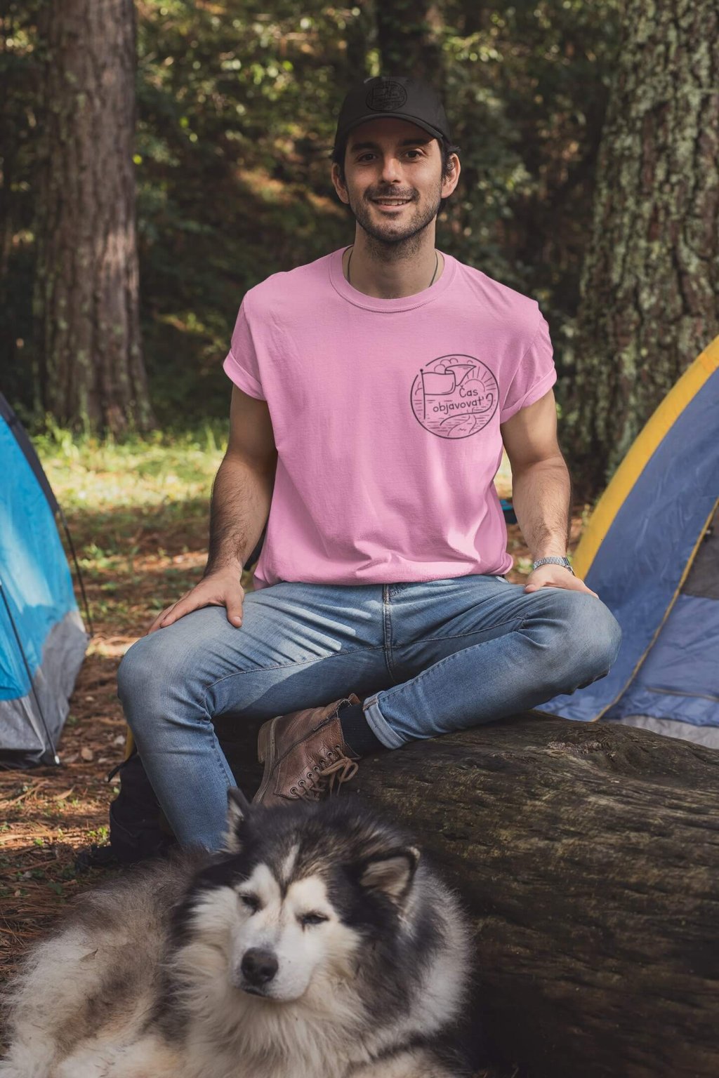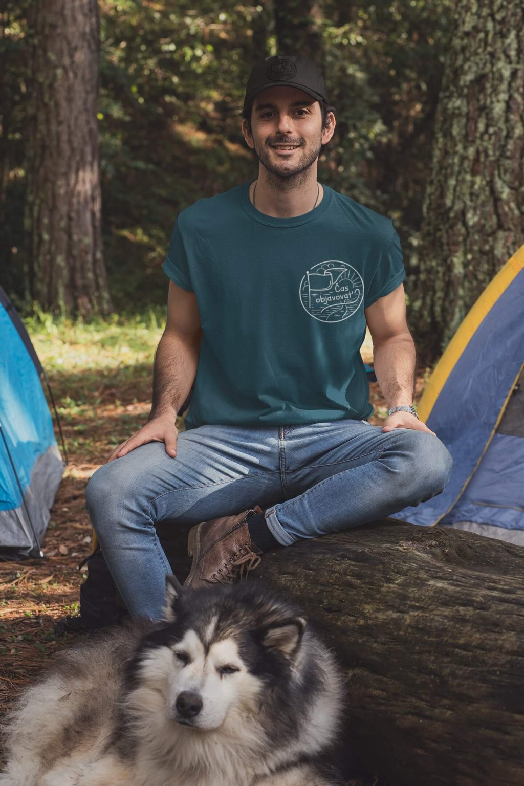 Pánske bavlnené tričko s krátkym rukávom a turistickou potlačou. Na tričku je obrázok s motívom prírody a nápisom: ,,Čas objavovať." Tričko ideálne pre vášnivého turistu.