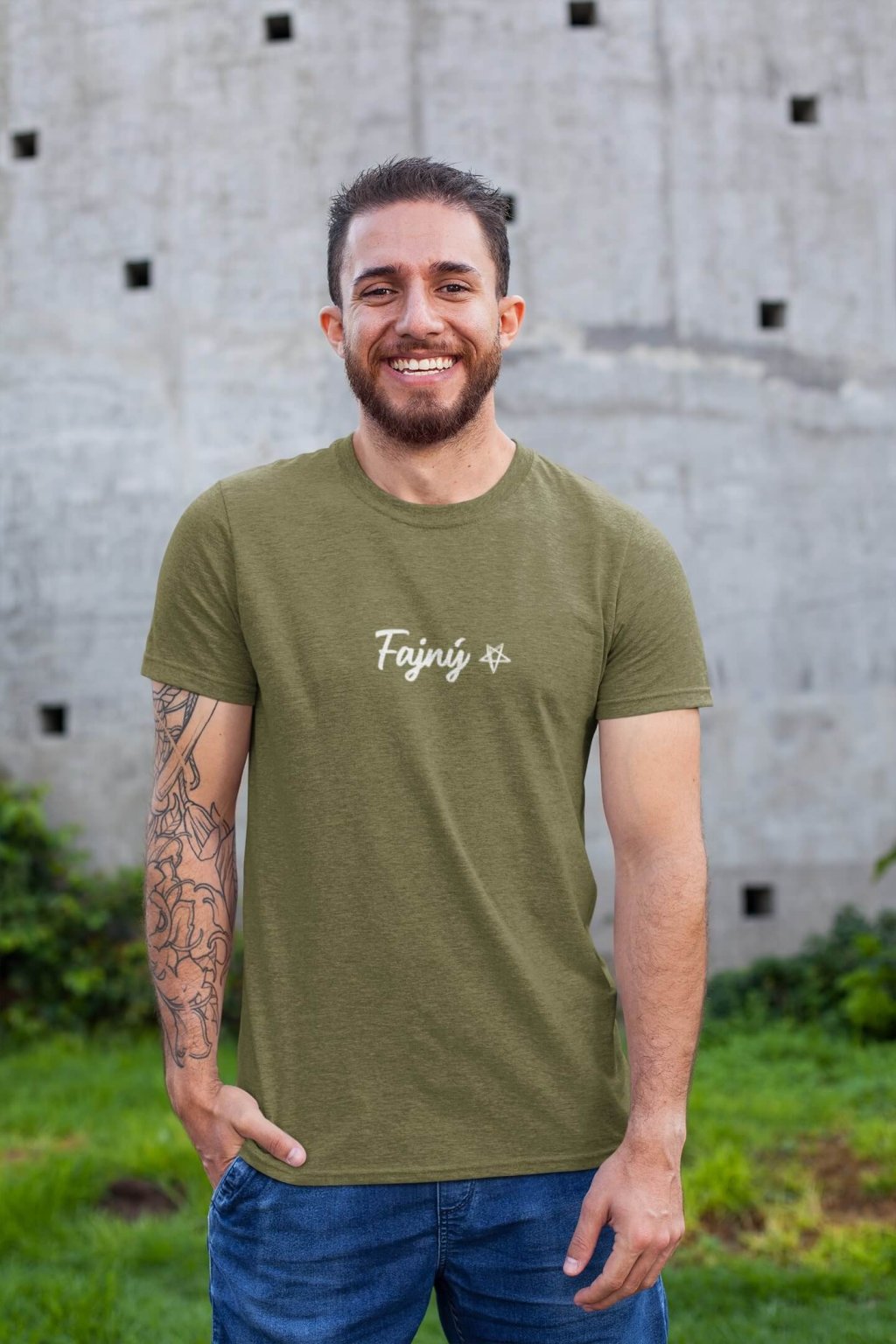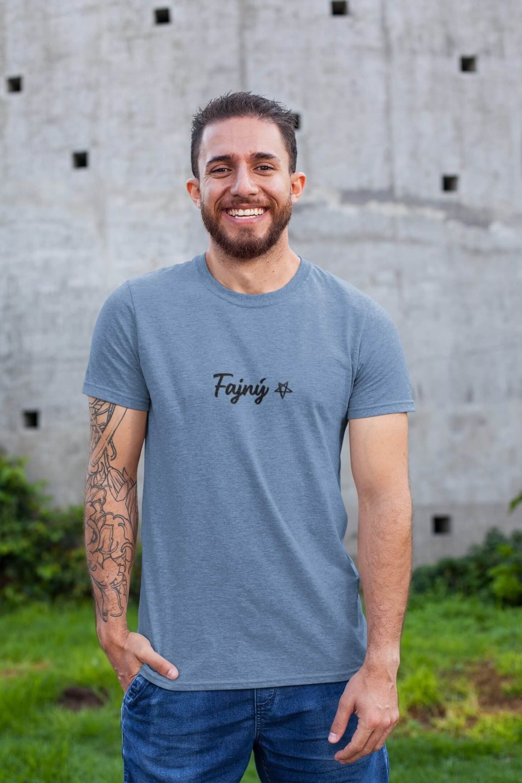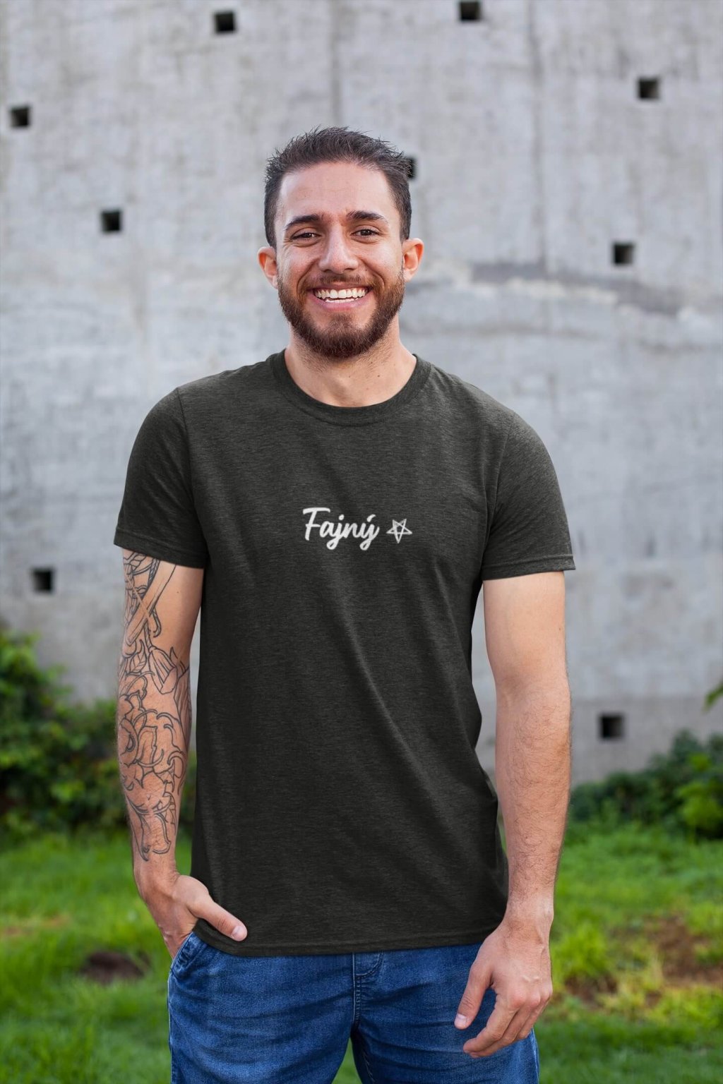 Pánske bavlnené tričko s krátkym rukávom slovenským prídavným menom. Na tričku je jedno slovo, ktoré ťa presne vystihne: ,,Fajný."