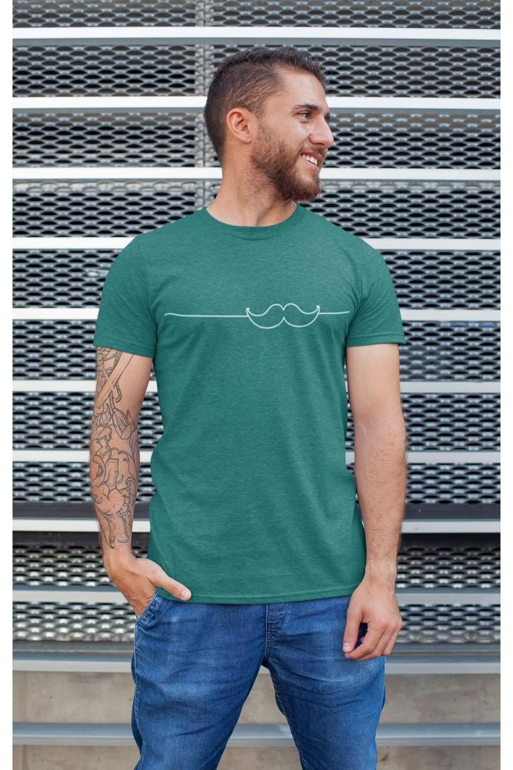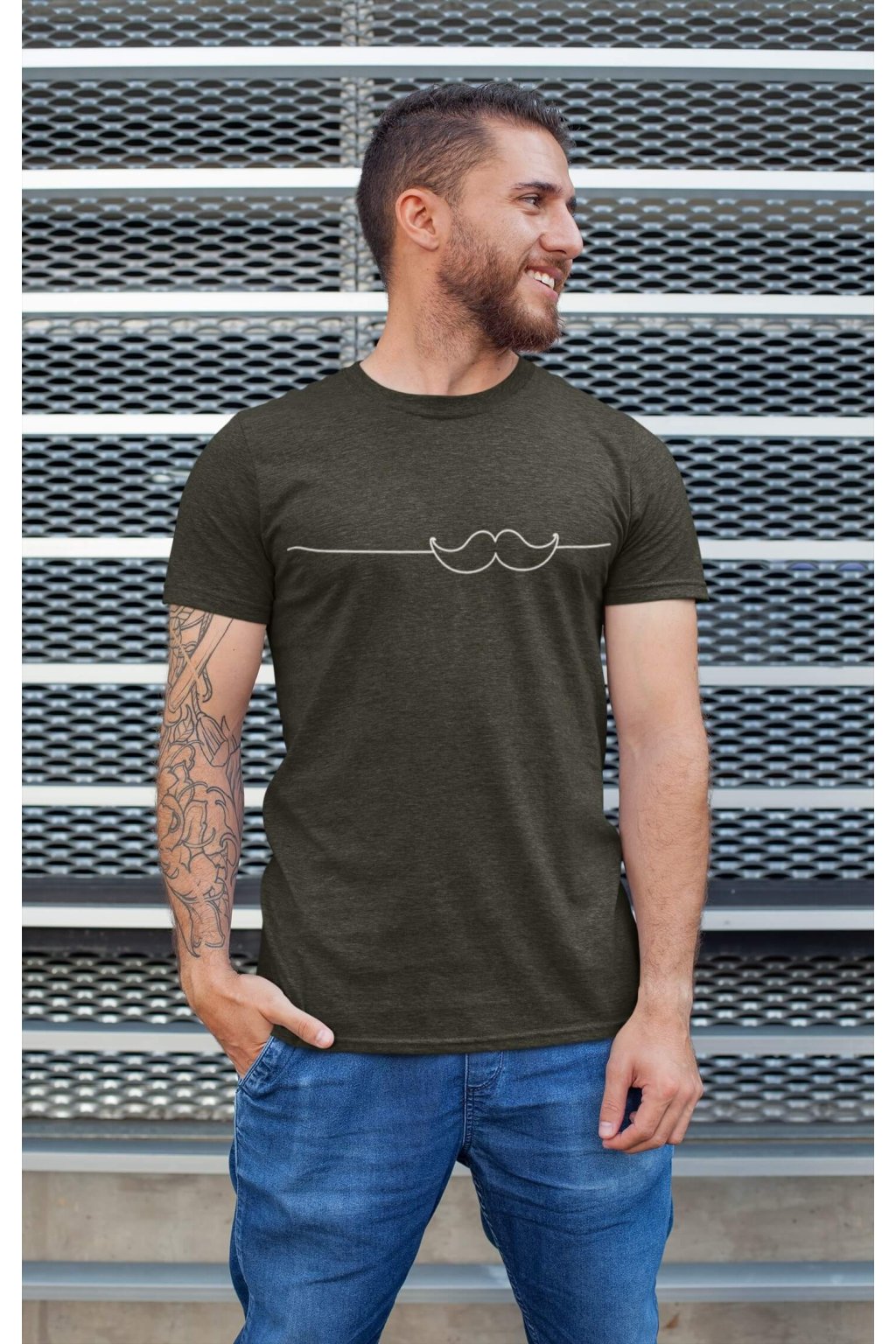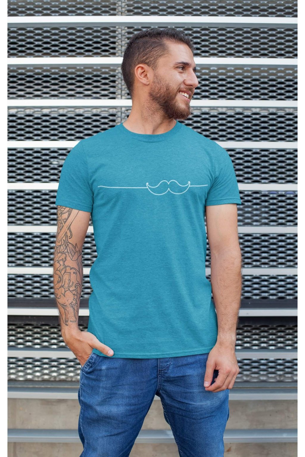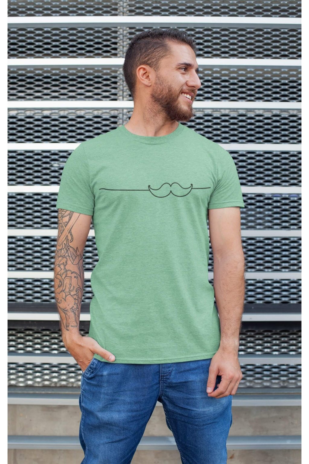 Pánske bavlnené tričko s krátkym rukávom s originálnou potlačou. Na tričku je obrázok fúzikov.