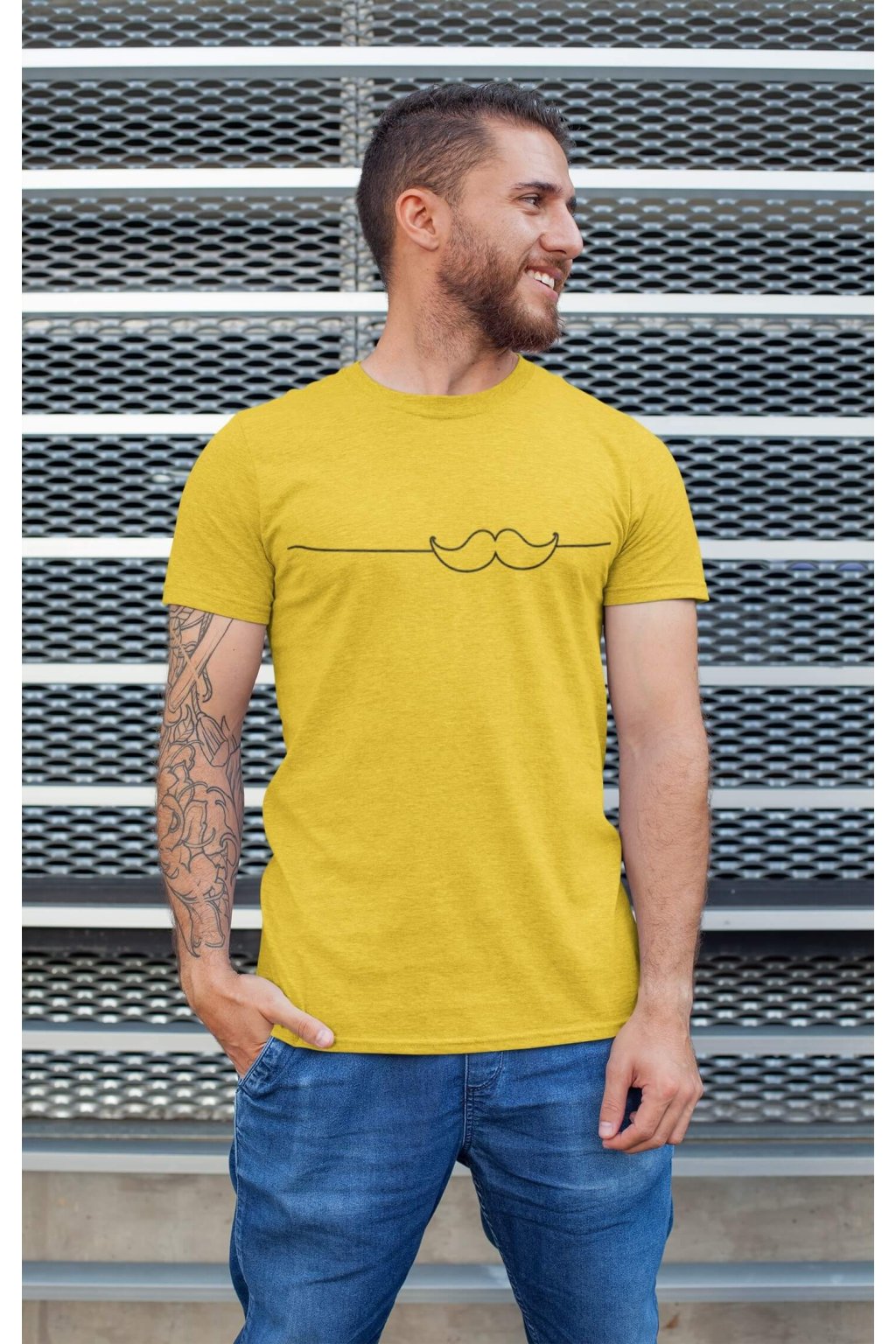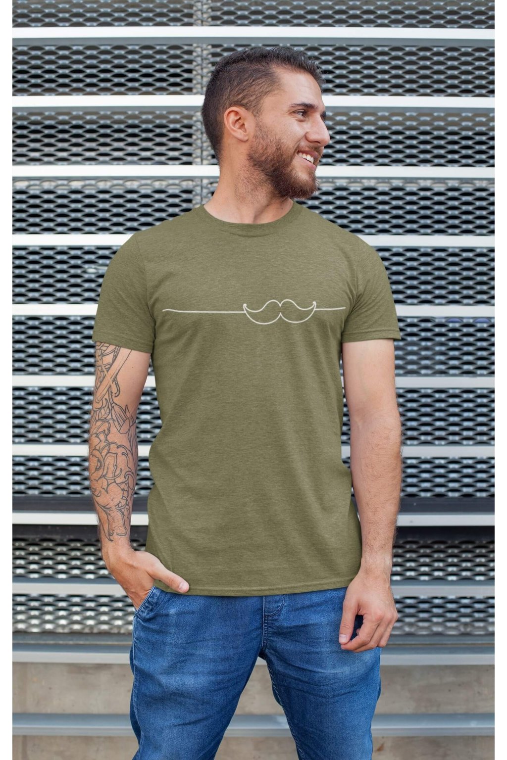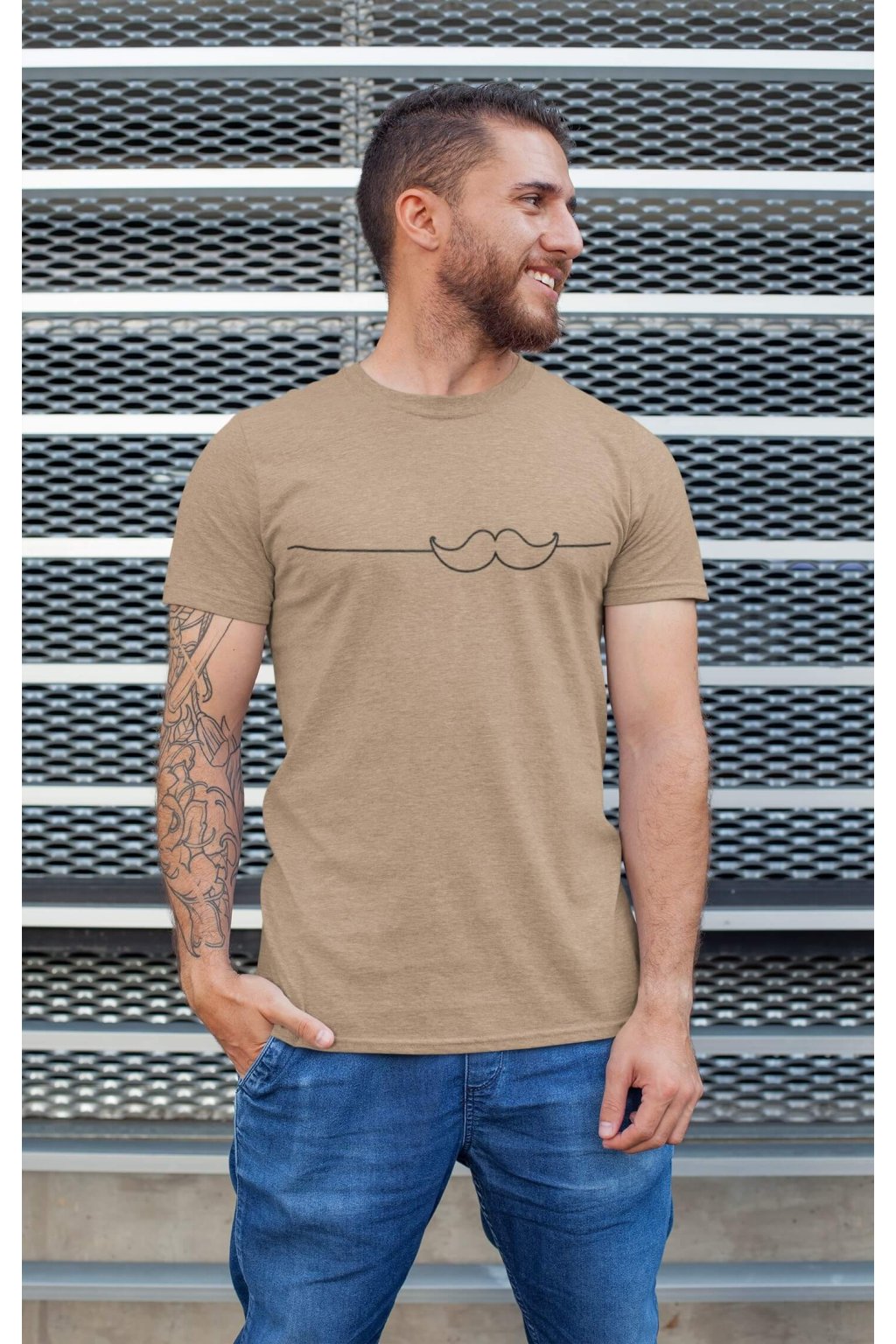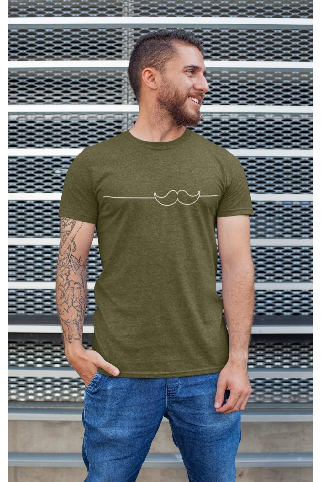 Pánske bavlnené tričko s krátkym rukávom s originálnou potlačou. Na tričku je obrázok fúzikov.