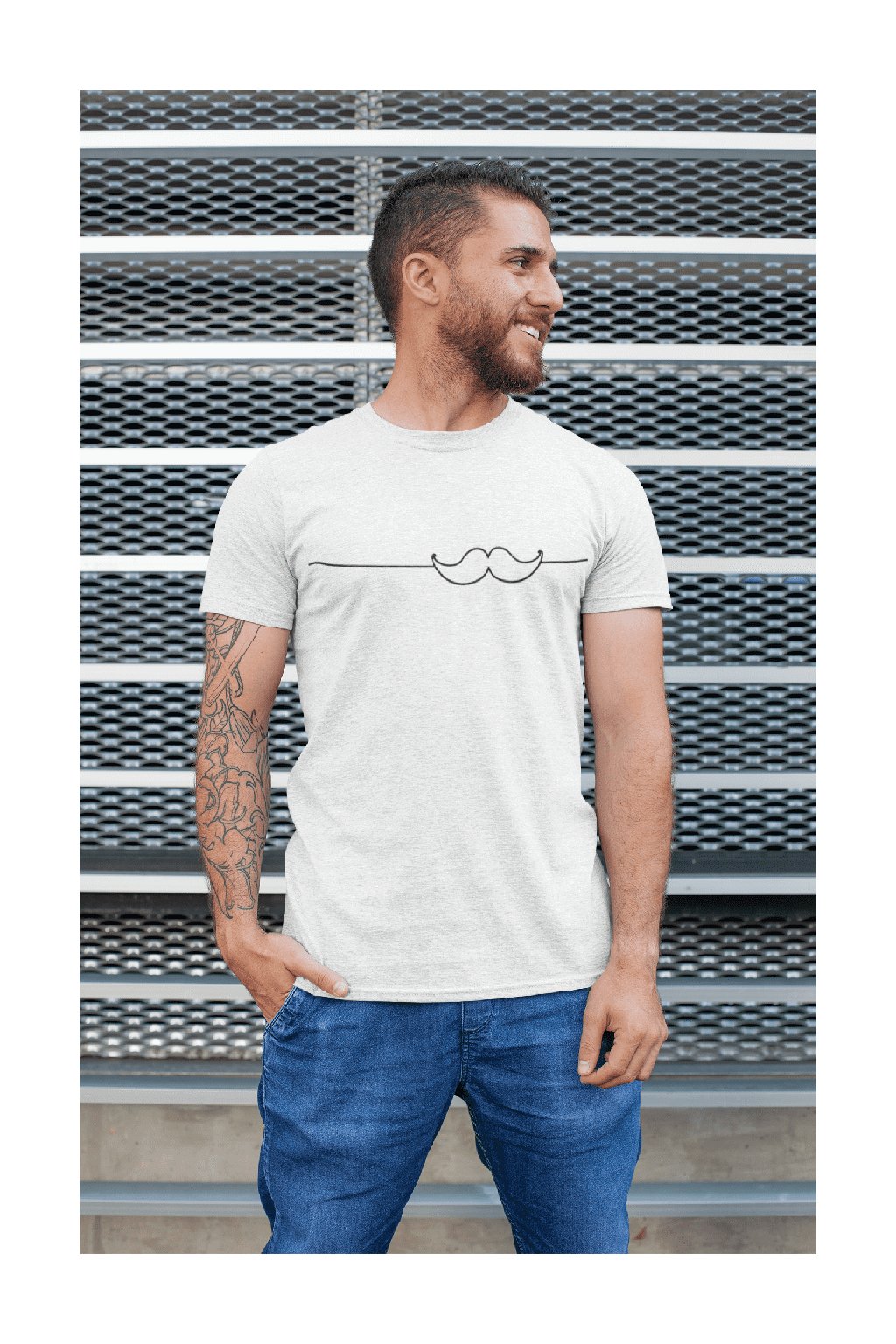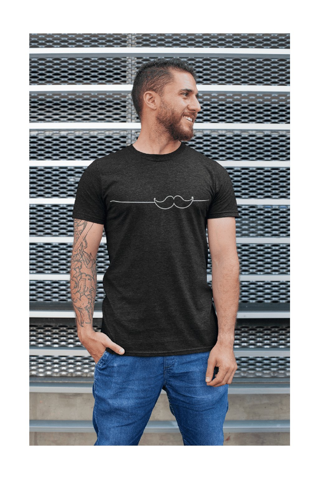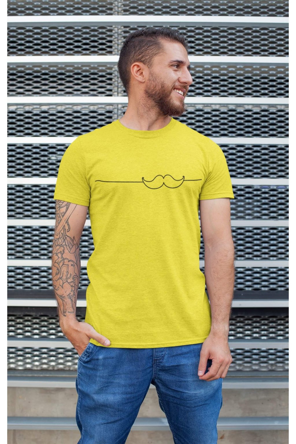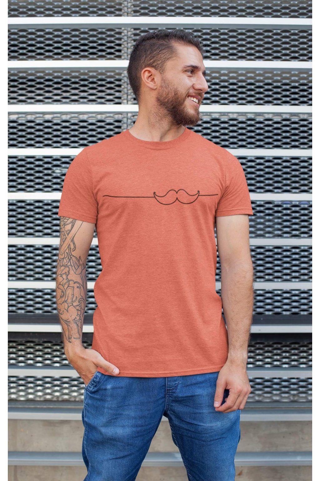 Pánske bavlnené tričko s krátkym rukávom s originálnou potlačou. Na tričku je obrázok fúzikov.