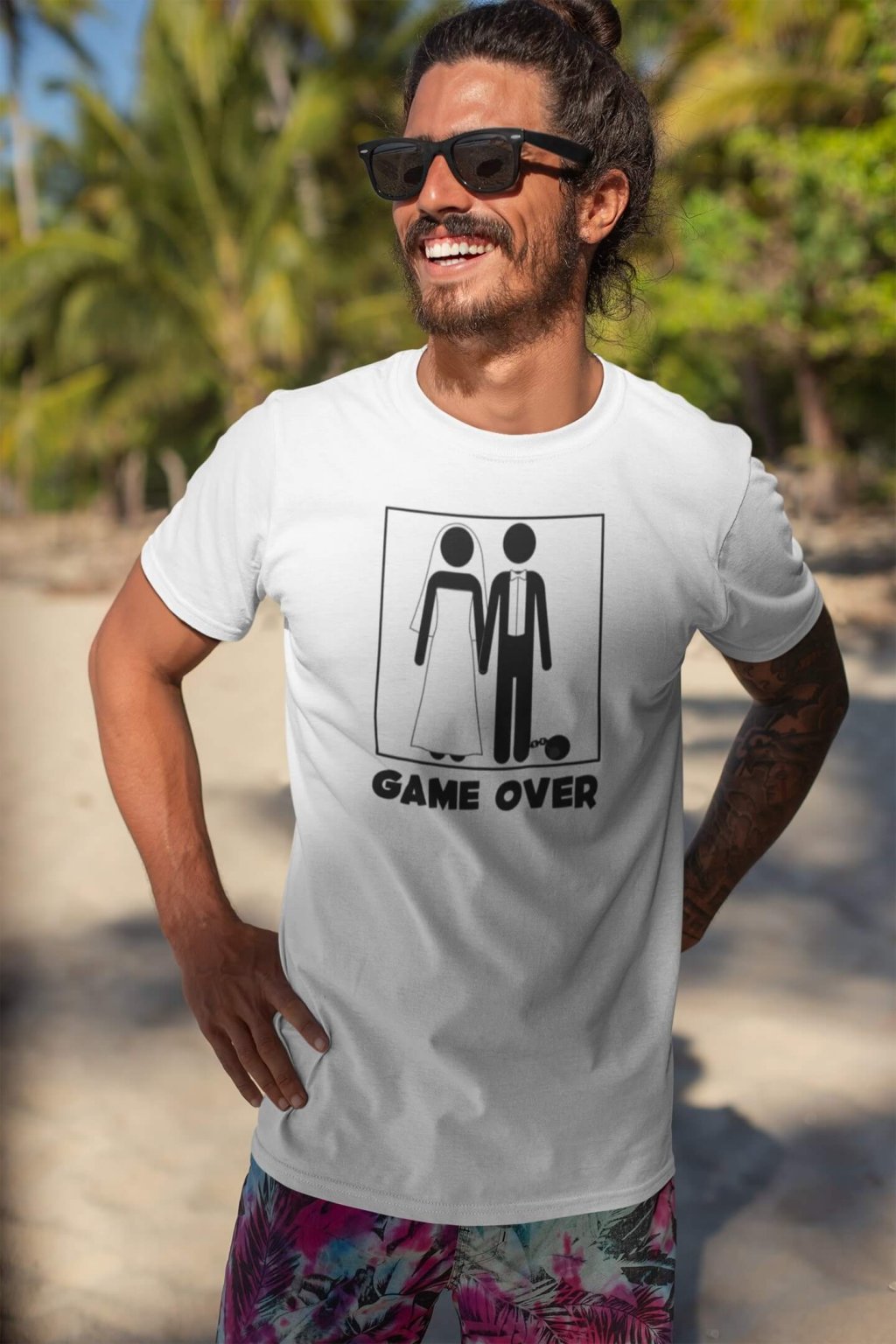 Hľadáte dokonalý darček pre ženícha na jeho rozlúčku so slobodou? Naše tričko s nápisom "Game over" je presne to, čo potrebujete! Štýlové, pohodlné a zábavné – ideálne na večer plný zážitkov s priateľmi. Tričko je vyrobené z kvalitného materiálu, ktorý zaručuje pohodlie počas celého dňa alebo večera.