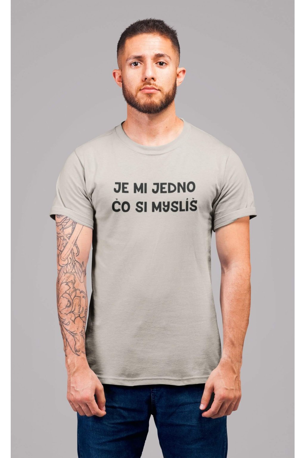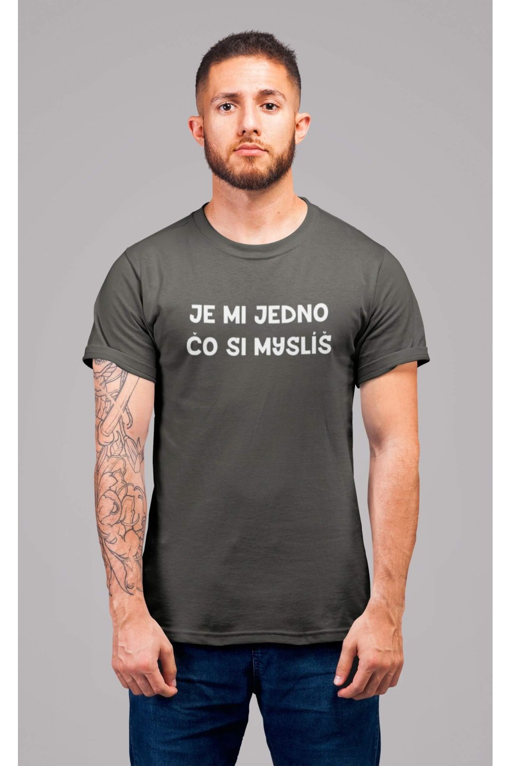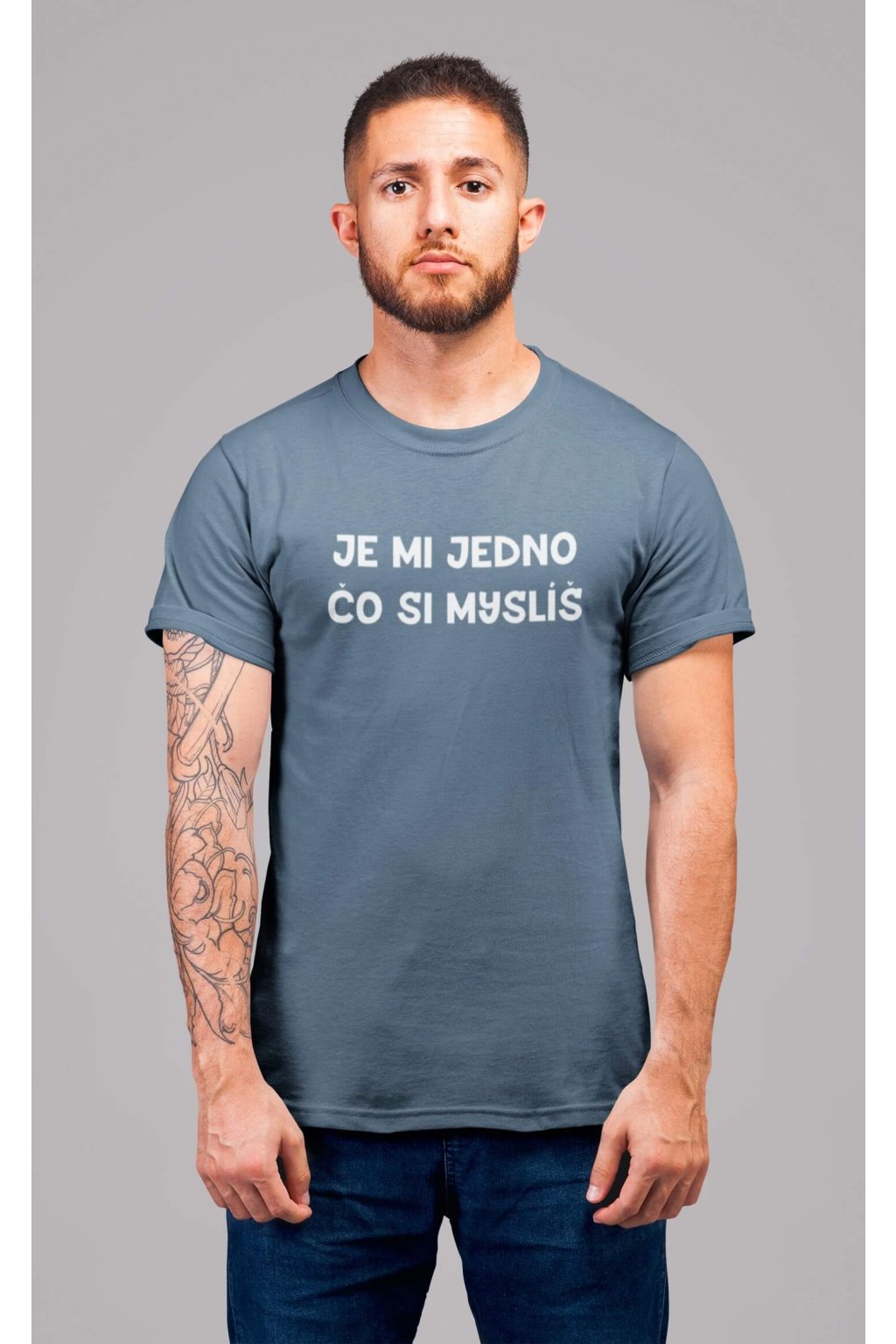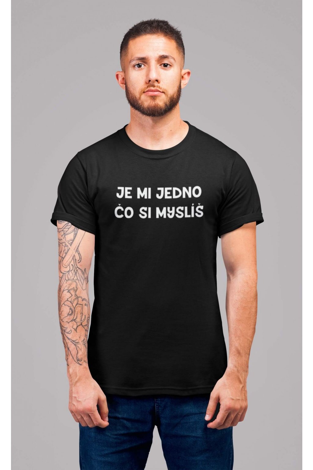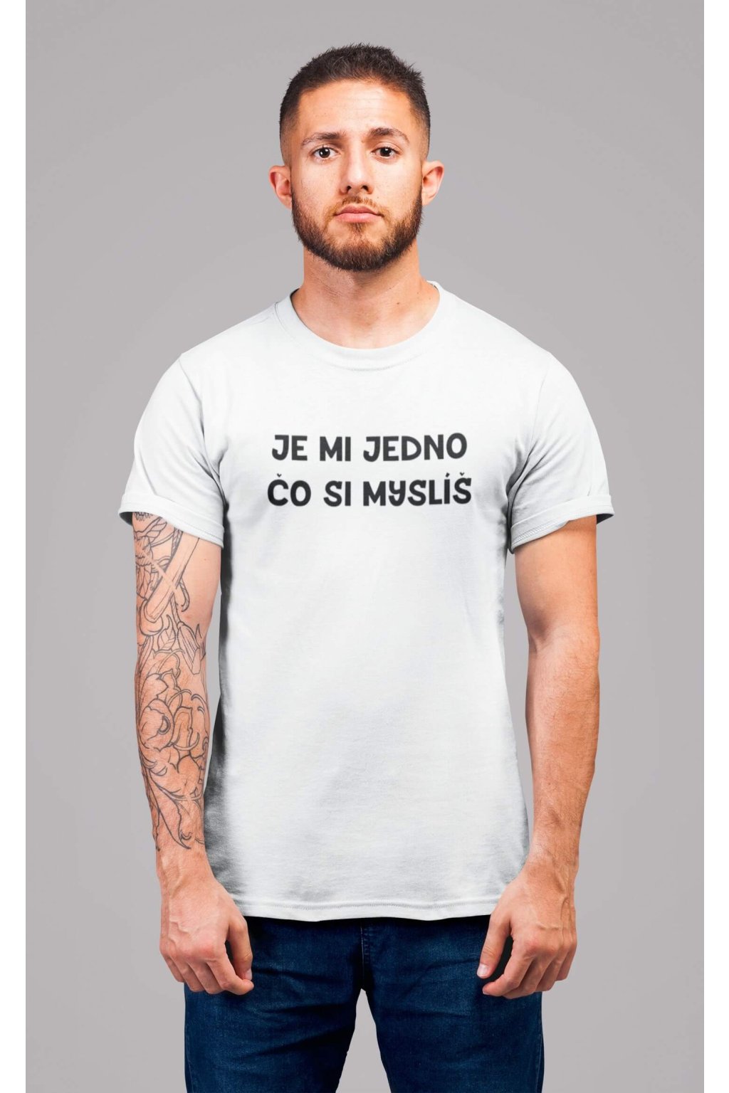 Pánske bavlnené tričko s krátkym rukávom a vtipnou potlačou. Na hrudníku je výstižný a úprimný nápis: ,,JE MI JEDNO ČO SI MYSLÍŠ." Vyjadri svoj názor svojím tričkom a buď originálny.