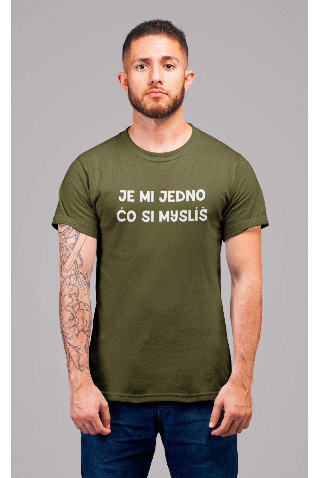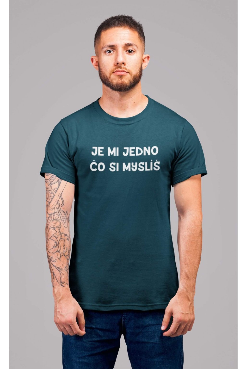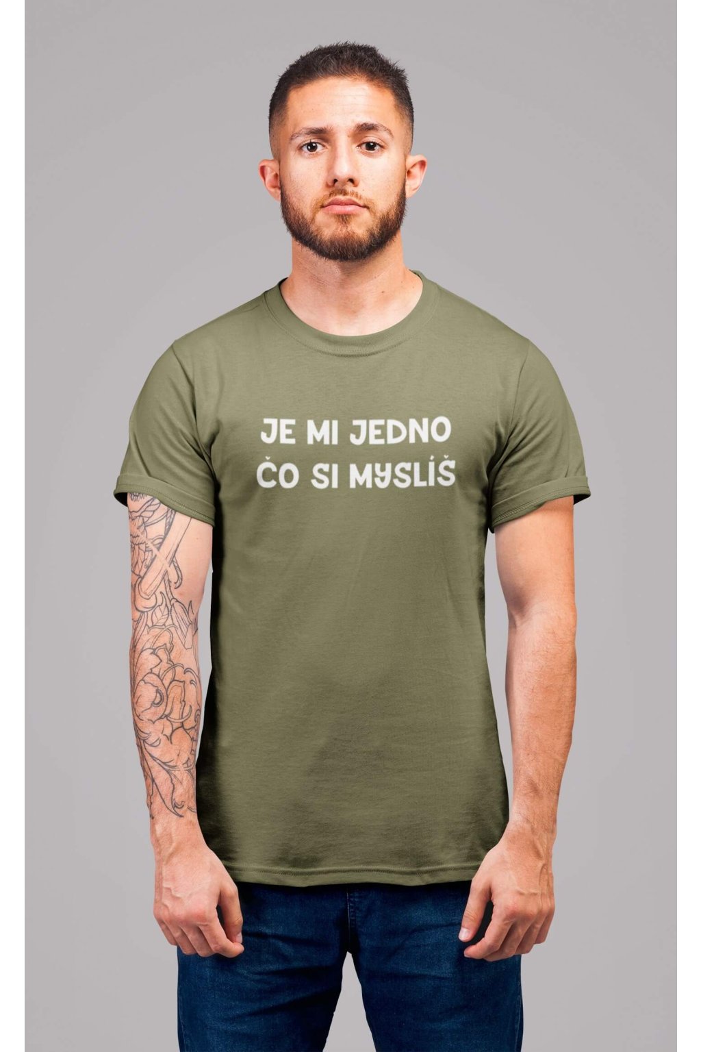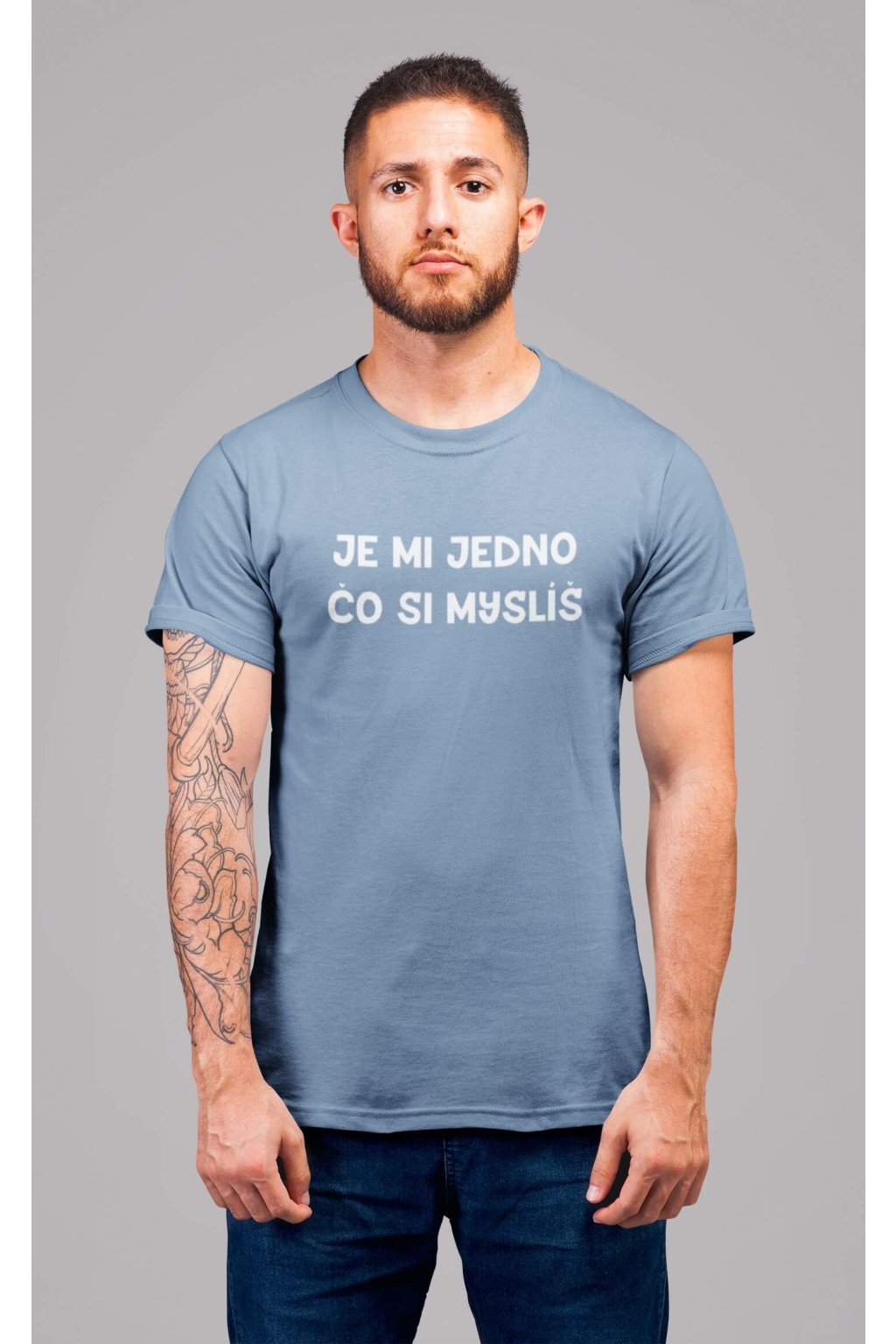 Pánske bavlnené tričko s krátkym rukávom a vtipnou potlačou. Na hrudníku je výstižný a úprimný nápis: ,,JE MI JEDNO ČO SI MYSLÍŠ." Vyjadri svoj názor svojím tričkom a buď originálny.