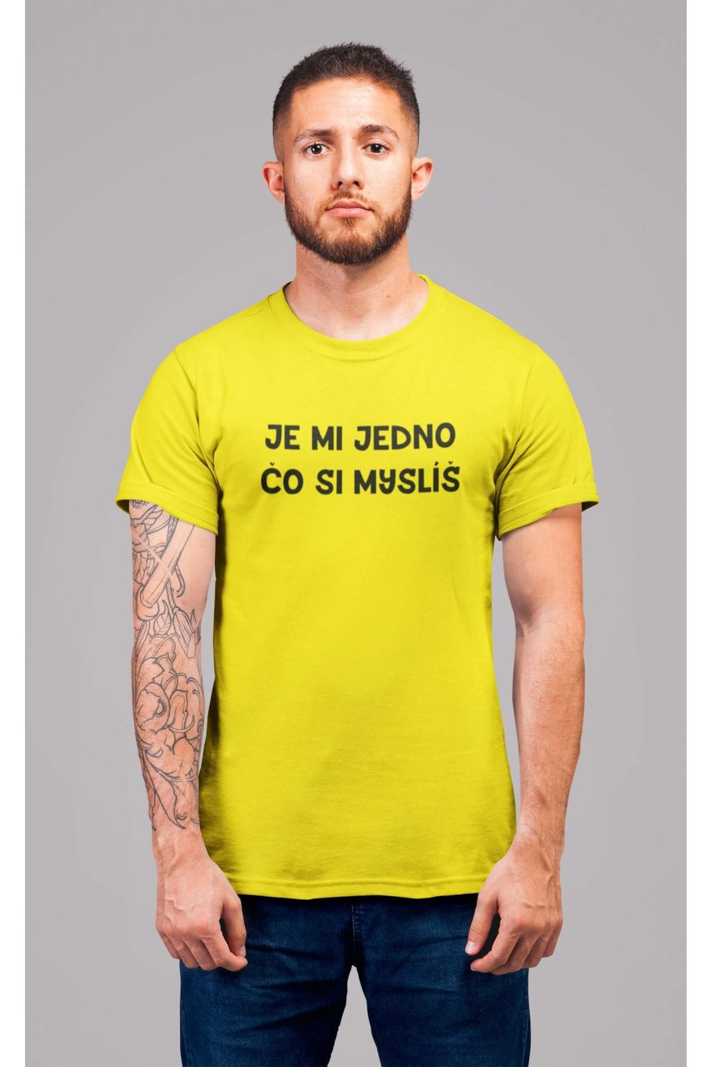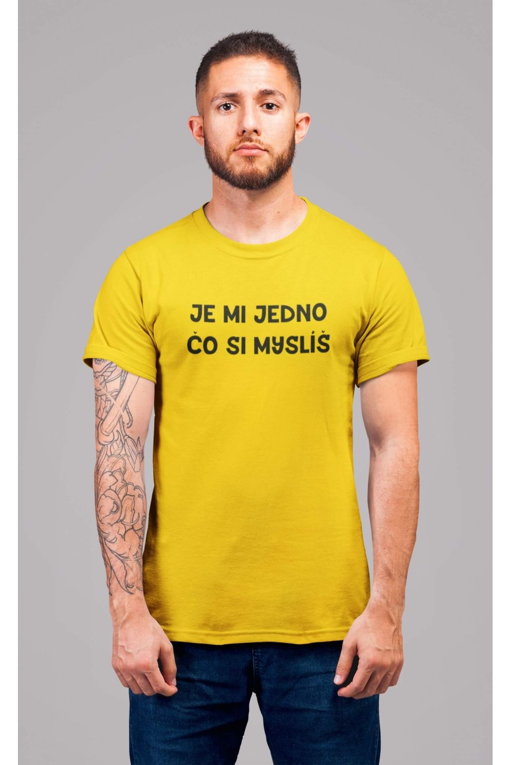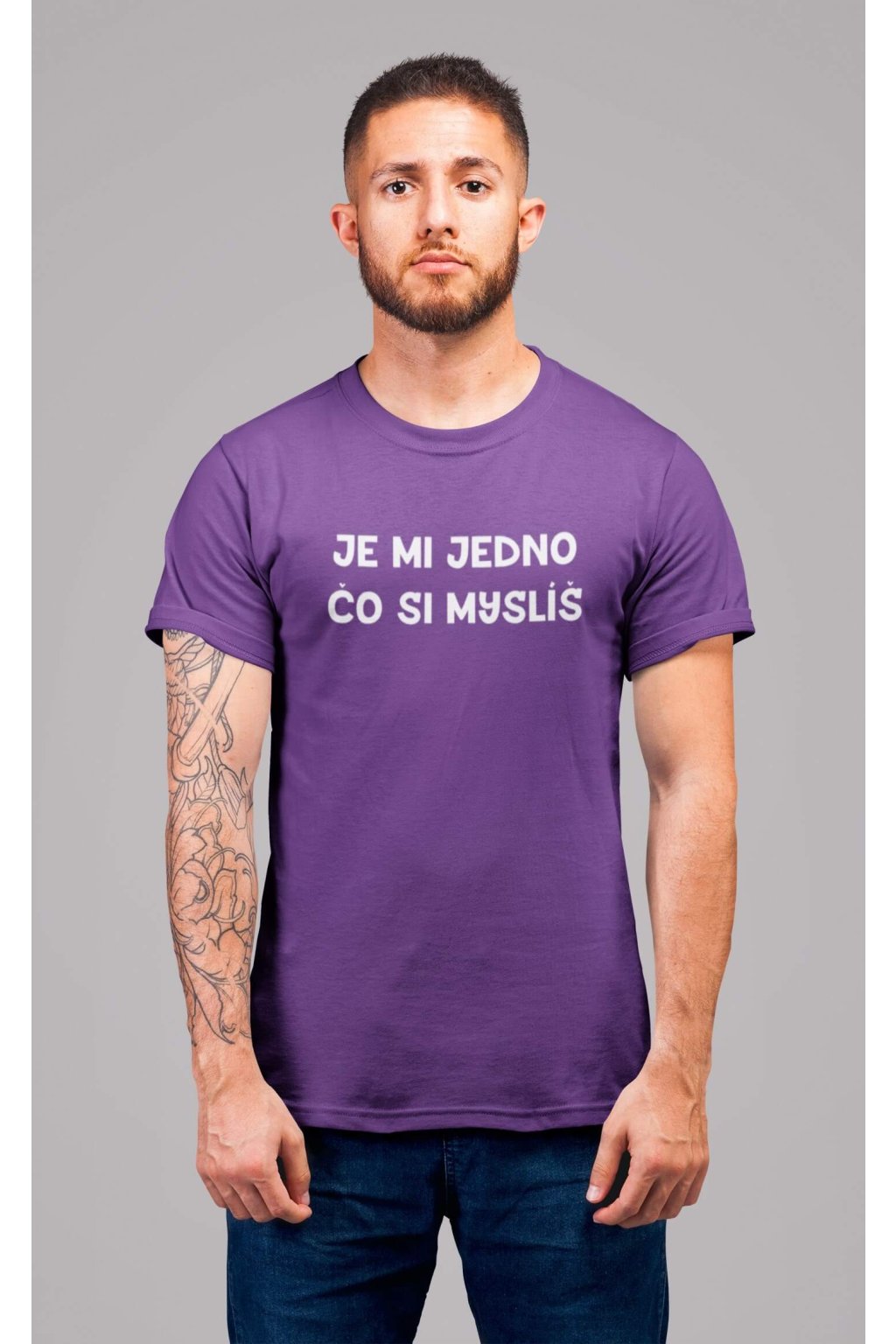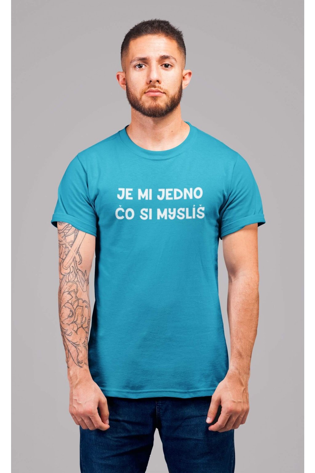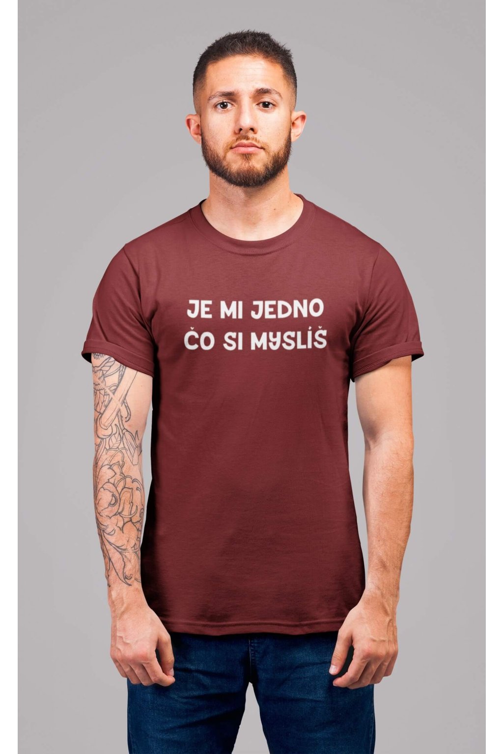 Pánske bavlnené tričko s krátkym rukávom a vtipnou potlačou. Na hrudníku je výstižný a úprimný nápis: ,,JE MI JEDNO ČO SI MYSLÍŠ." Vyjadri svoj názor svojím tričkom a buď originálny.