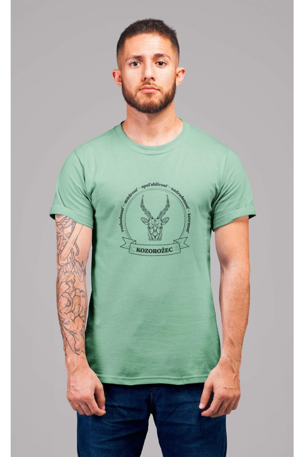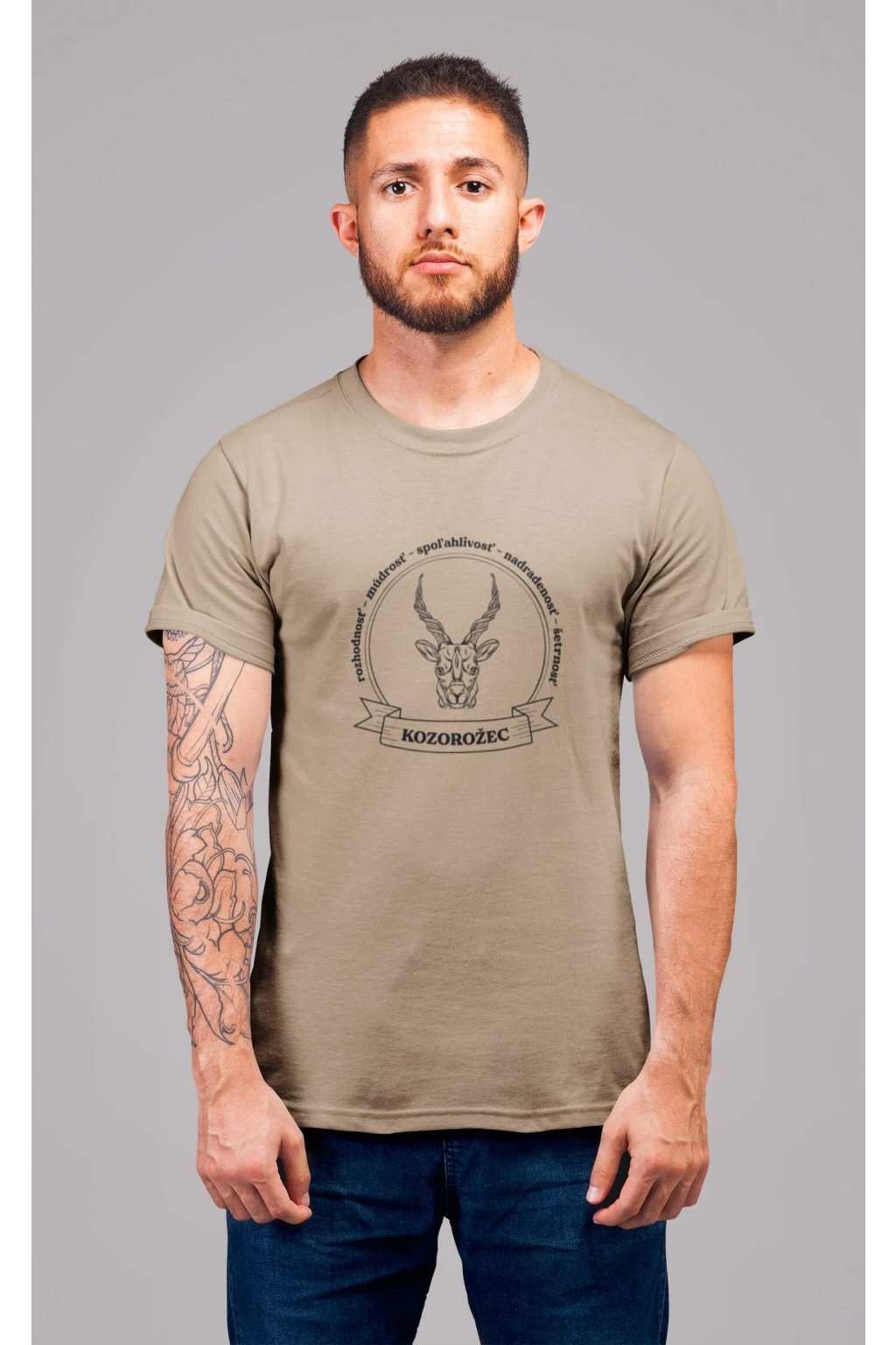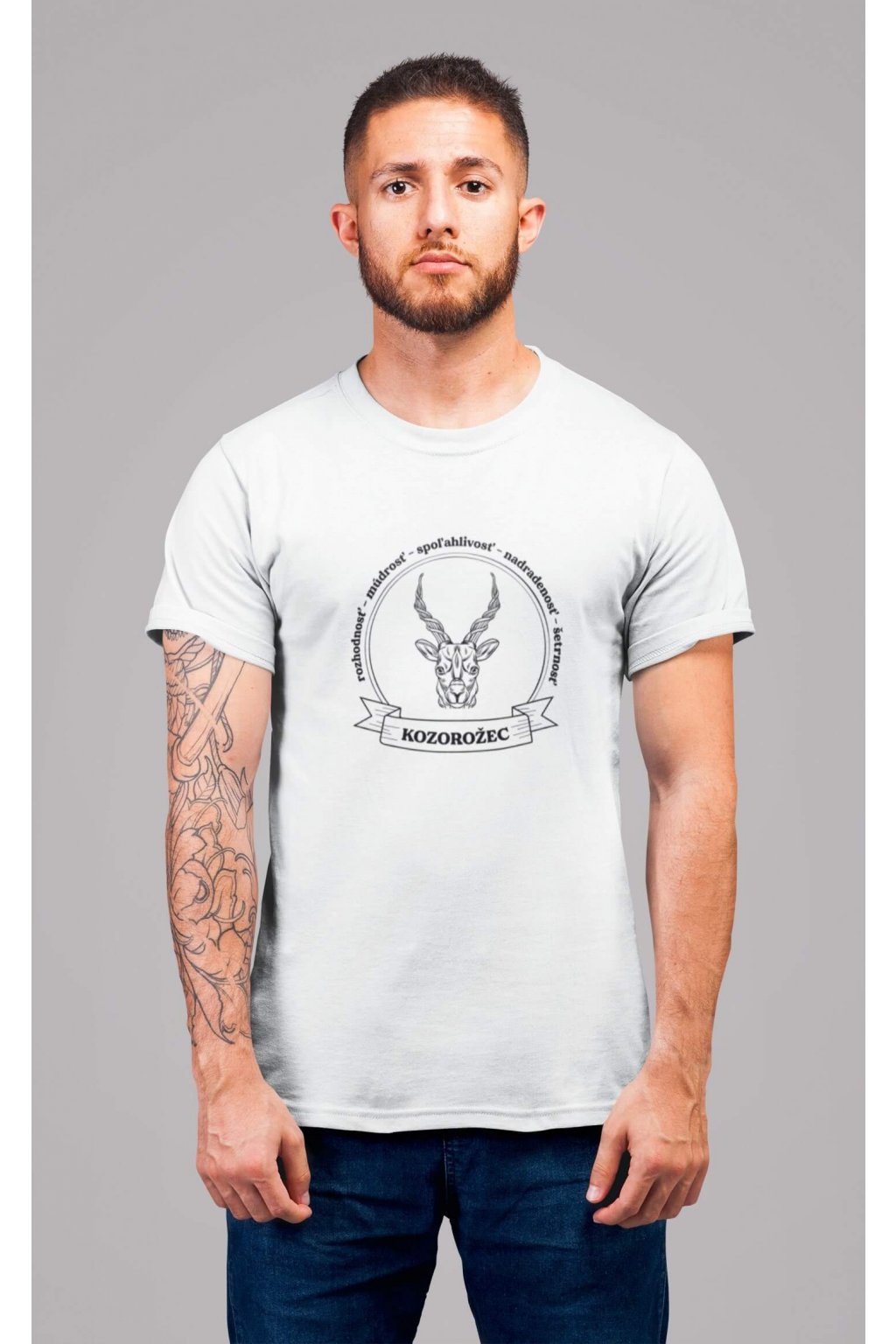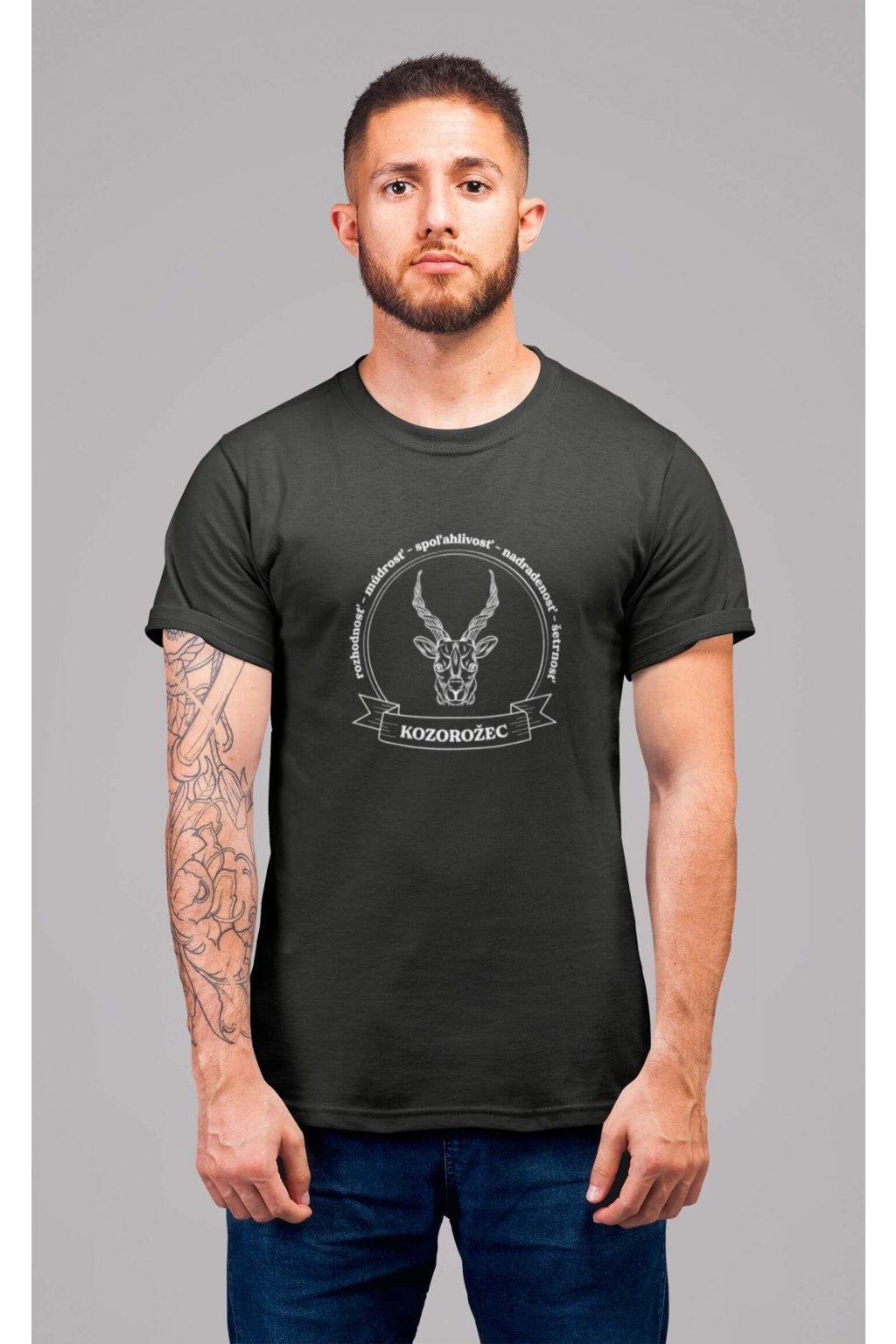 Pánske bavlnené tričko s krátkym rukávom s motívom znamenia KOZOROŽEC a opisom jeho vlastností.